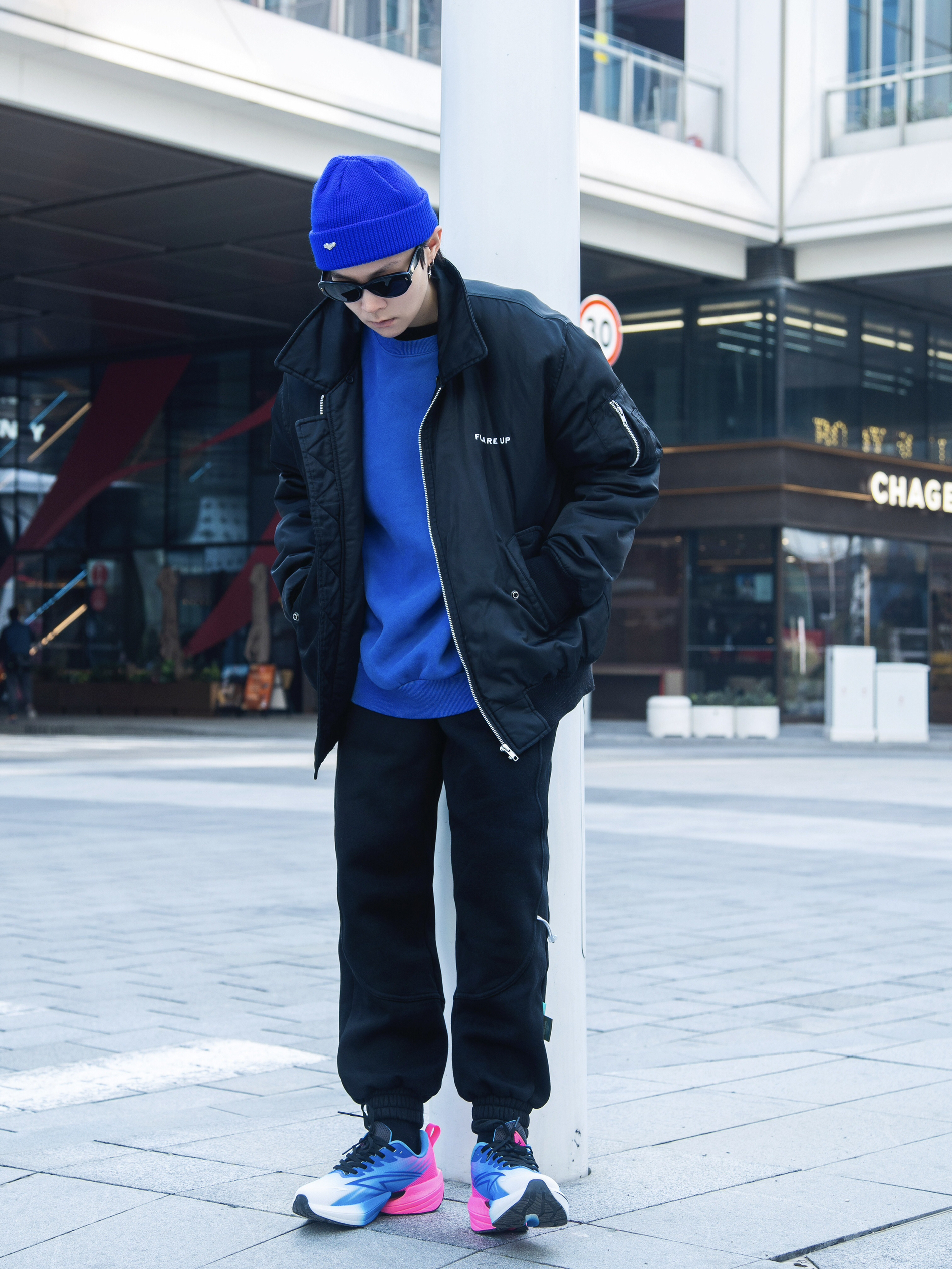 冬天当然也要运动啦 分享一套运动爱好者的冬季穿搭 穿搭指南: 一件克莱因蓝圆领卫衣 宽松内里加绒 保暖又休闲 外搭一件黑色棉服夹克 挺阔的版型自带时髦感 下身一条黑色束脚运动卫裤 加厚面料温暖的很 上脚一双tcellars跑步鞋 蓝粉拼接配色抓人眼球 脚感软弹 可以一件切换通勤和运动 戴一顶宝蓝色冷帽呼应一下 冬日运动通勤穿搭get