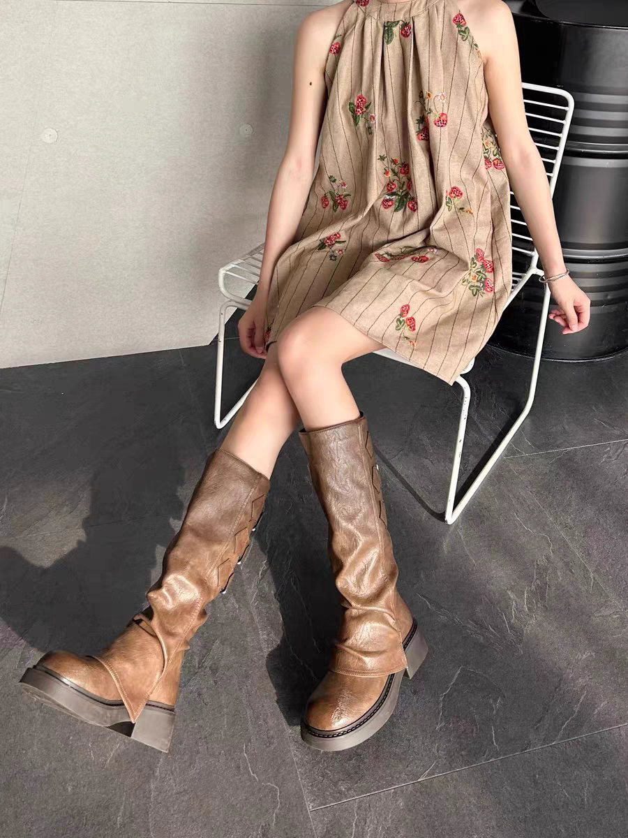 ✨变成腿精真的不难,把这双靴子带回家试试你就知道👋,直接上脚看增高瘦腿效果!就问谁不心动姐妹们😍😍,真滴又美又帅,我当时第一眼就被种草了! ✨随手对镜自拍一张都是美得不行~~长筒就是正好到膝盖下方的可以露出膝盖~能感受到这微微宽松的靴筒吧~修饰小腿的同时还很显瘦哦,皮很软,实测穿一天不臭脚 (图源网络侵删)