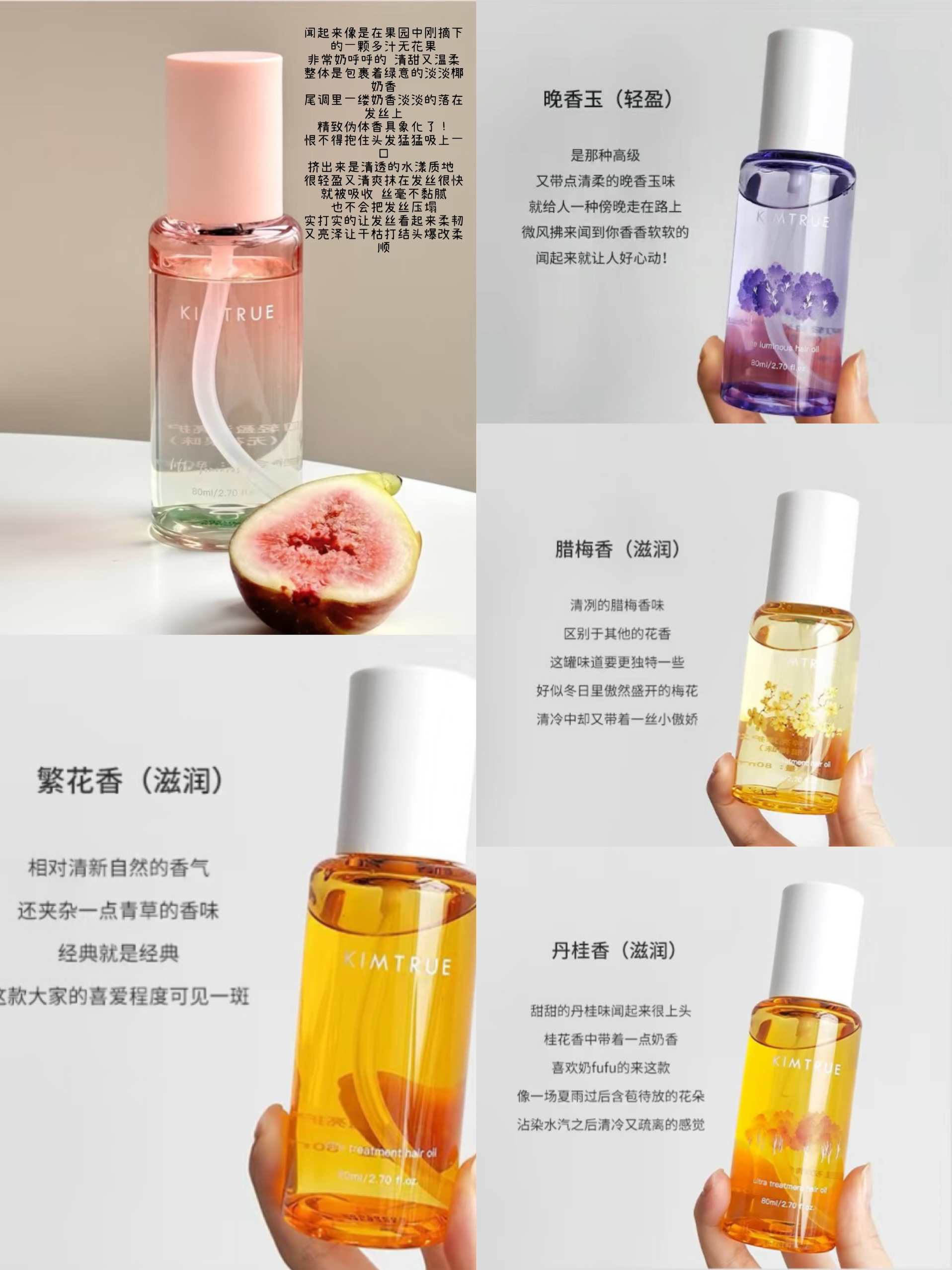 本篇笔记关联了KIMTRUE/且初 护发精油 亮泽修护发质防毛躁 无花果(干枯脆弱发质适用)、KIMTRUE/且初 护发精油 亮泽修护发质防毛躁 栀子香(适用于所有发质)、KIMTRUE/且初 护发精油 亮泽修护发质防毛躁 繁花香(适用所有发质)等商品,为用户提供真实的使用体验和购买参考。