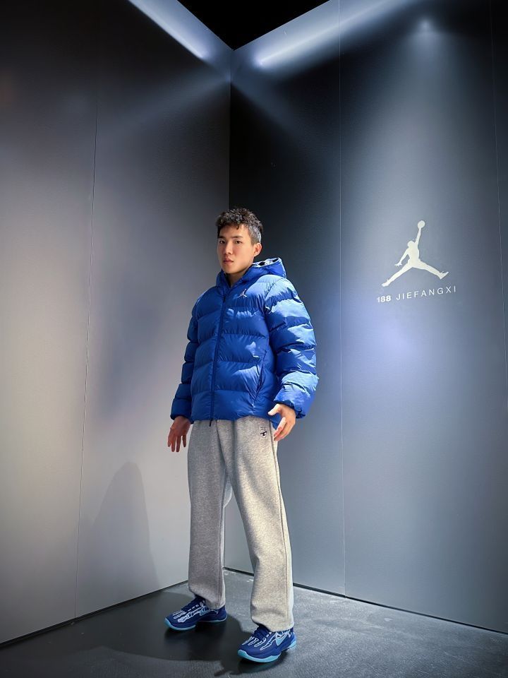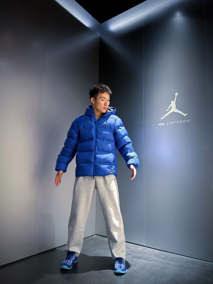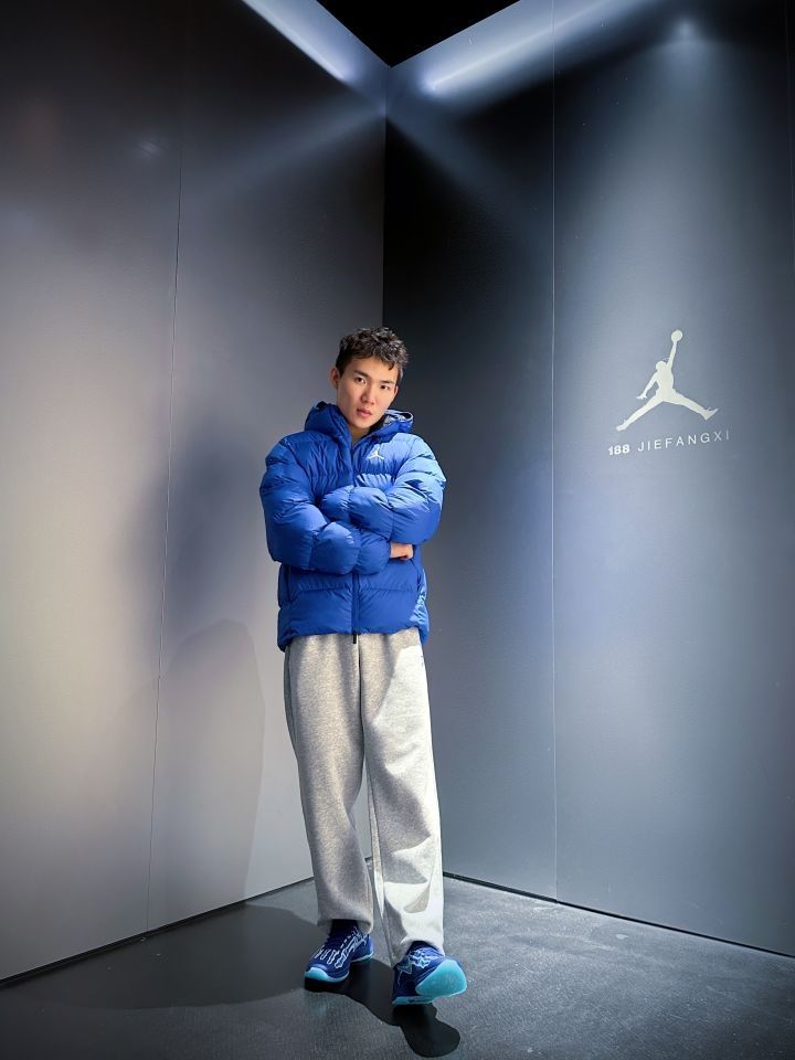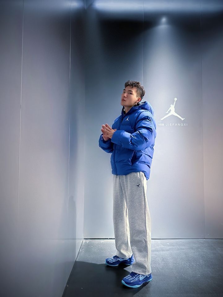 上身搭配Jordan 蓝色💙🔷🔵面包🍞棉服,主打一个保暖和多巴胺,实物色系很好看,真的炒鸡保暖!而且颜色超级显白!很厚却又不显臃肿!冬天❄️真的需要一件!短款羽绒服叠穿也非常方便,冬季注重保暖的同时!我们当然也要注重穿搭😄 裤子👖搭配 TIP-OFF 直筒运动裤,版型宽松,挺喜欢穿这种类型运动裤的,我上身的L码,搭配科比5X光真不错👍哦,关键性价比高,百元之内运动裤推荐。 (图源网络侵删)