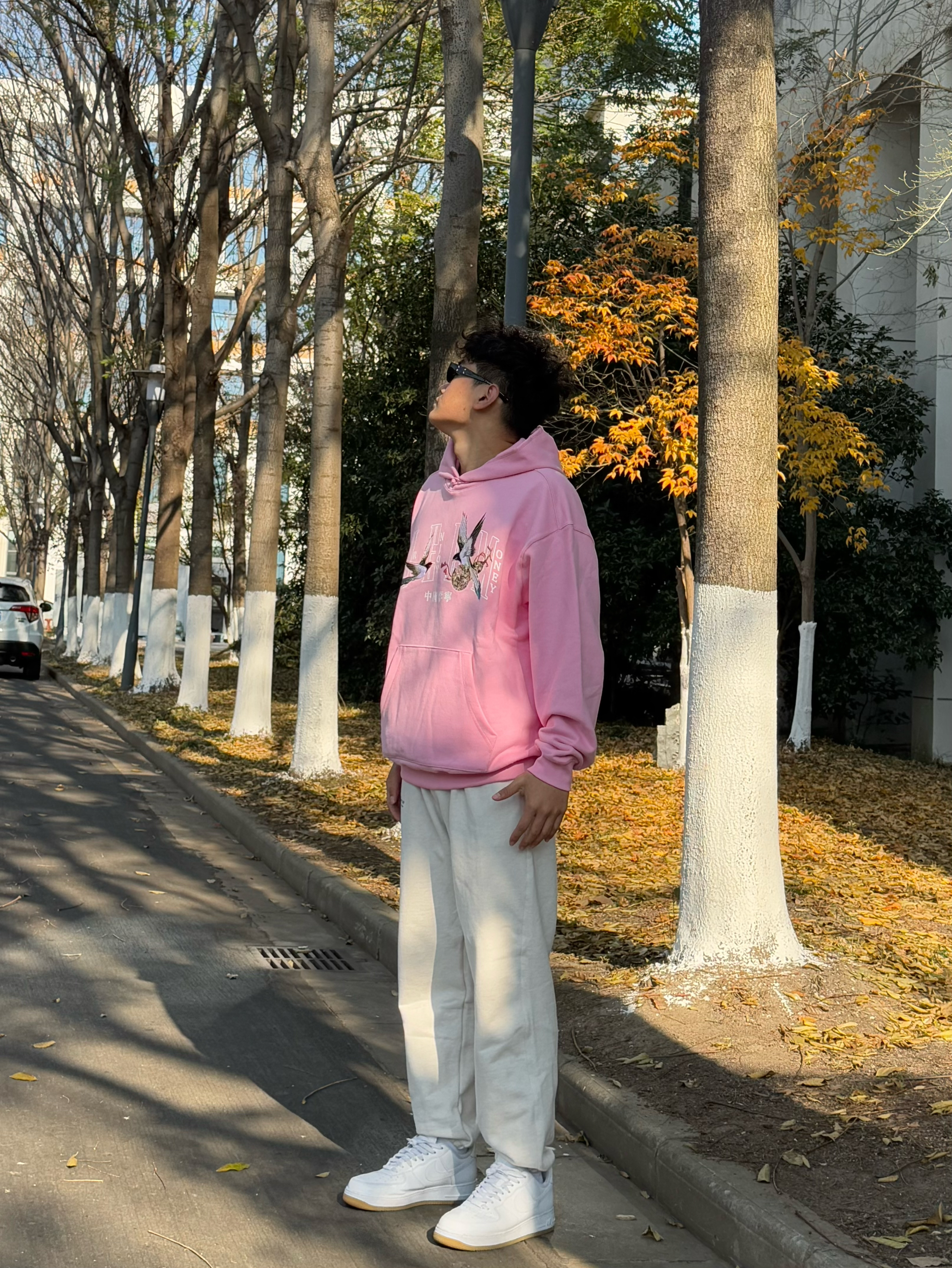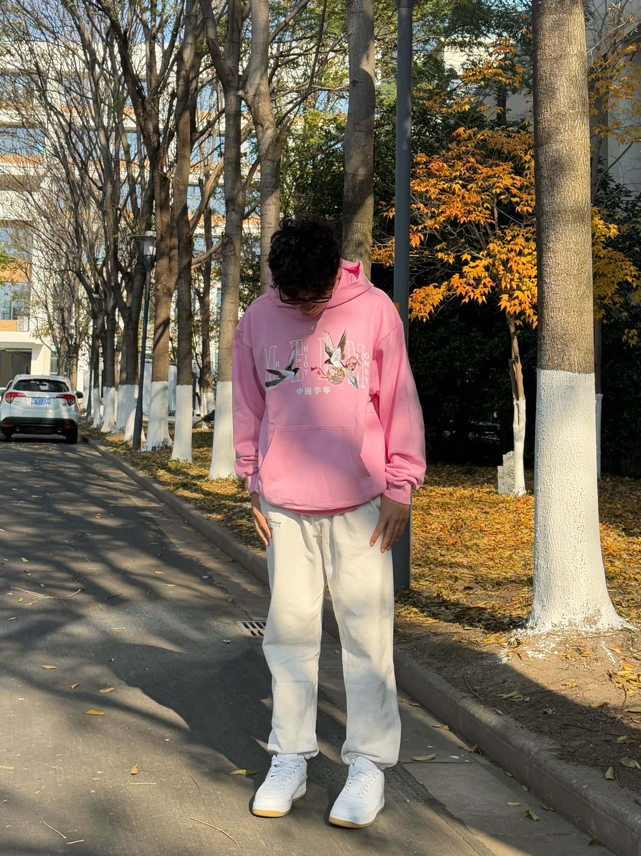 身高|体重:180 72kg 🧍♂️ 穿搭风格:冬日休闲 👔 上衣:来自中国李宁和medm联名的日进斗金系列的连帽卫衣 卫衣上的刺绣真的很有质感 上身很chill 👖 下装:同样来自中国李宁和medm联名的束脚裤 奶白色很有质感 上身版型不错 👟 鞋子:空军一号