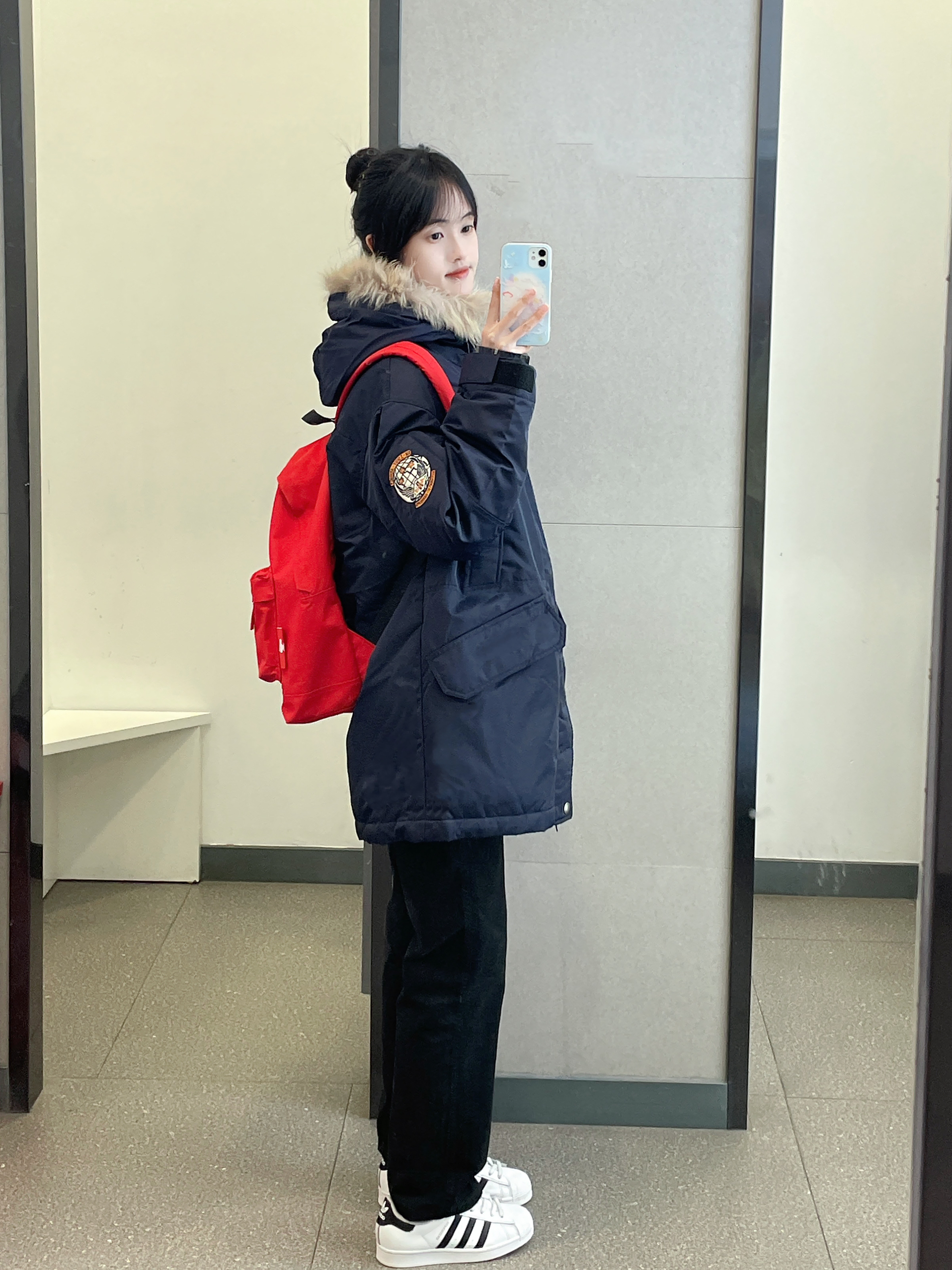👔 :Teenie Weenie藏青色毛领羽绒服 👖 :coldstone黑色牛仔裤