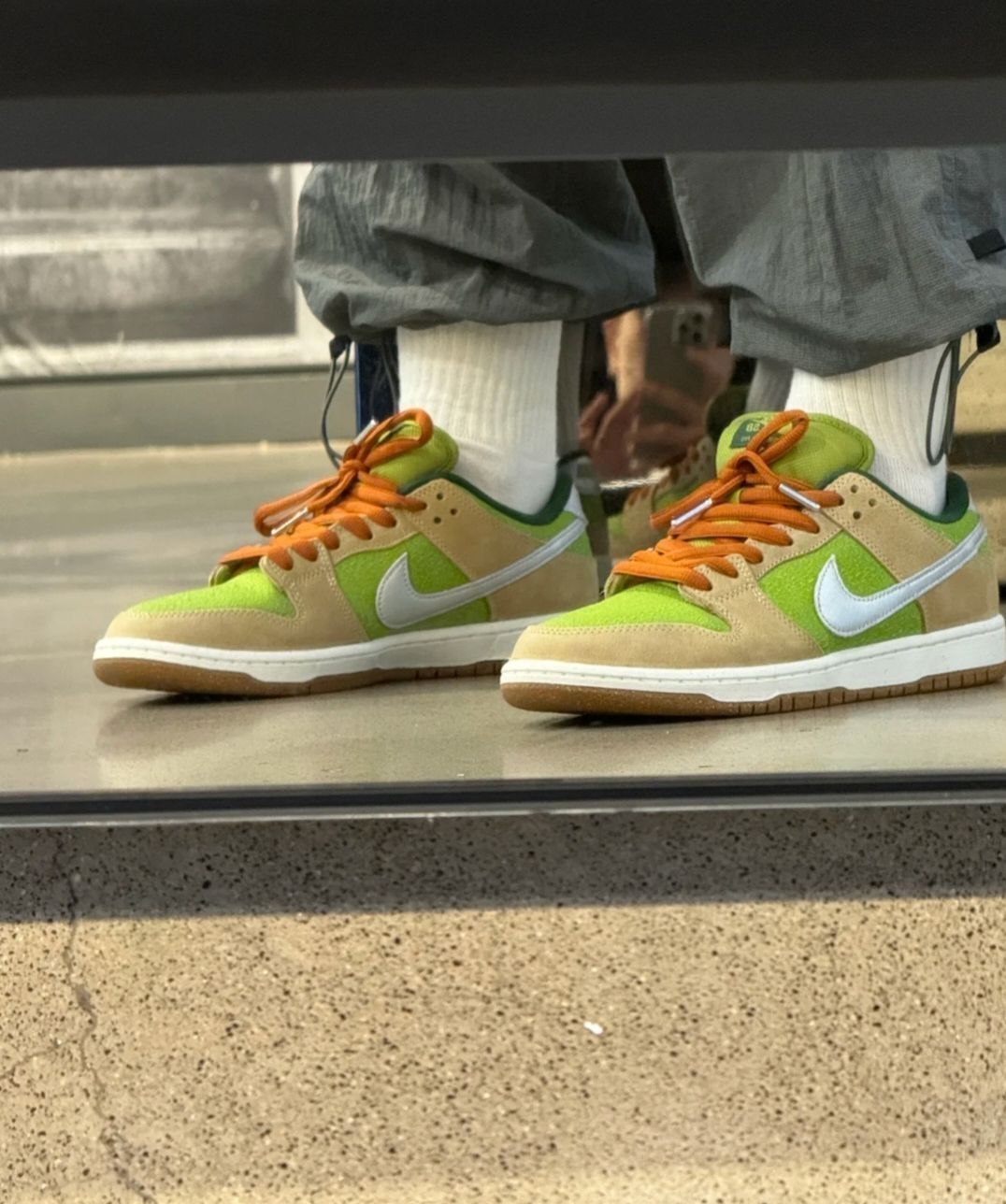 我觉得挺好看的一双dunk,棕色搭配牛油果🥑绿的混搭,整双鞋给我的感觉就挺舒服的。而且搭配起来也挺容易的,有一种小清新的感觉,今天的ootd~价格也不是很贵,四五百左右的预算,一个月生活费1500的大学生也可以轻松拿下!平时出门穿去上课呀啥的都是挺舒服的。