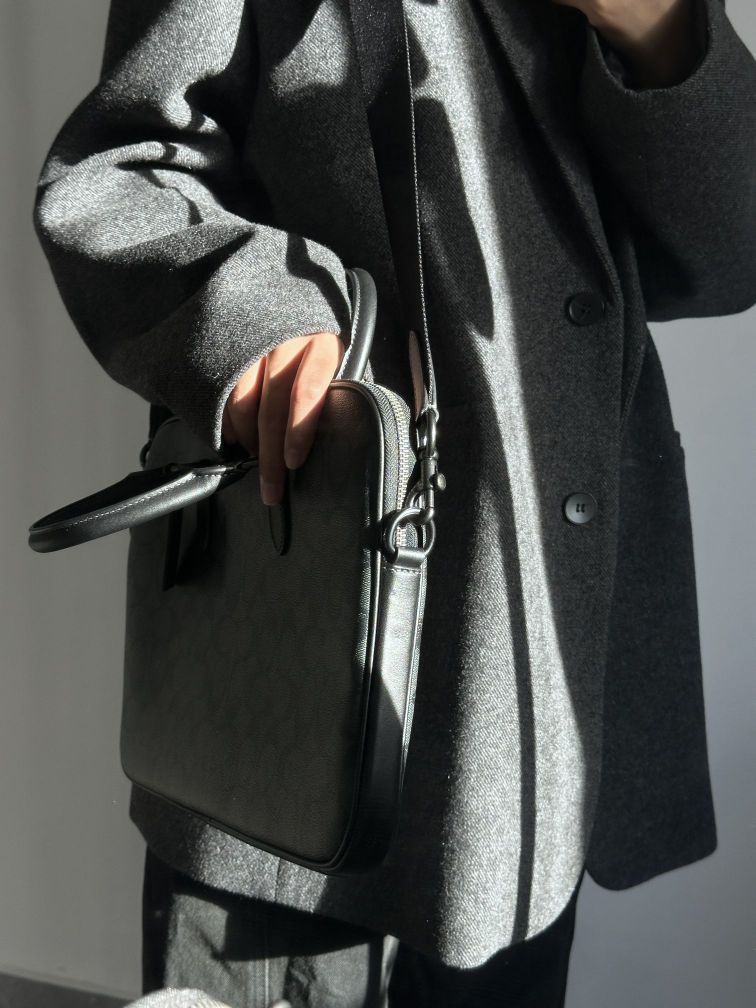 这个蔻驰的男士公文包💼 可以说正好踩在我的审美点上了 经典的花纹 商务又休闲 而且可手拎还可以斜挎👈 容量这块也还是很可以的 13寸的笔记本电脑💻和日常工作出行用品 都可以轻松的装下✅ 不管上班通勤背或出差背都蛮不错的✨