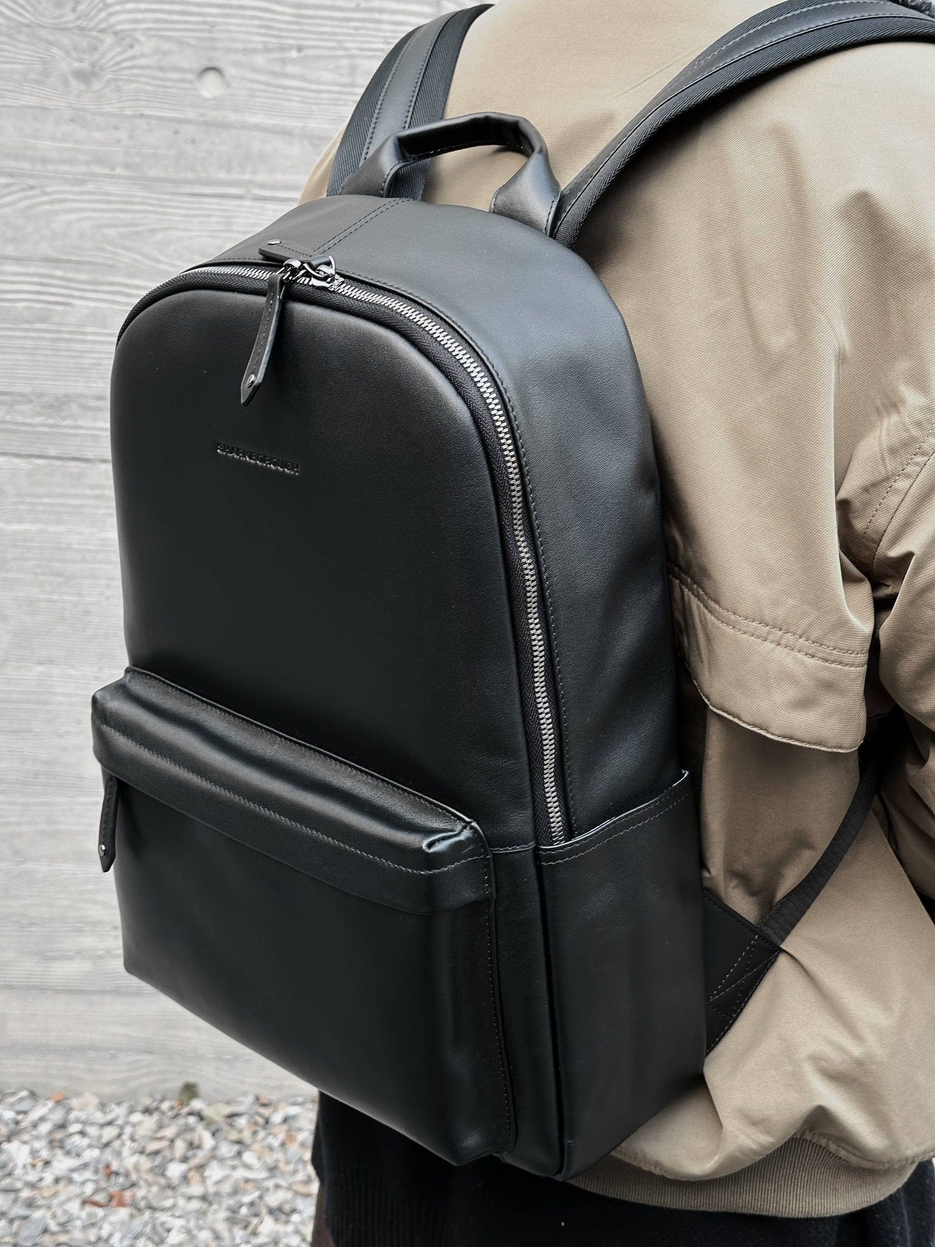 周末到啦赶紧背上我的小包出去玩 身上的这个牛皮双肩包真是我的好搭子 通勤也背它 出去玩也背它 简约有质感的纯黑皮质设计 内部空间挺大的 可以放得下15.6寸的笔记本 里面还有很多收纳袋口 很方便摆放小物件 最重要的是绝对的百搭 不挑衣服 轻松出门~