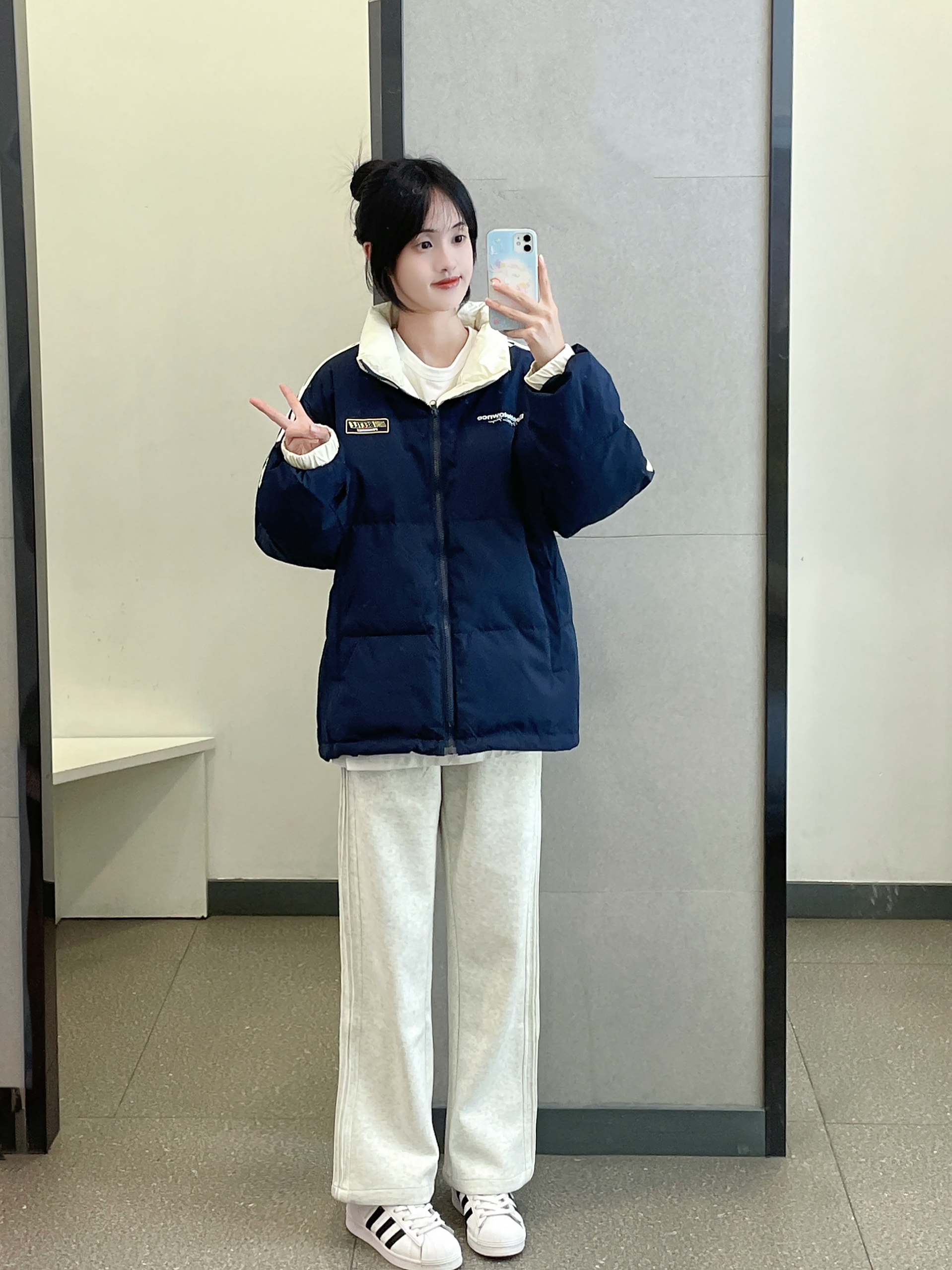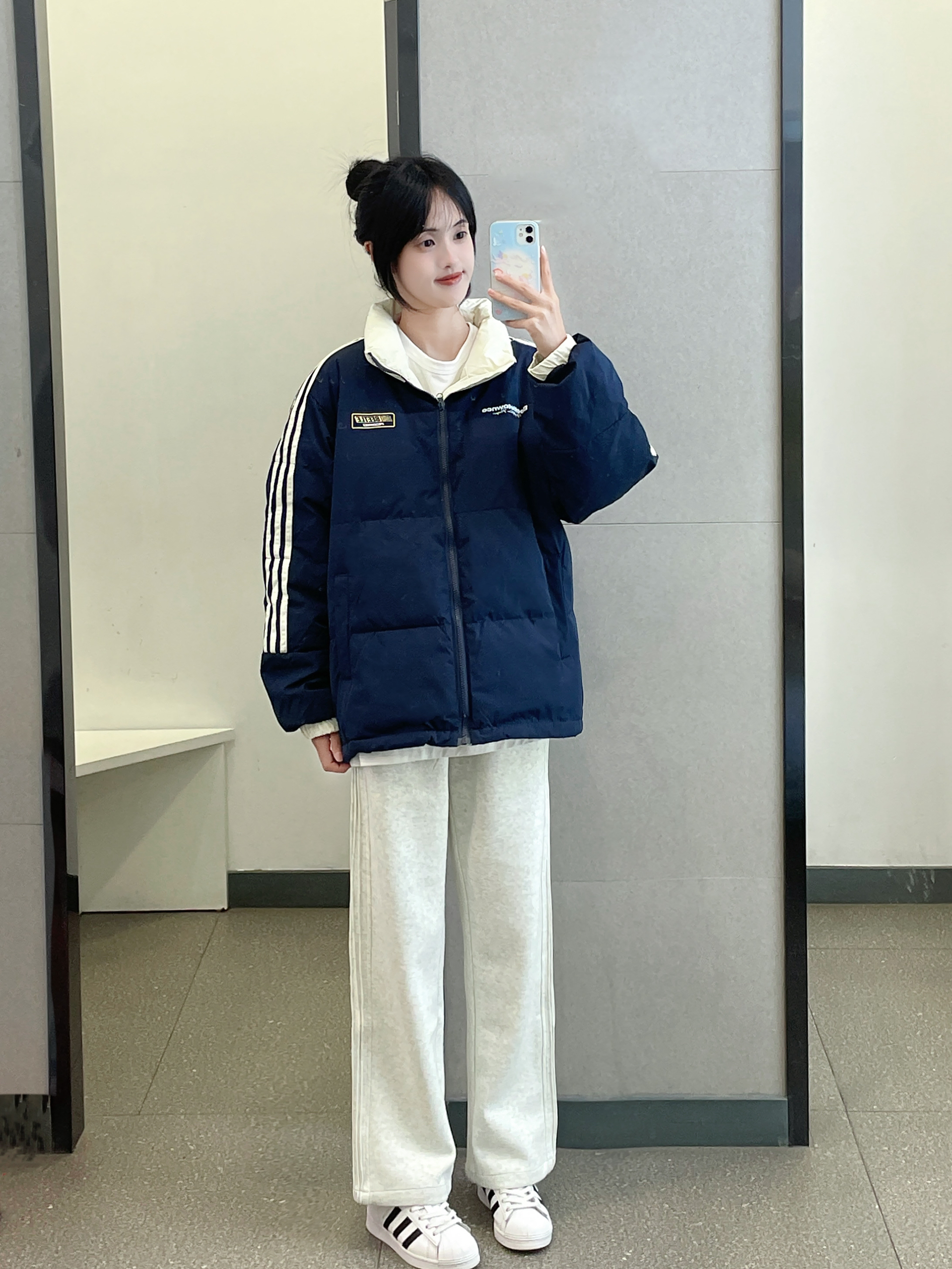 👔 :Bettle Town藏青色条纹羽绒服 👖 :coldstone花灰色褶皱条纹裤