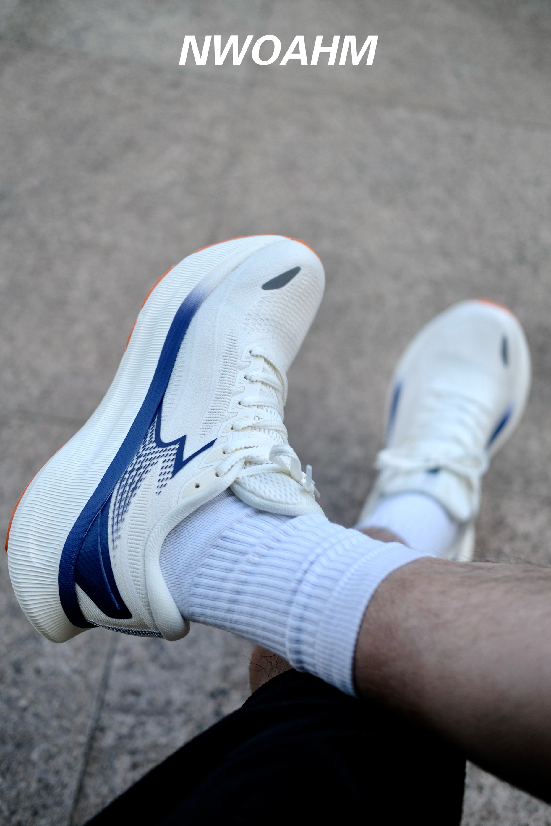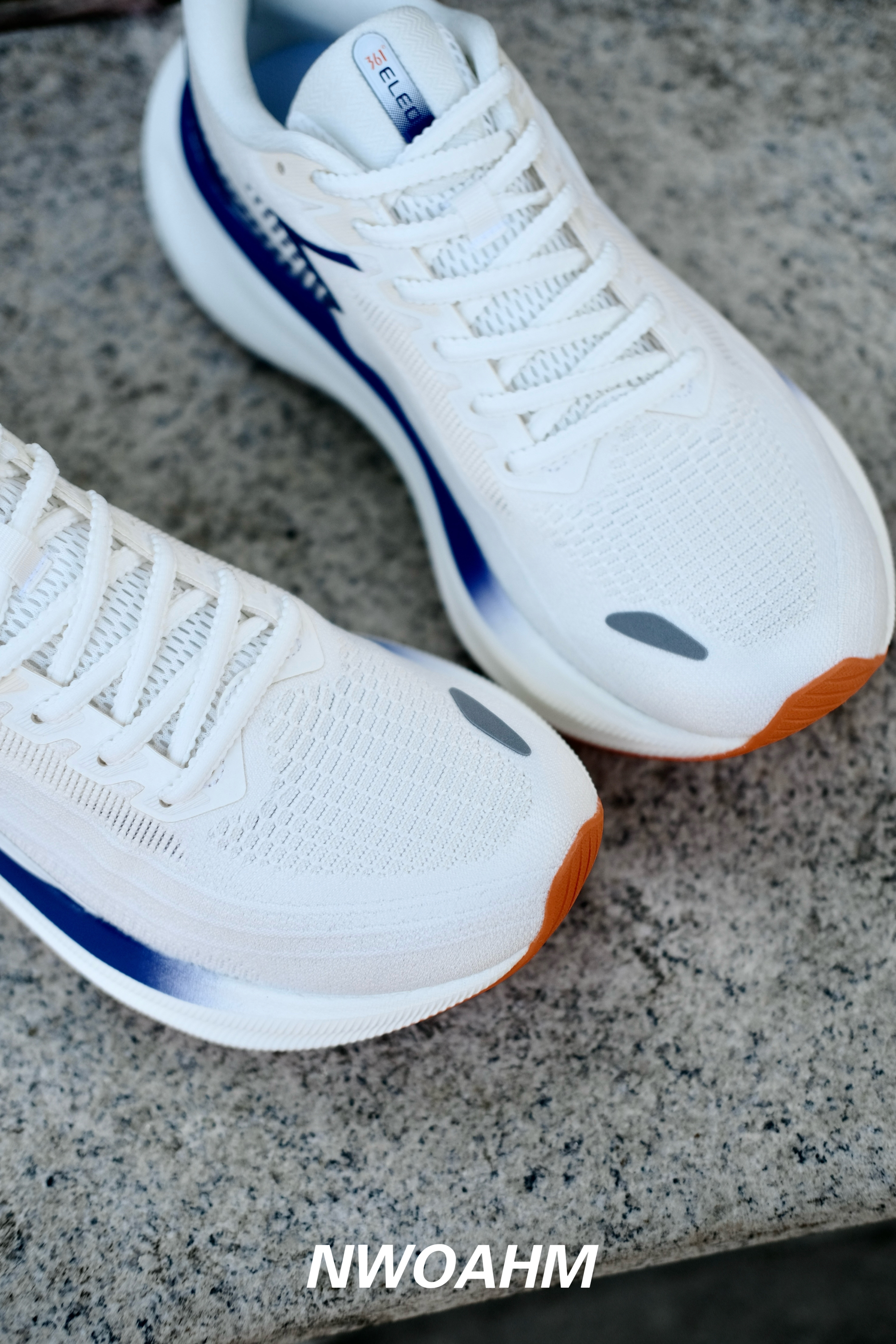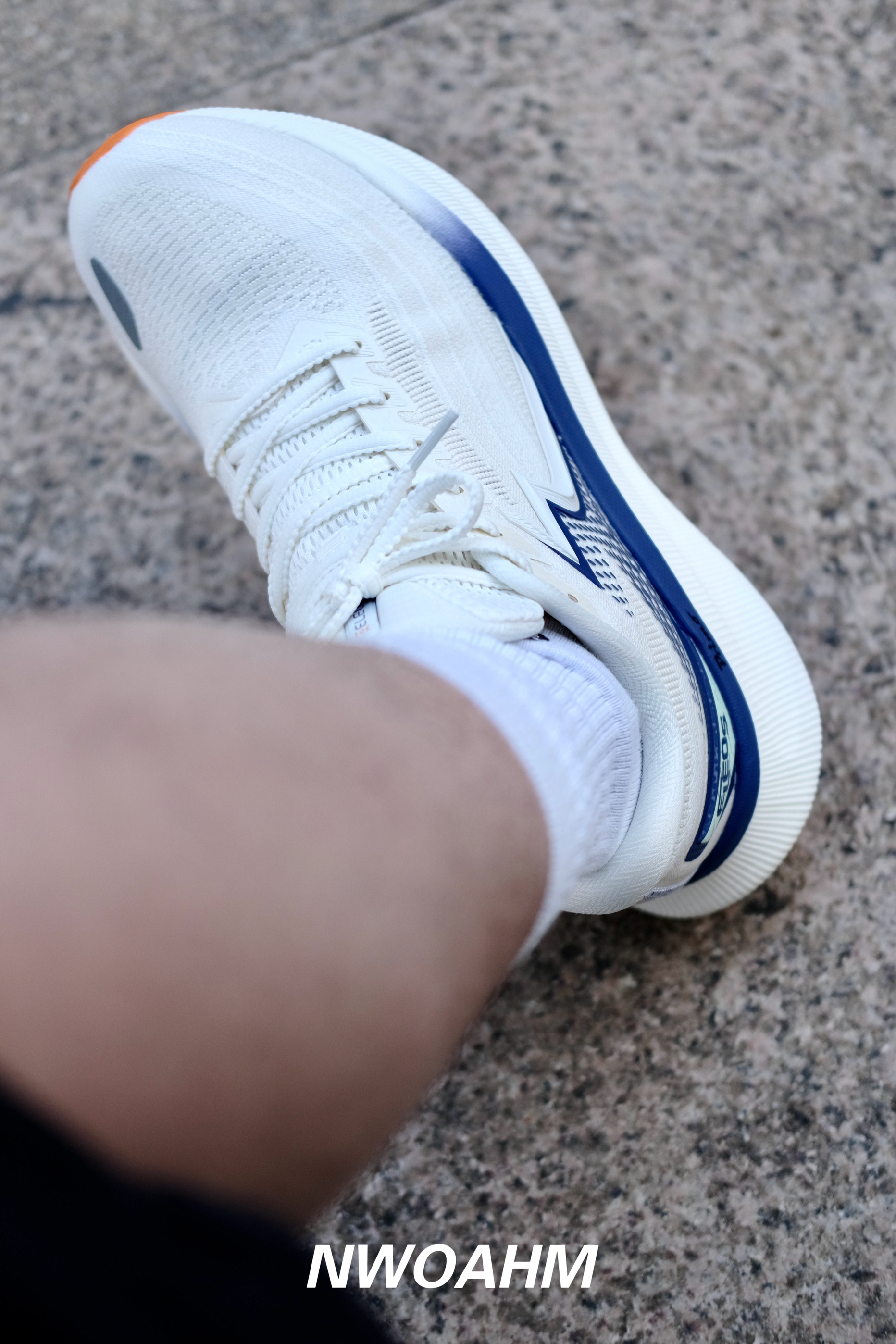 28号就要发售的这双度子eleos先替xdm试一下,选择的是这个白蓝配色,颜值没问题,上脚挺帅气的😌。 不过跑鞋还得看脚感,试跑了一会说说感受:我160斤的体重踩着是厚实又舒适(听说是国际线顶缓同款配置);包裹感挺足但又不怕闷脚(在南方室外10多度穿也不冷);还有就是我的大宽脚穿着也不挤(这很重要!)! 大家有问题都可以留言,都会回复哦!👀👀