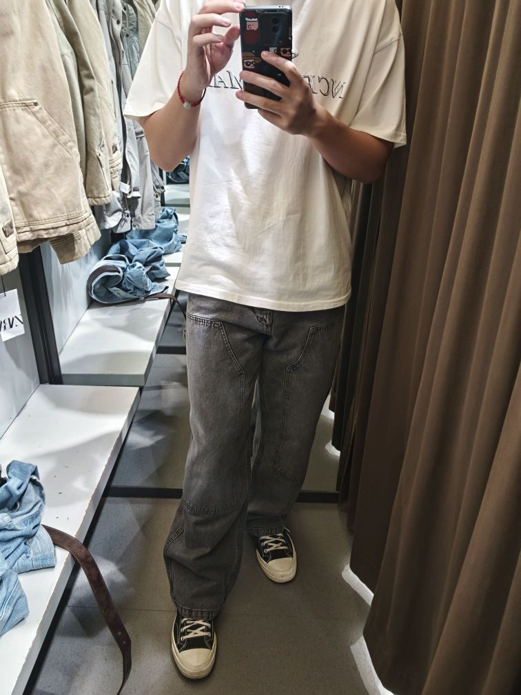 👔:白色印花T恤 👖:宽松水洗木匠风休闲裤 👟:CDG x Converse 1970s chuck taylor all star hi 川久保玲爱心联名款 原相机直出给你最真实的穿搭体验 货号在下面:0108/335/809