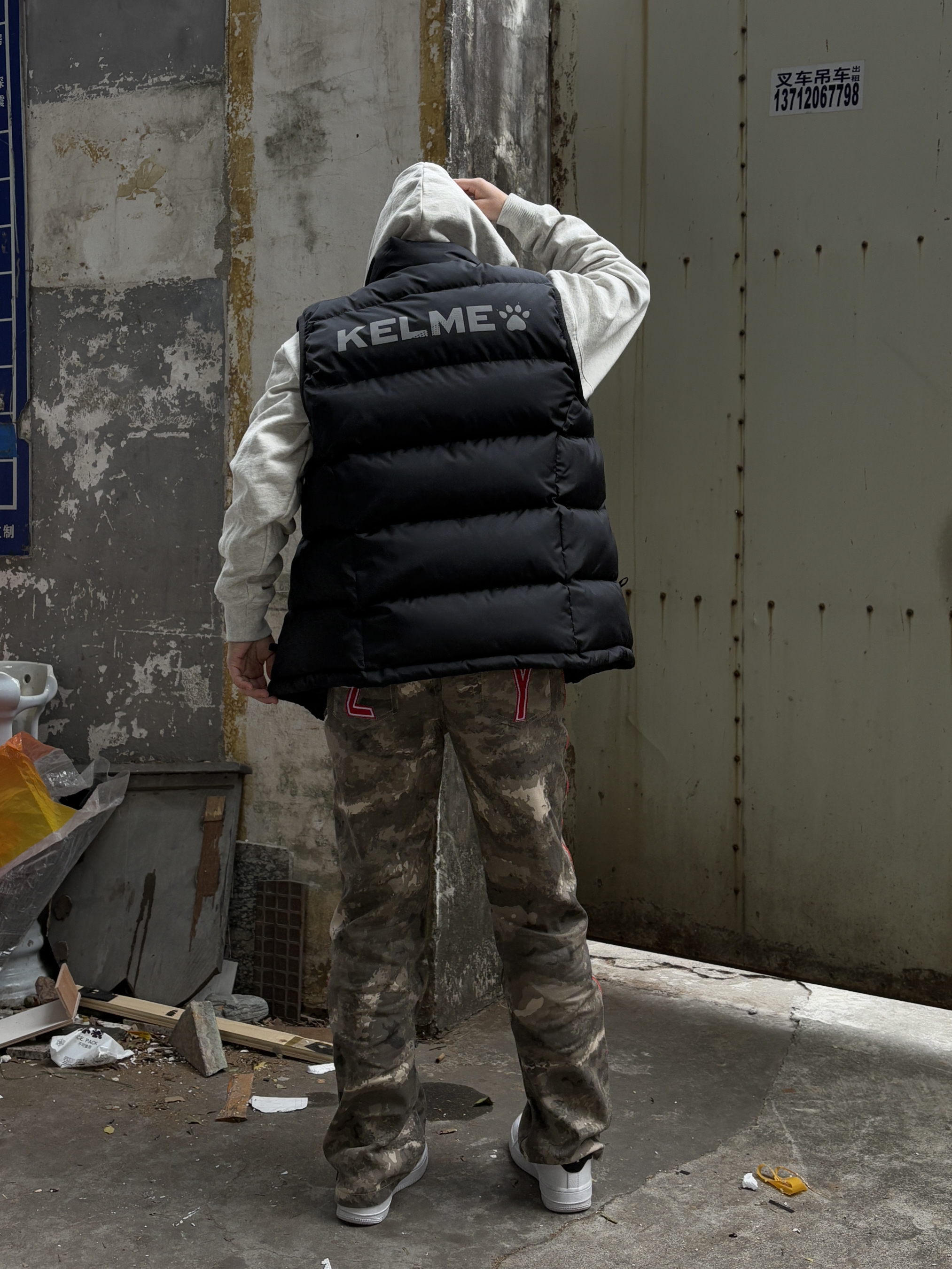 身高|体重:156/90 🧍♂️ 穿搭风格:美式 👔上衣:灰色重磅卫衣➕卡尔美马甲 👖下装:ZLYCO迷彩牛仔裤 👟鞋子:空军一号
