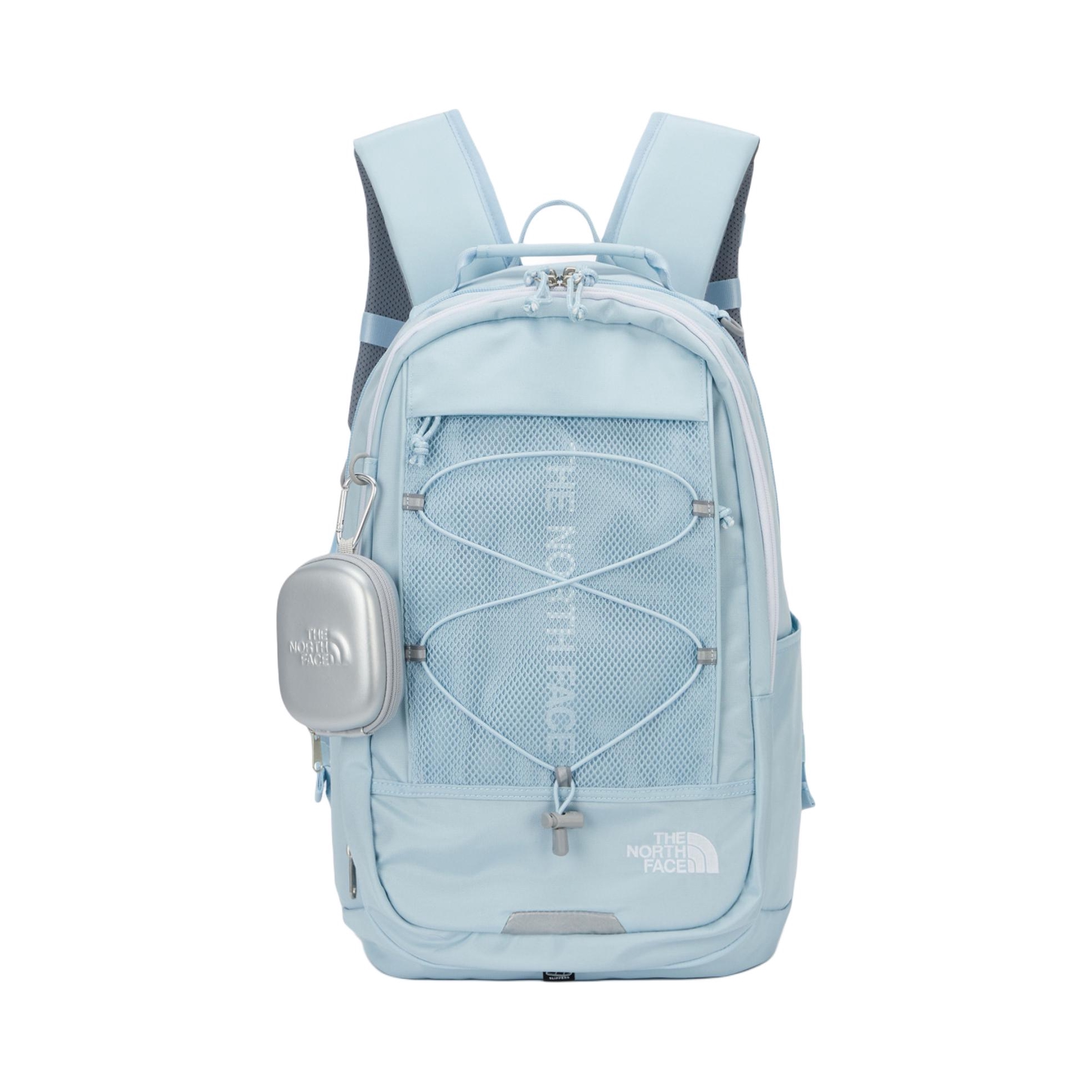 双肩包|北面天蓝色双肩包 这款双肩包颜值很高,天蓝色很适合夏天背,很清新的配色。书包正面印有北面logo,尼龙材质的书包轻便又耐用,拉链坠着一个小包,有一点设计感。书包内部空间很大,很适合上学或者出去玩。 夏天很适合背这款包包,和浅色的衣服更配哦! 图源网络,侵删