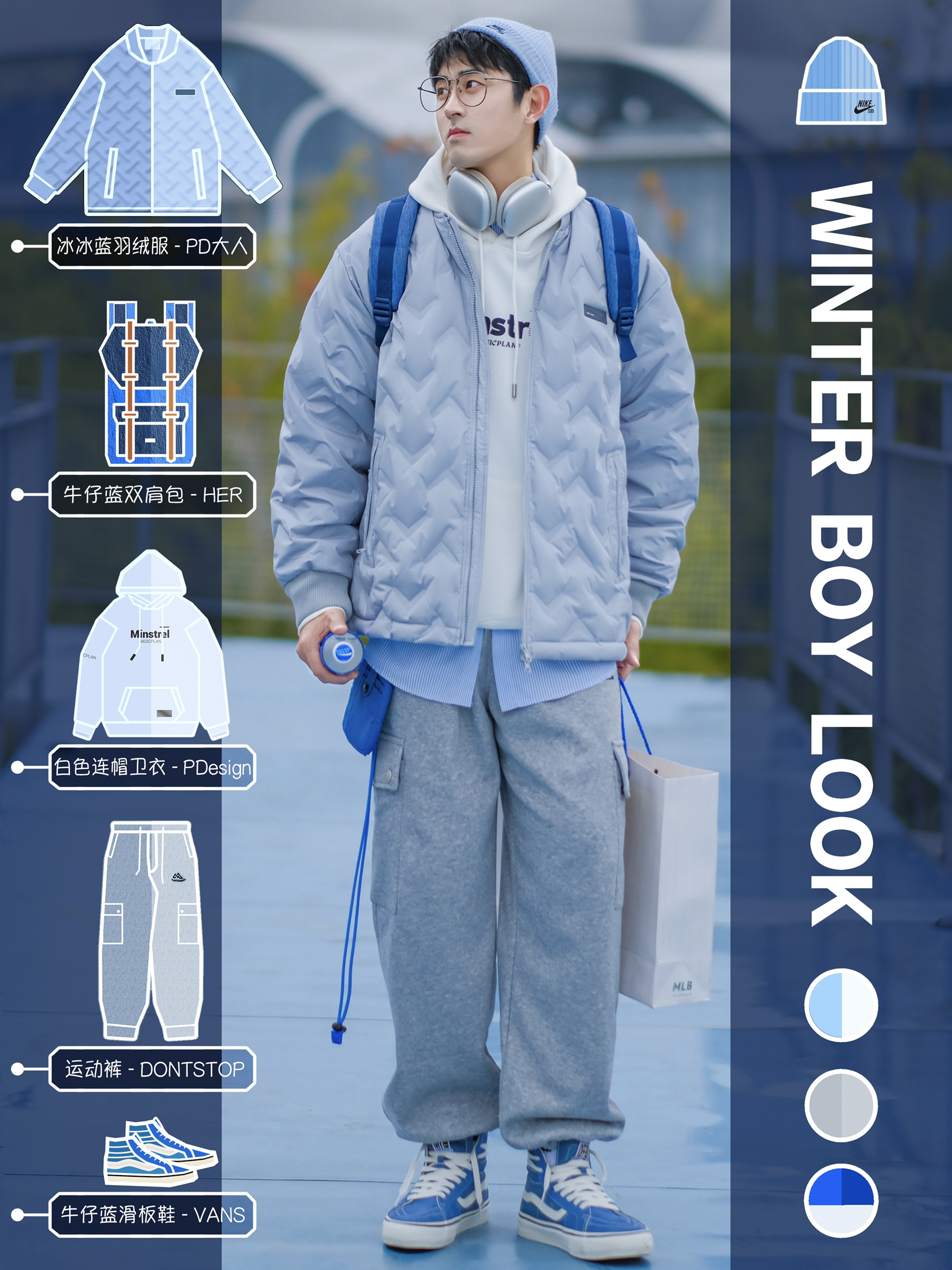 外套:黑色、灰色等深色系外套是男生冬季的不二之选,易于搭配且不会显得过于花哨 裤子:牛仔裤是冬季男生穿搭的标配,既日常又百搭。此外,运动裤也是一个不错的选择,舒适度高且易于搭配 鞋子:可以选择保暖的帆布鞋、运动鞋或马丁靴等,既时尚又舒适