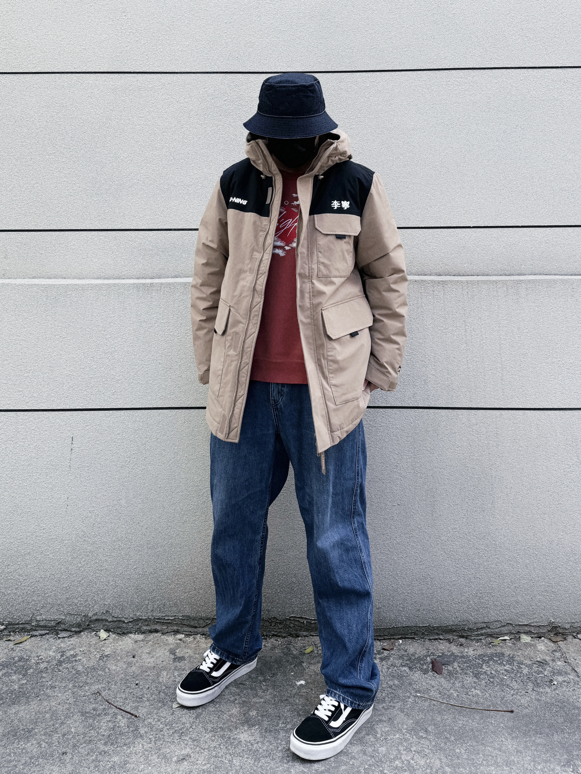 这种重磅面料的防风性还不错呢 穿上比较厚实 里面的含绒量也挺高的