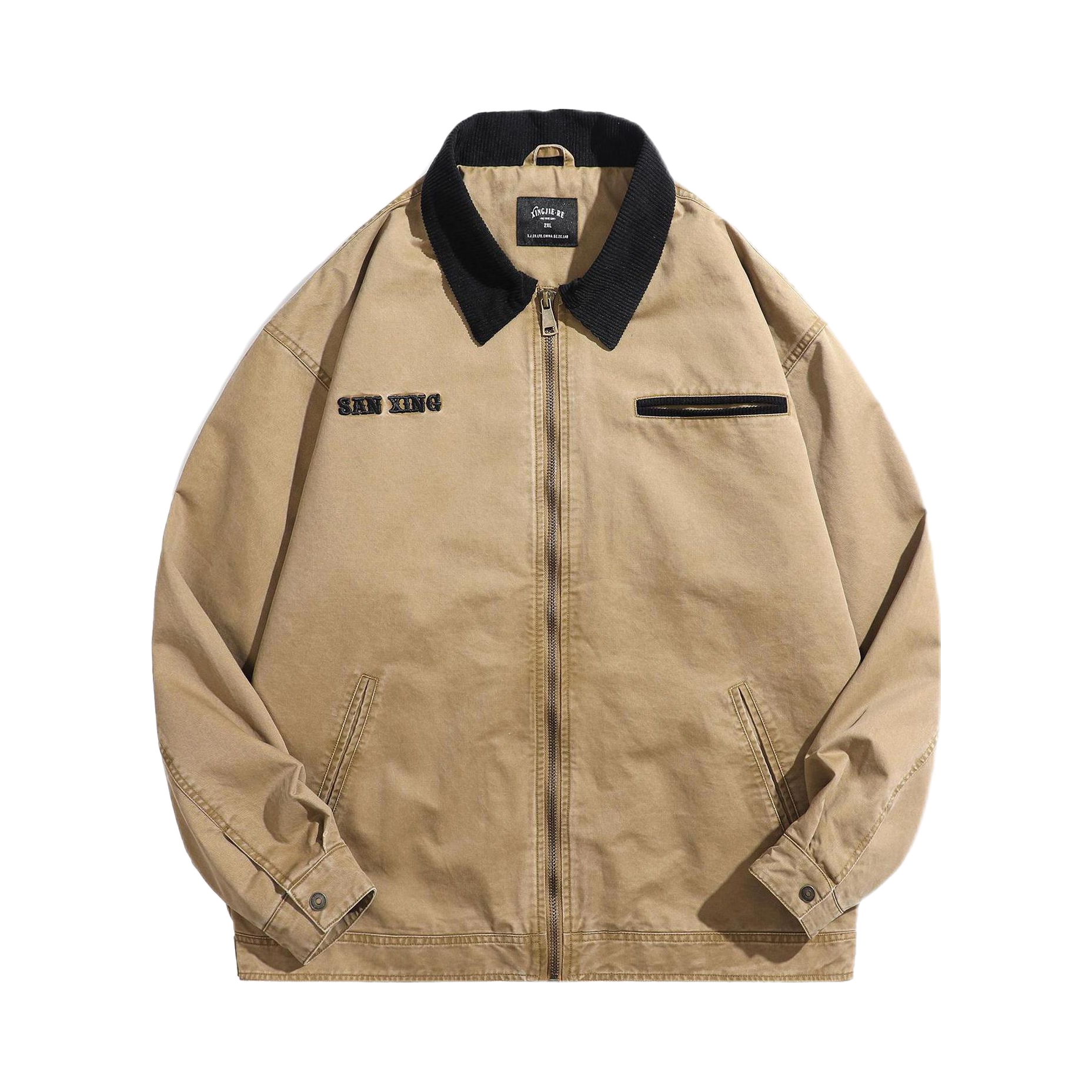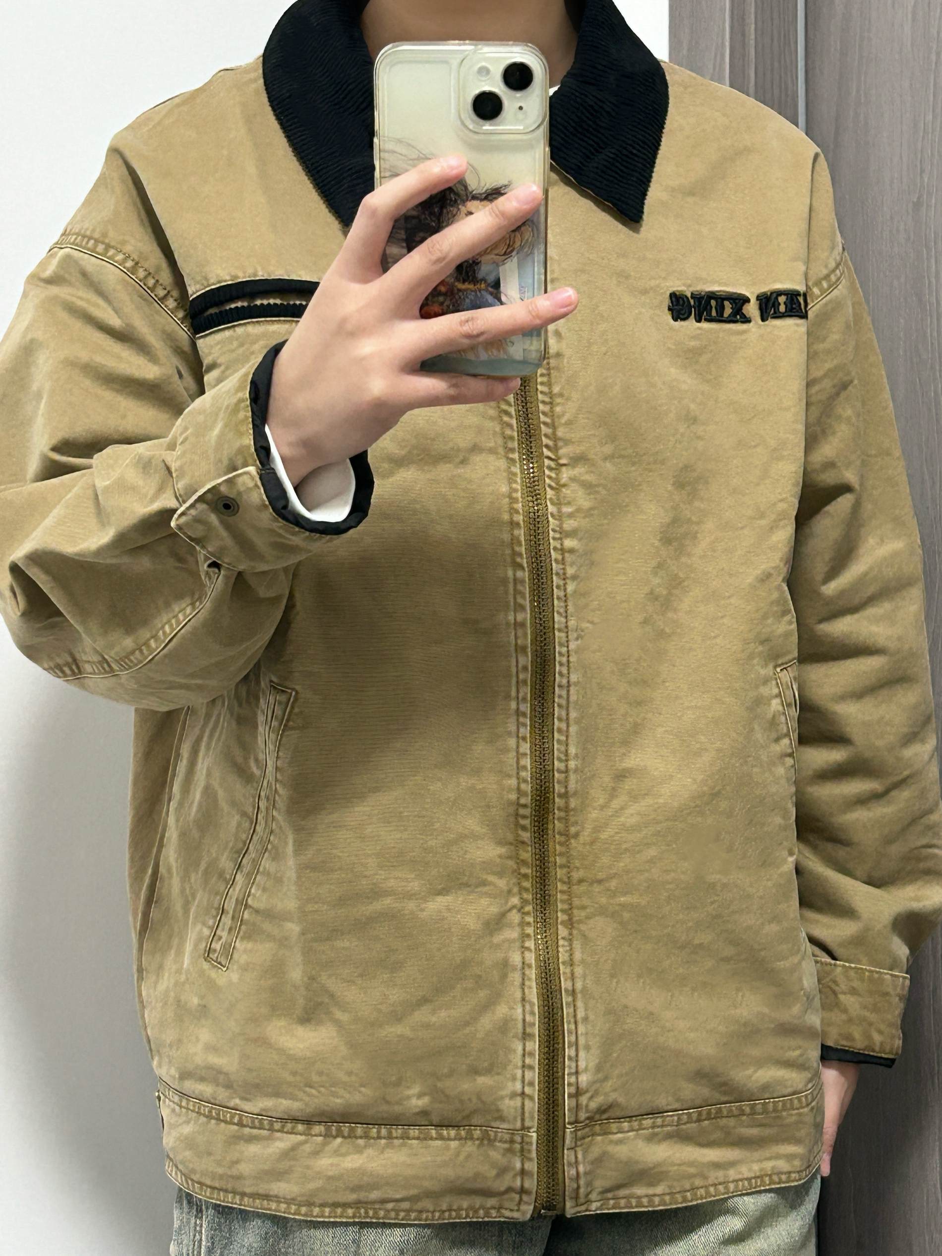 1️⃣其实我老早之前就想尝试下卡其色夹克 但一直都没下手 身上这件翻领夹克是重磅款的 摸起来质感在线 上身后板板正正🙋对比普通的夹克来说 这件增加了小细节 它的翻领是带绒毛的那种 而且衣服胸前进行了刺绣的设计 同时另一边增加了口袋装饰 做到了实用➕设计并存 而且衣服👕的下摆后面是扣带设计 增加了辨识度 而且我感觉这款衣服的卡其色里面夹杂着水洗的感觉 比普通卡其色好看些!!! 2️⃣下面我搭了条做旧...