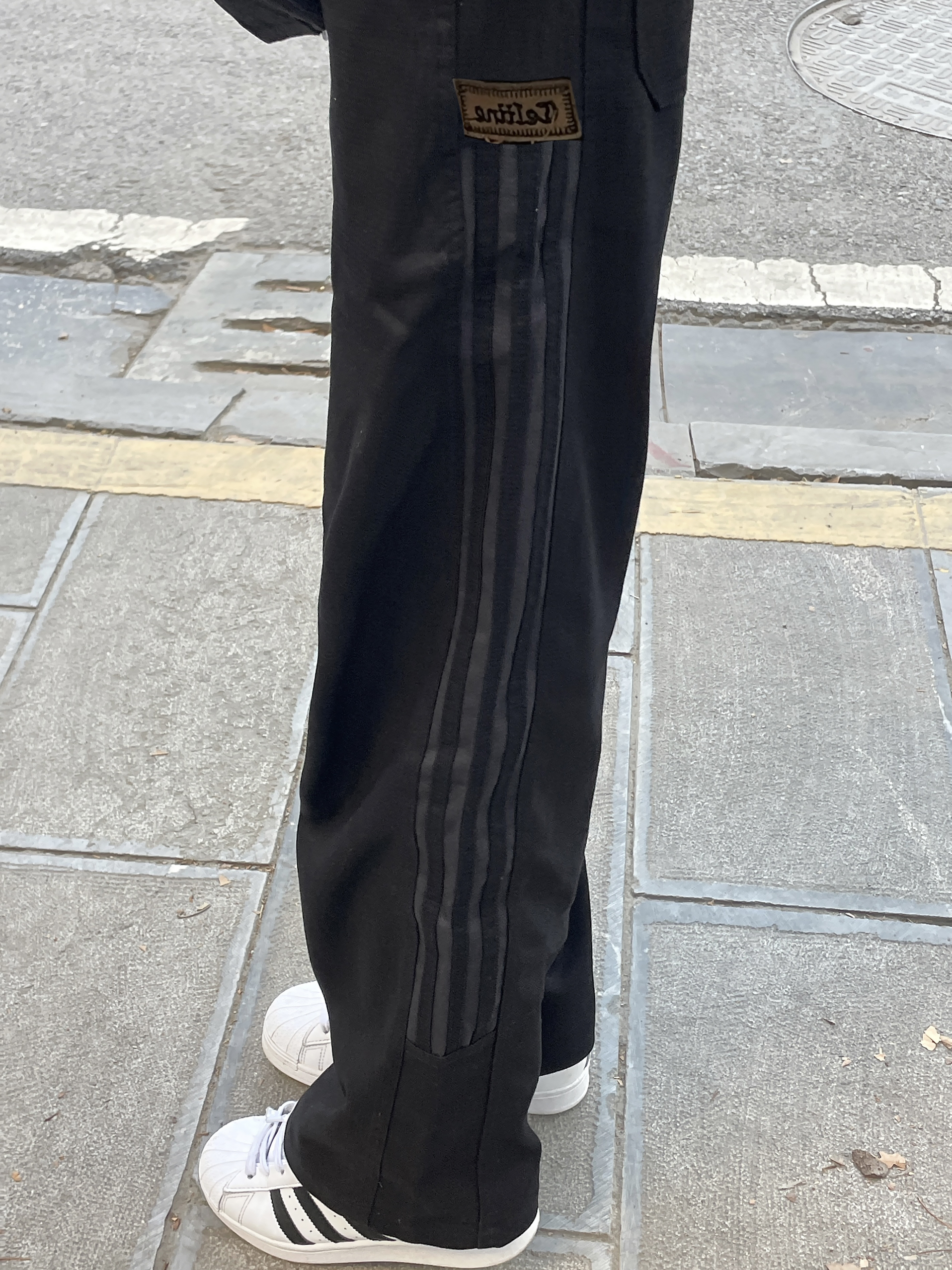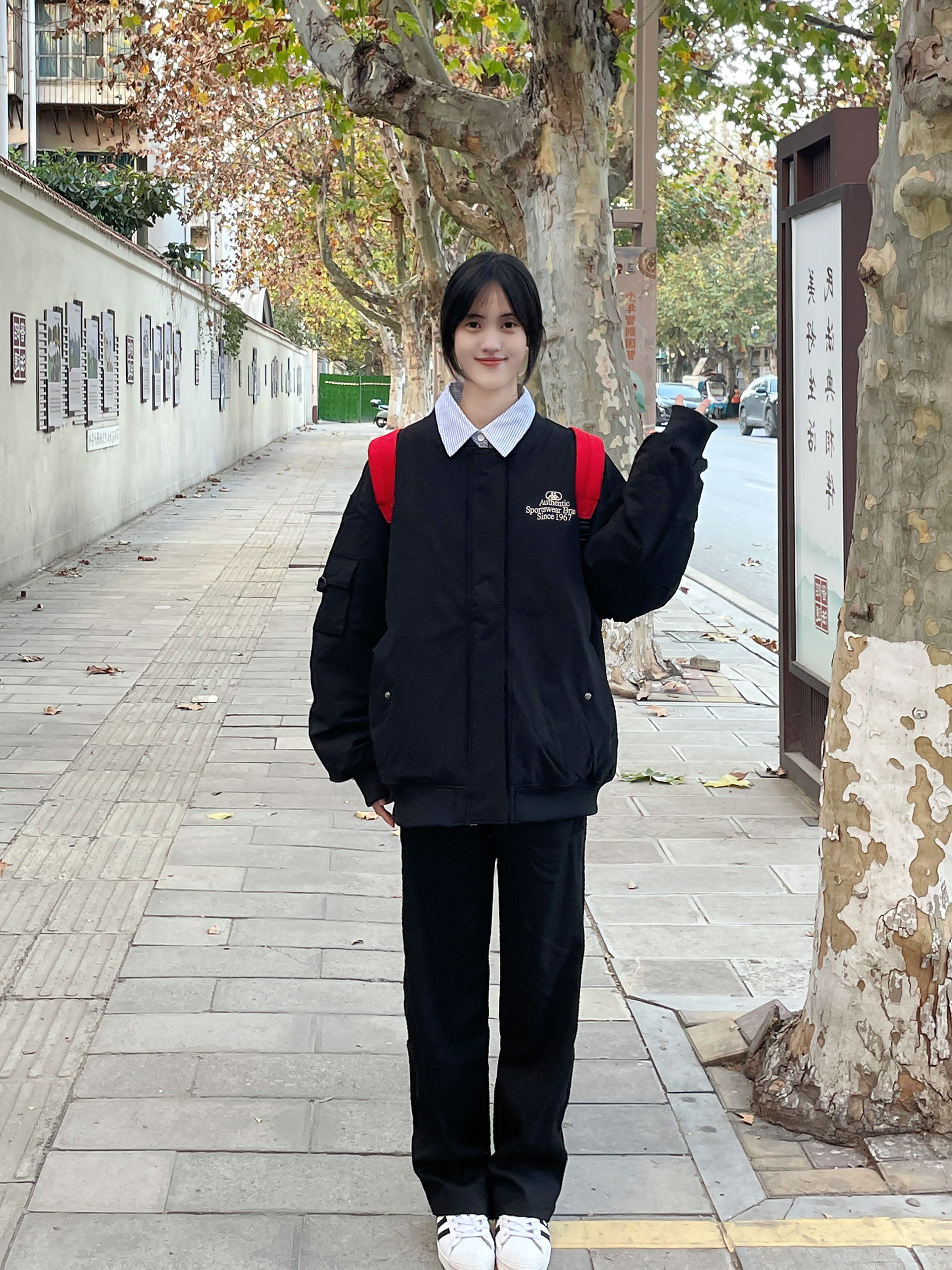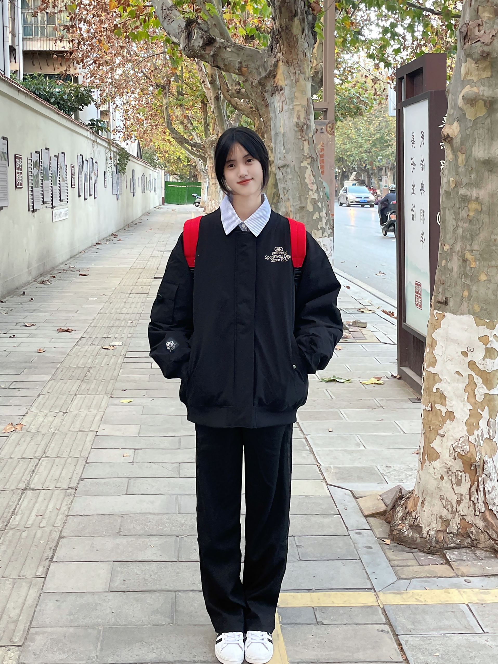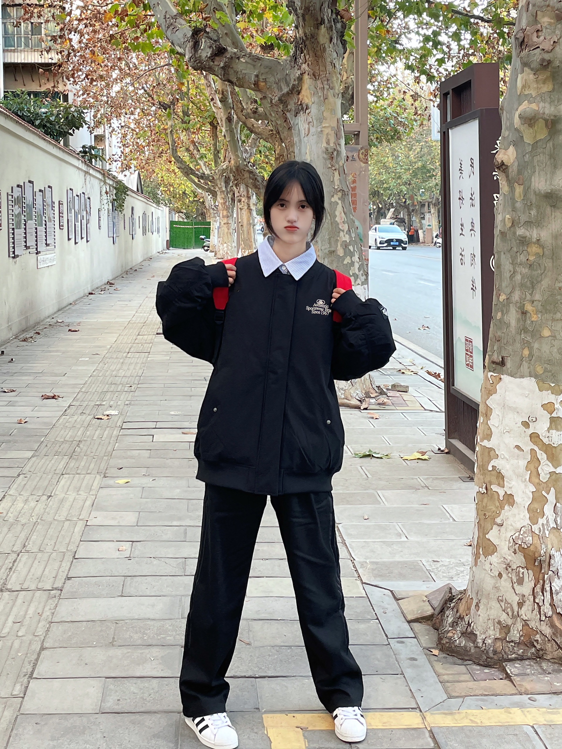 👔 :Kappa黑色夹克棉服 里面叠穿了件蓝白条纹衬衫 👖 :coldstone黑色条纹裤