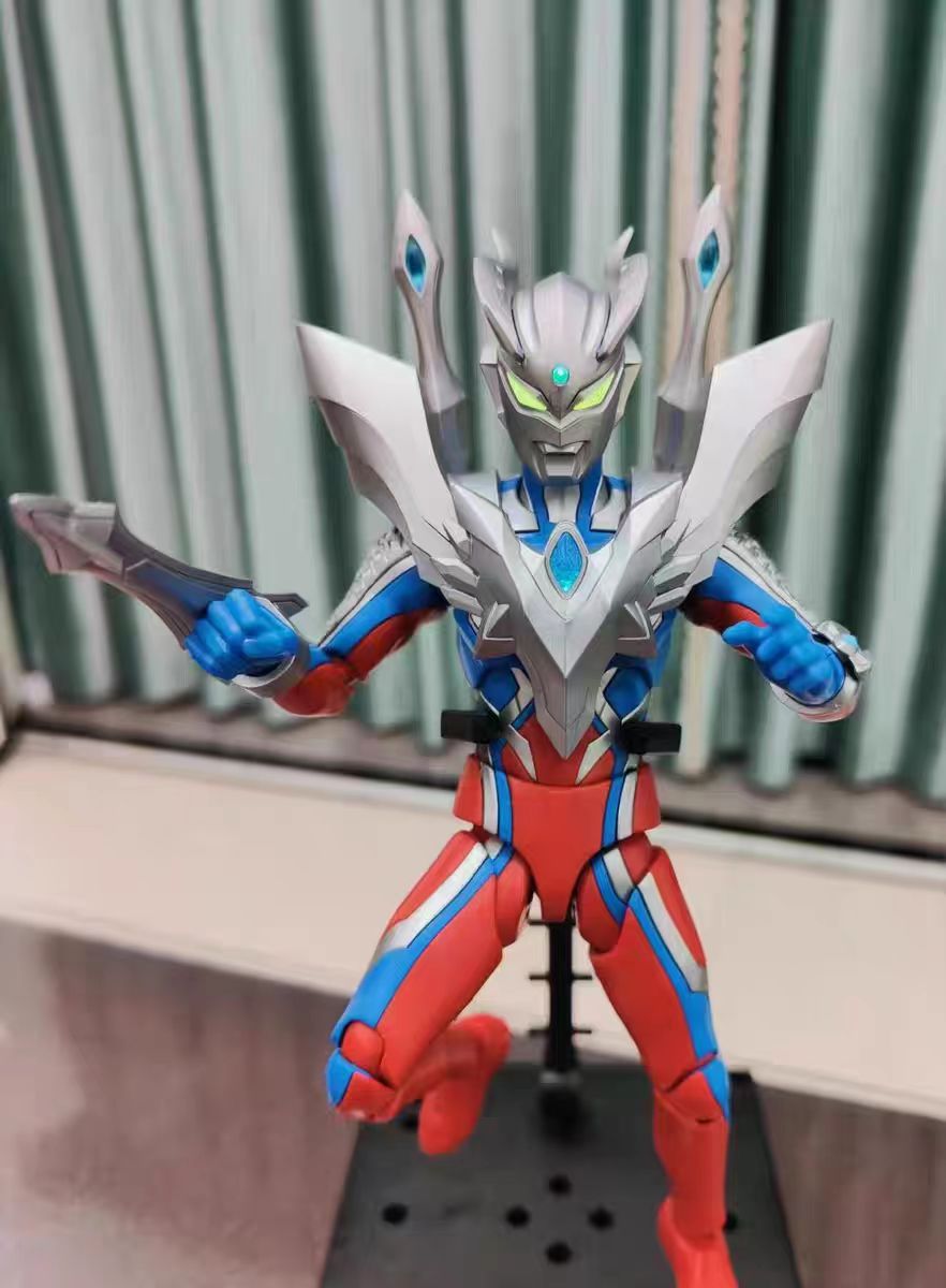 布鲁可传奇版终极赛罗可谓打破了国产可动赛罗一贯萎靡的局面,头雕的还原程度大有叫板万代SHF的样子。 免剪钳无贴纸、完美分色、自带磁吸灯组、手型超级多、全套武器配件(帕拉吉之盾、双剑、弓箭、光线特效件、手镯、头镖)爽到飞起。把玩阻尼舒适,身形还原度完美,颜值高就是任性剧中任何姿势或者你能想到的动作赛罗少爷都轻松拿捏。图源网络 侵删