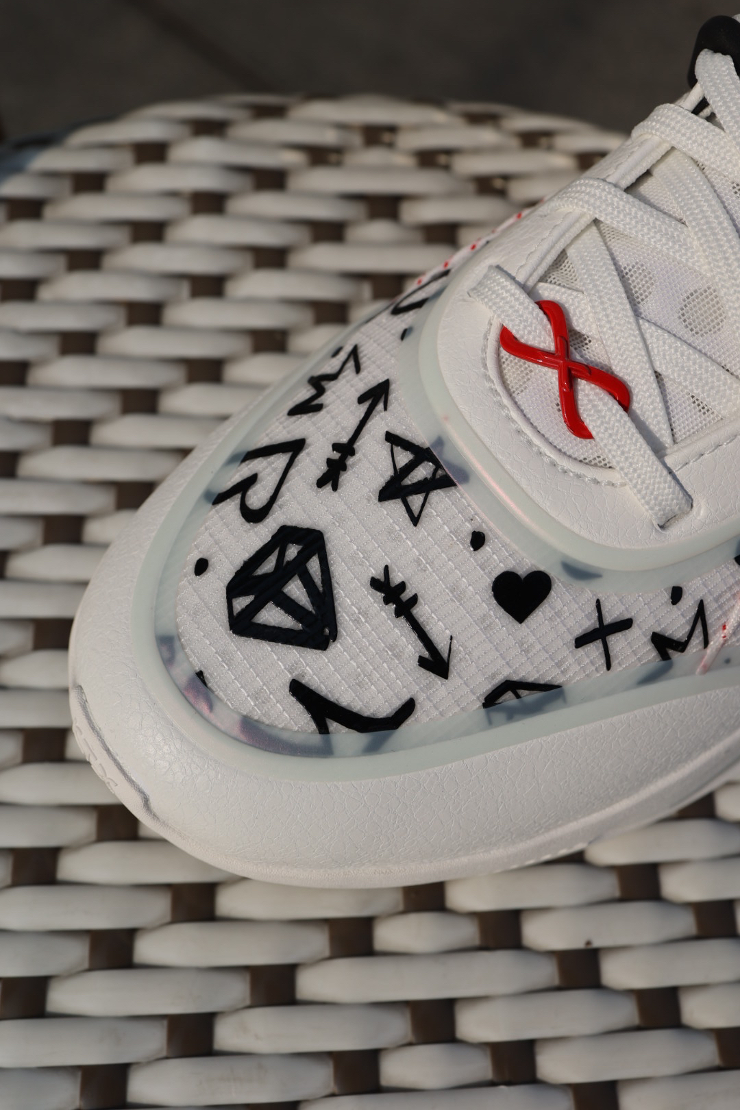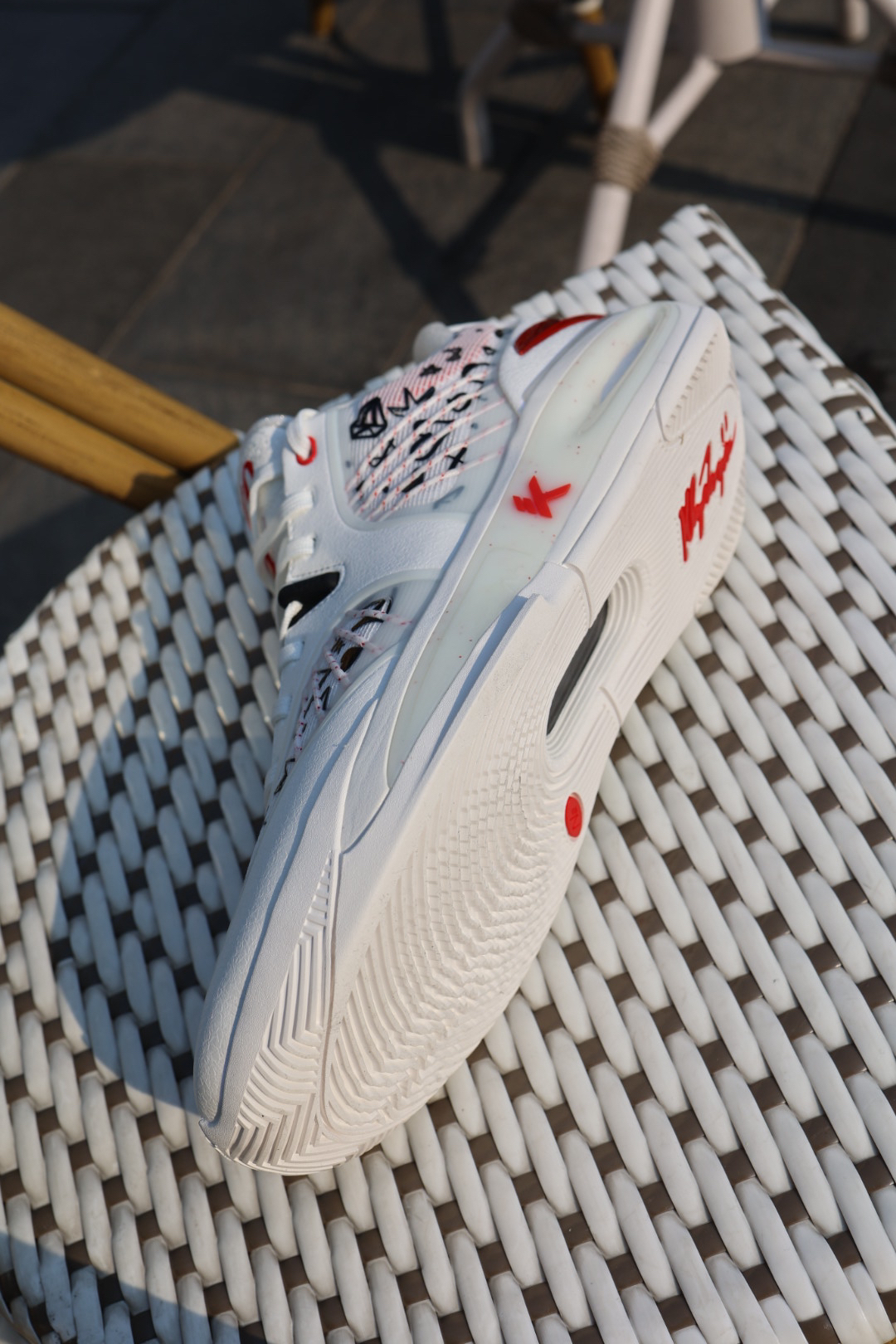 鞋面涂鸦设计 后跟红色logo点缀 KT10的性能不用多说了 这个配色新年打球穿真绝了