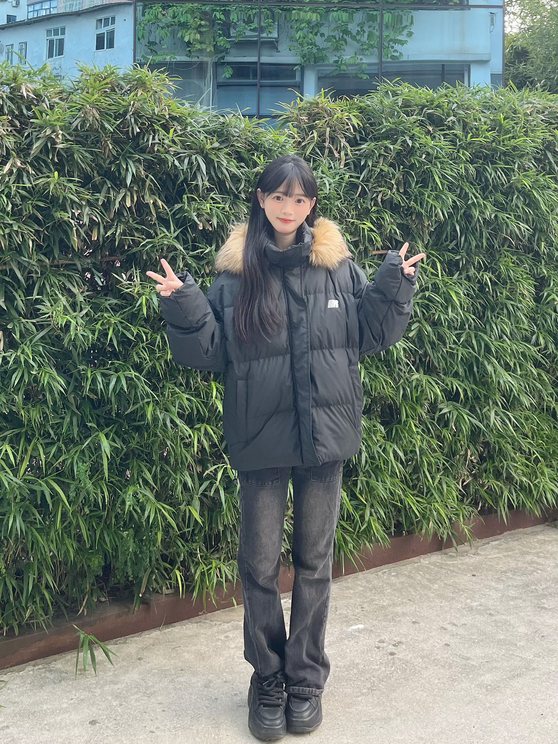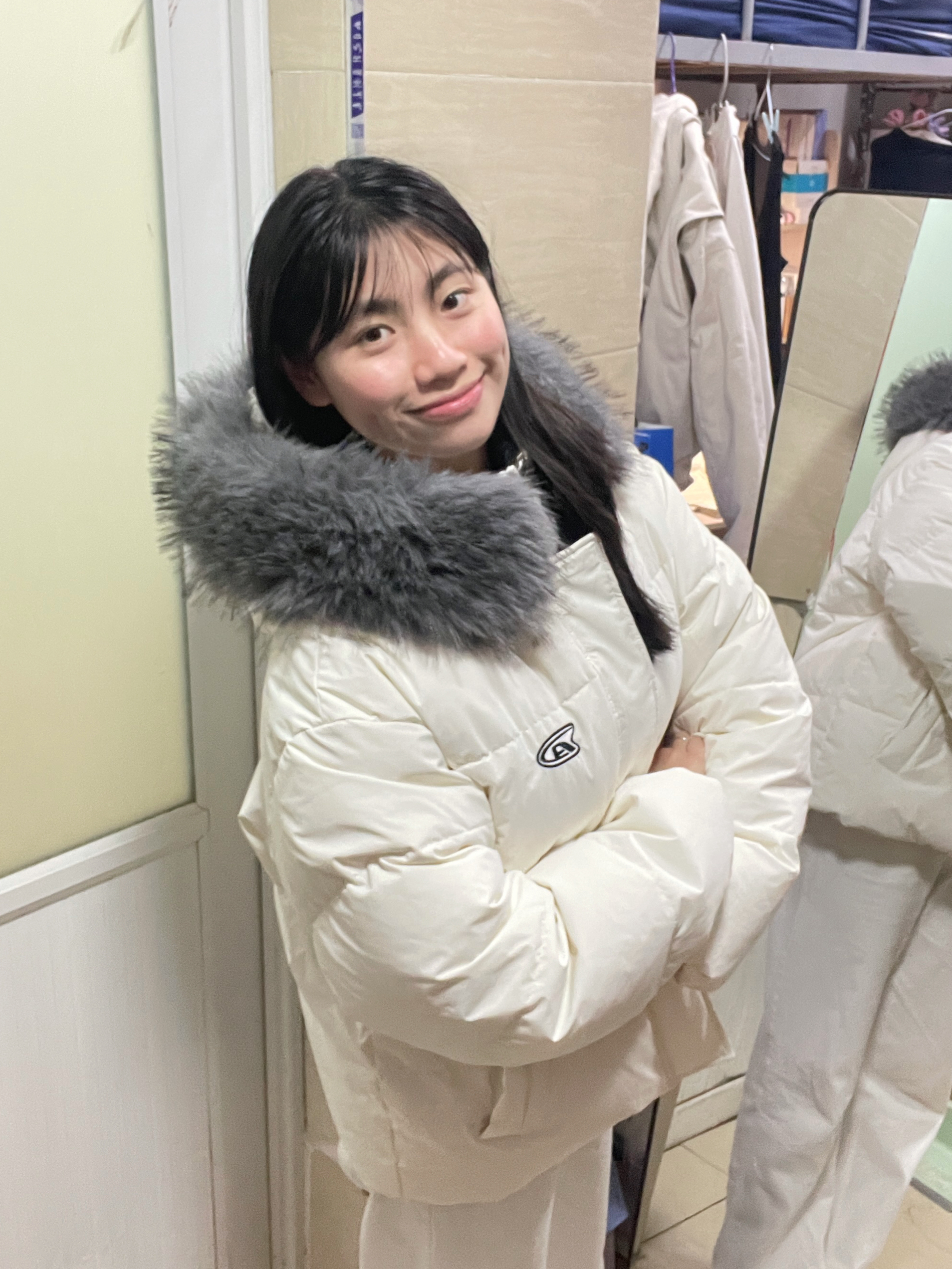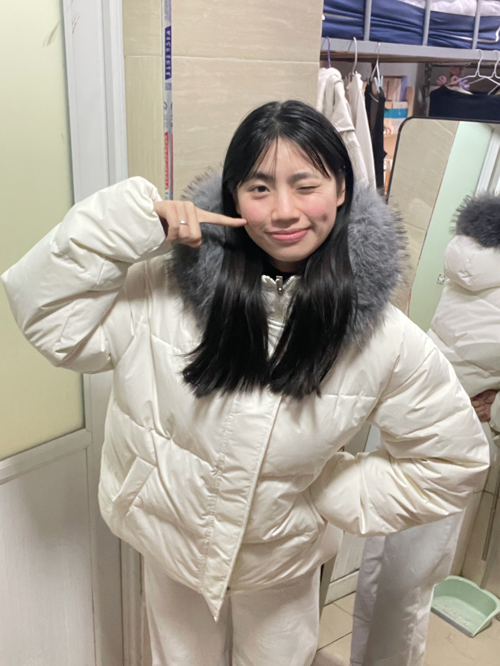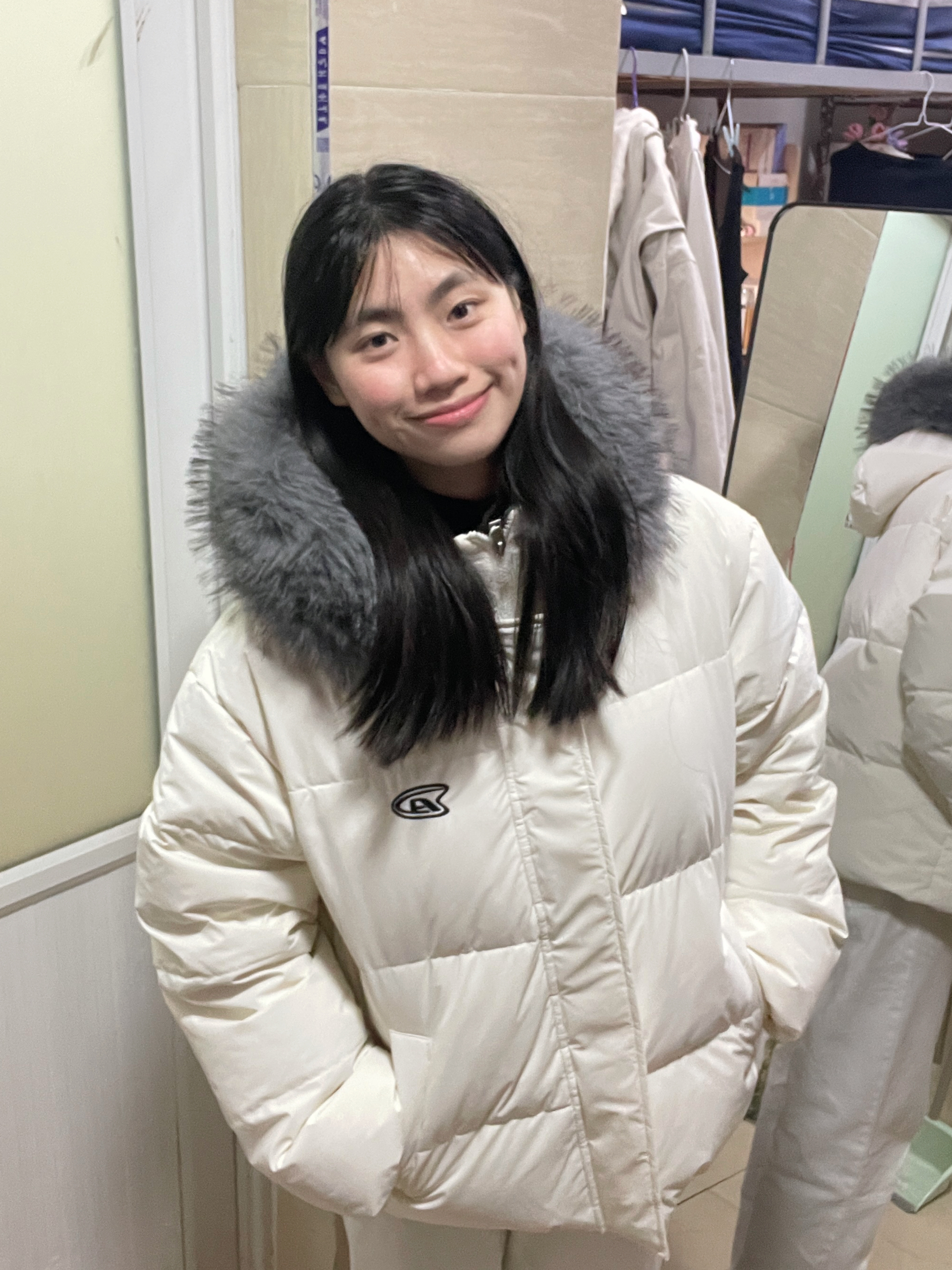 166 102穿的是s码 超级暖和的羽绒服呀 而且毛领也很好摸很软乎乎 喜欢的宝宝可以参考一下哦