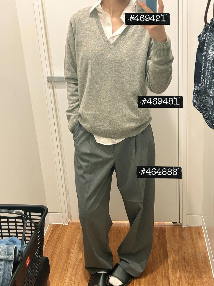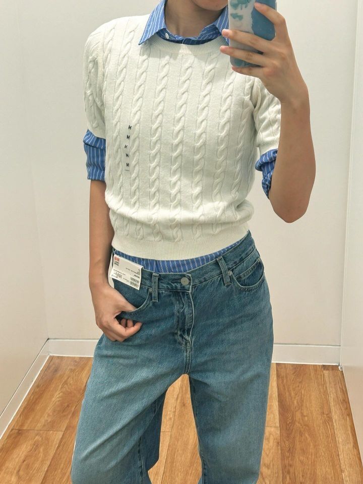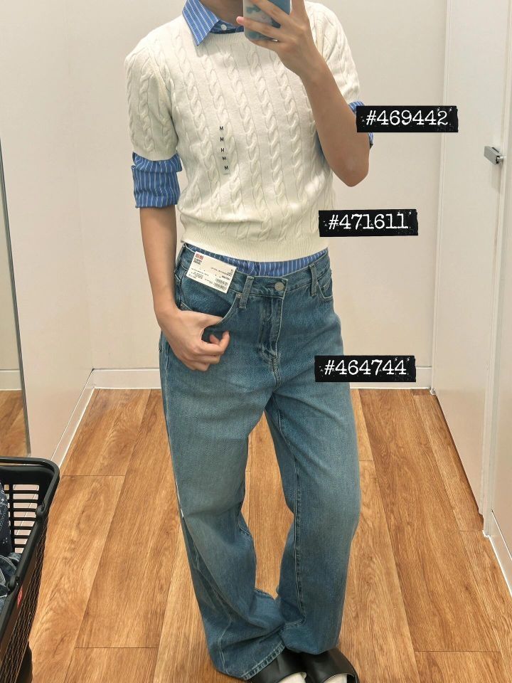 优衣库秋冬新品真的有点东西啊! 前几天刷到第一套白色扭花针织短袖的look 一眼就爱上了 一直心心念念想去试试 昨晚在优衣库试了两套 都很有拉夫劳伦的味道 货号都标在图上了 我没有买打算上网找下平替 一开始是冲着白色针织短袖和蓝条纹衬衫去的 结果种草了第二套的灰色西裤 坐等降价
