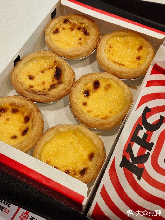 本篇笔记关联了KFC/肯德基 蛋挞(原味) 蛋挞6个等商品,为用户提供真实的使用体验和购买参考。