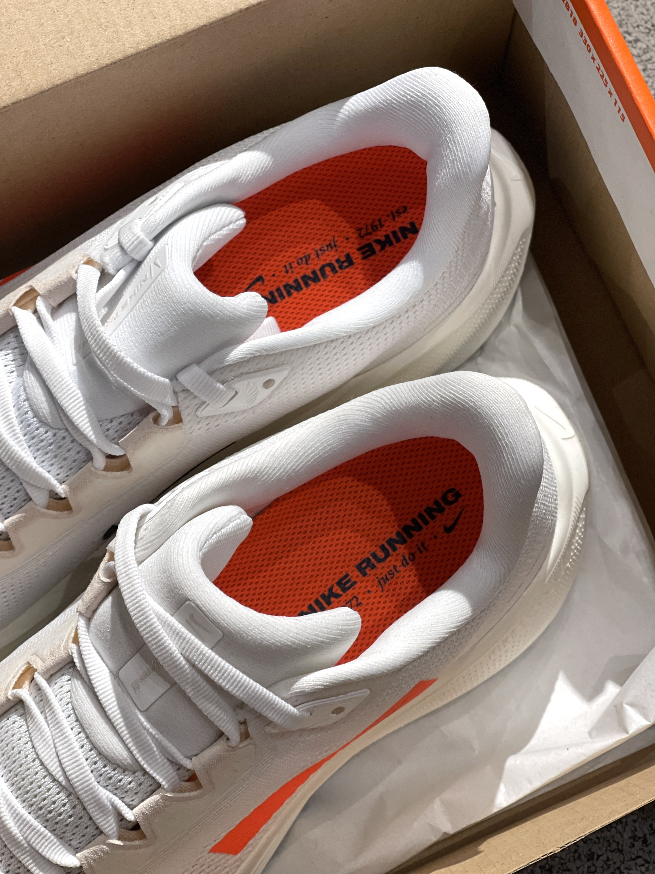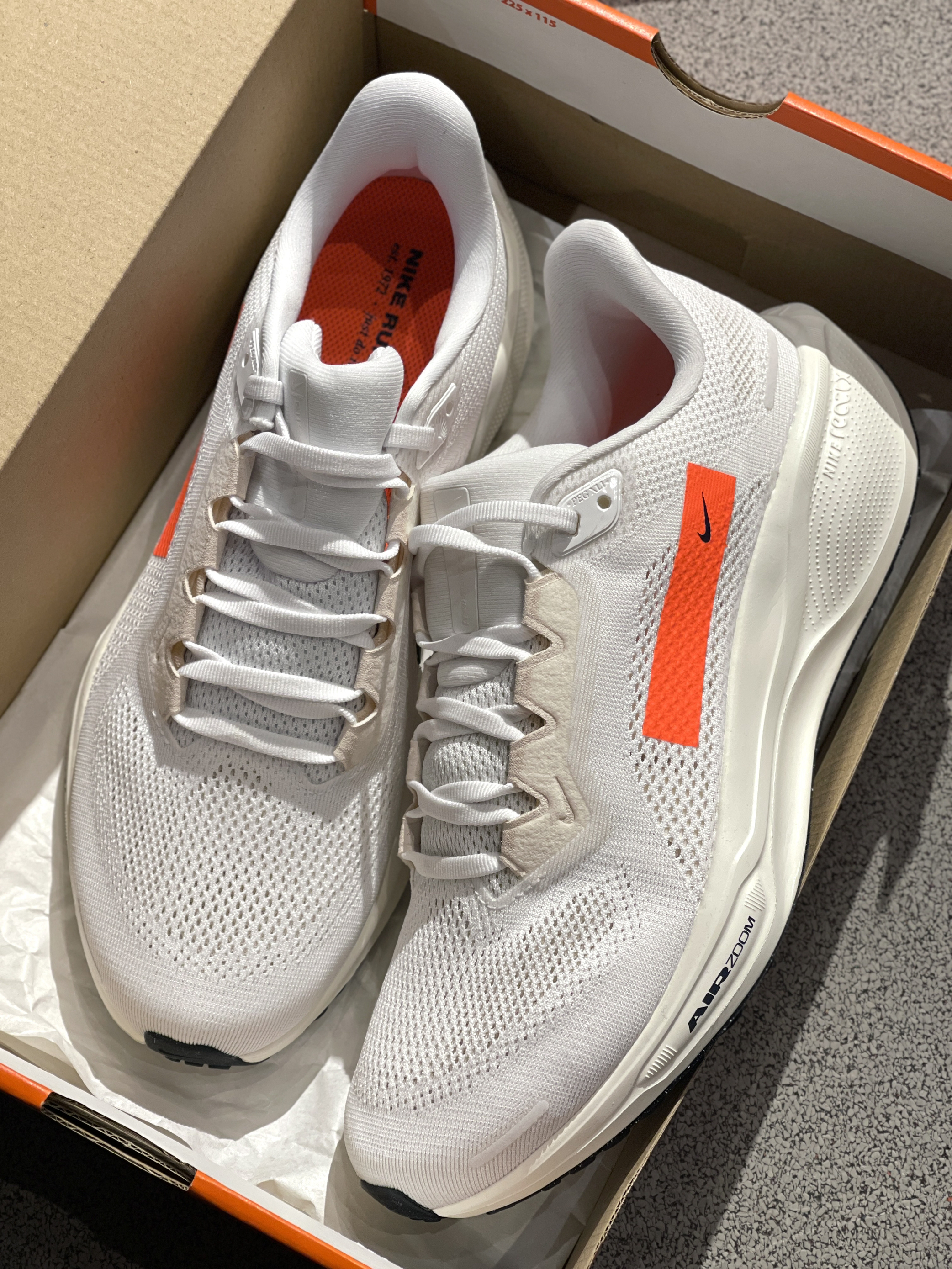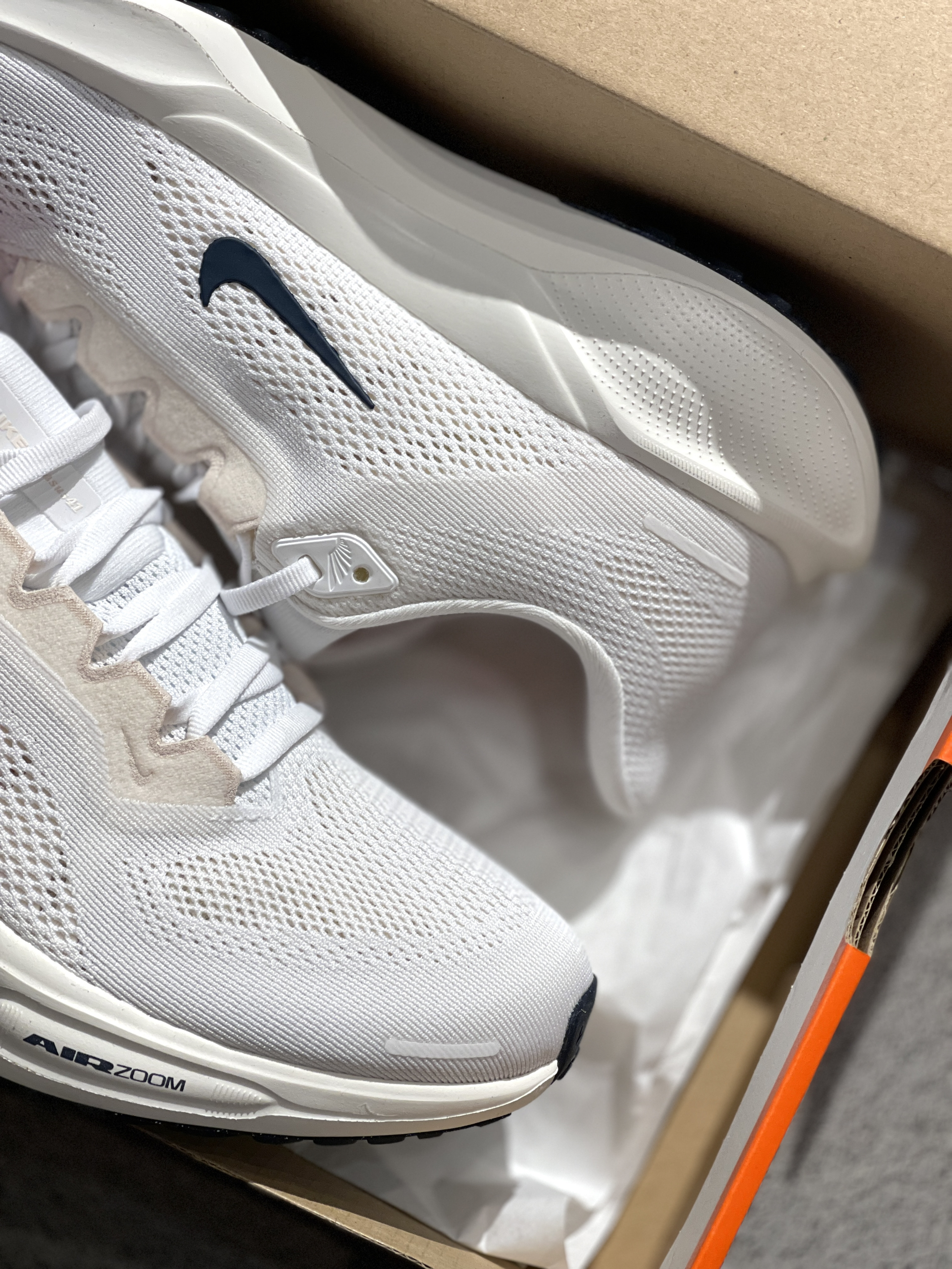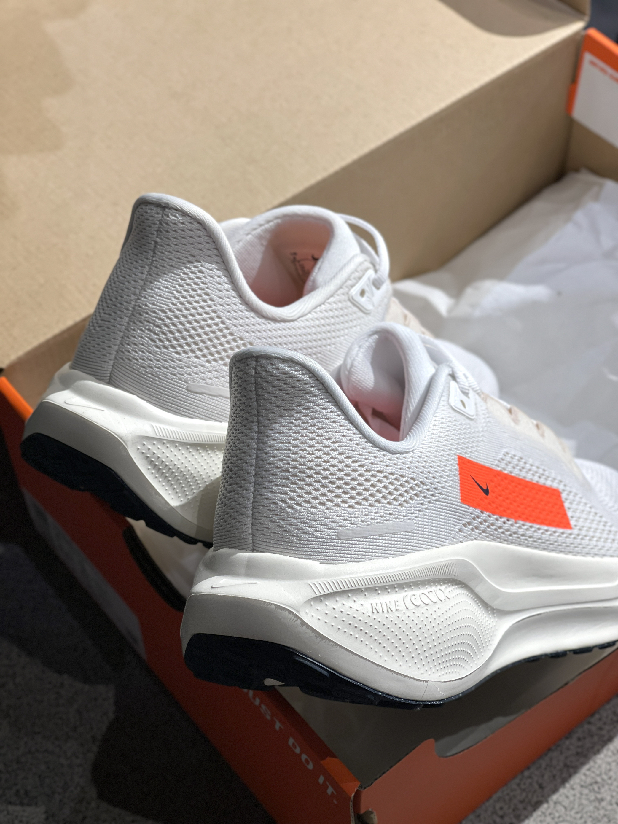 飞马跑鞋第41代啦,你入手了吗?😎 Nike|Pegasus 41低帮跑步鞋“白色”☁️,实物开箱嘎嘎干净,全新41代鞋型➕大面积白色点缀橙色条,整体效果干净舒适,穿起来的脚感也很棒,前后都有气垫加持!🤩