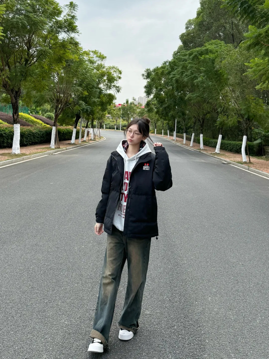 立领羽绒服得穿连帽卫衣,下身搭配一条复古做旧的牛仔,一套简约又日常休闲的搭配就轻松get,保暖又舒适,百穿不腻