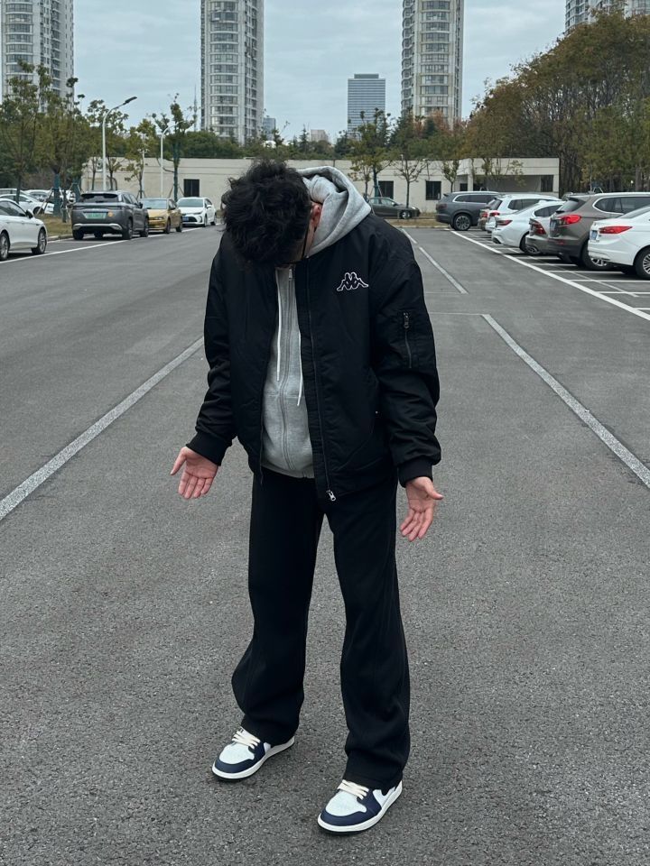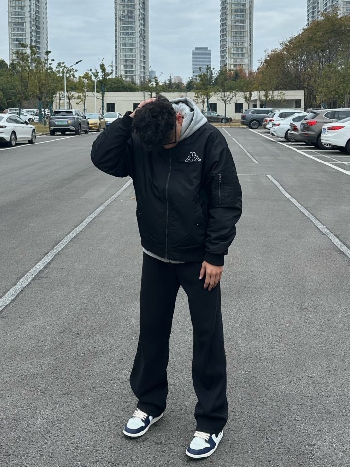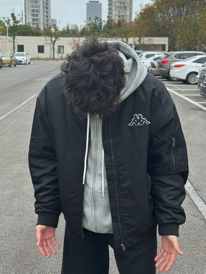 今天上身的是 Kappa 1916系列飞行员棉服,经典黑色调配合宽松版型,胸前小Logo低调精致,背后的“ITALIA”字母设计感十足,为整体增添了不羁的街头气息 内搭选择了一件灰色连帽卫衣,层次感刚刚好,兼顾保暖和视觉上的丰富感。搭配下身黑色宽松裤,走的是简洁干练路线,整体色调很统一,低调中透出高级感 脚踩 AJ1黑蓝配色,为整套Look注入了一点点动感元素⚡,既休闲又不失运动氛围感,显得整体搭...
