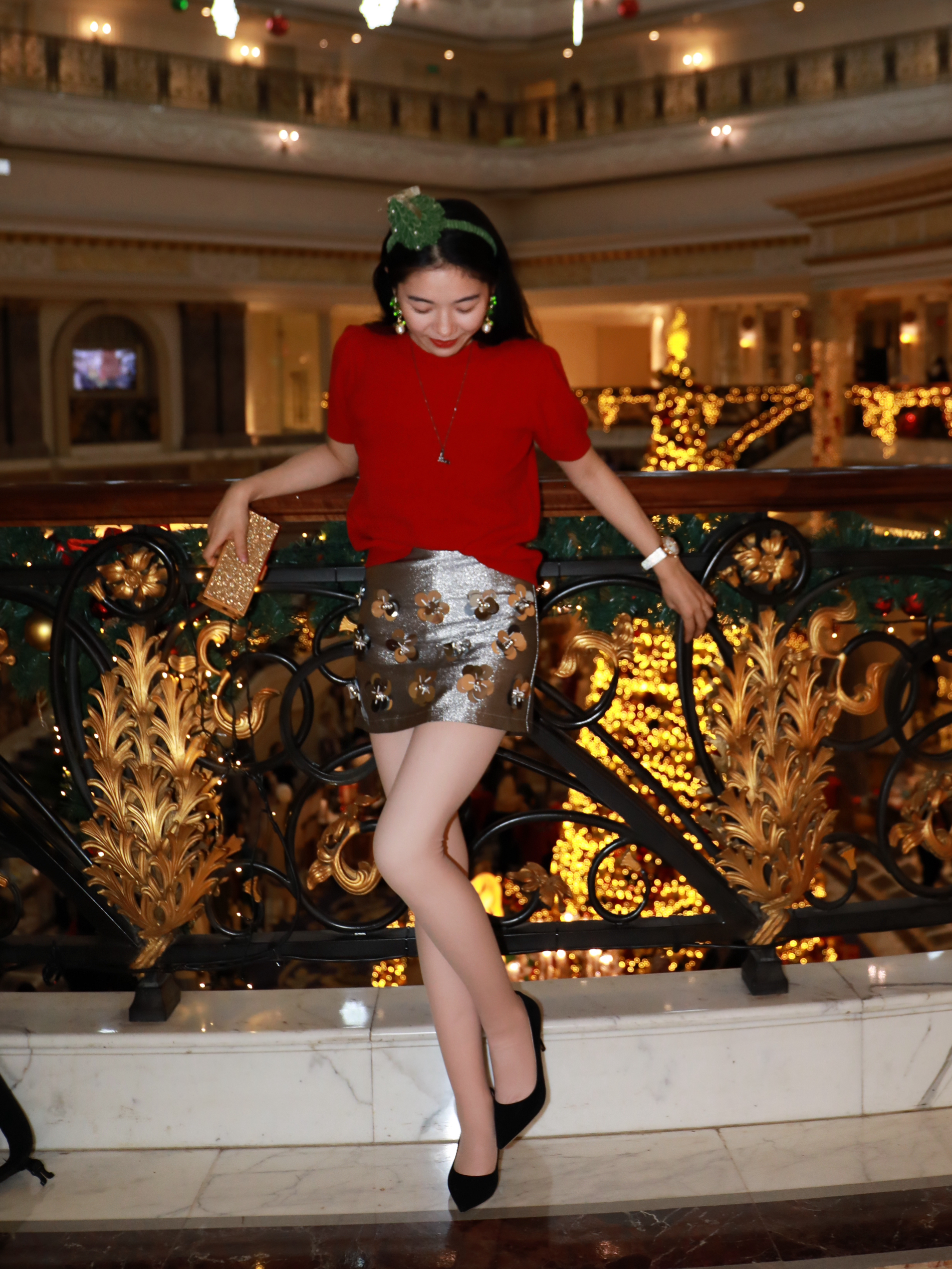 圣诞老人今年请假了 换我来代替它给你们准备惊喜咯~ 今天穿的很有圣诞的氛围圣诞红色上衣 和轻奢未来感裙子这碰撞感?! 我真的爱配饰今天选的是朗玛的手表 冰川系列的这块机械表我看着挺帅的 不过不会特别张扬念 属于平时上班也能搭配的那种 简简单单的镂空表盘看着挺神秘的 还是带有那种雕花的搭起来感觉好精致