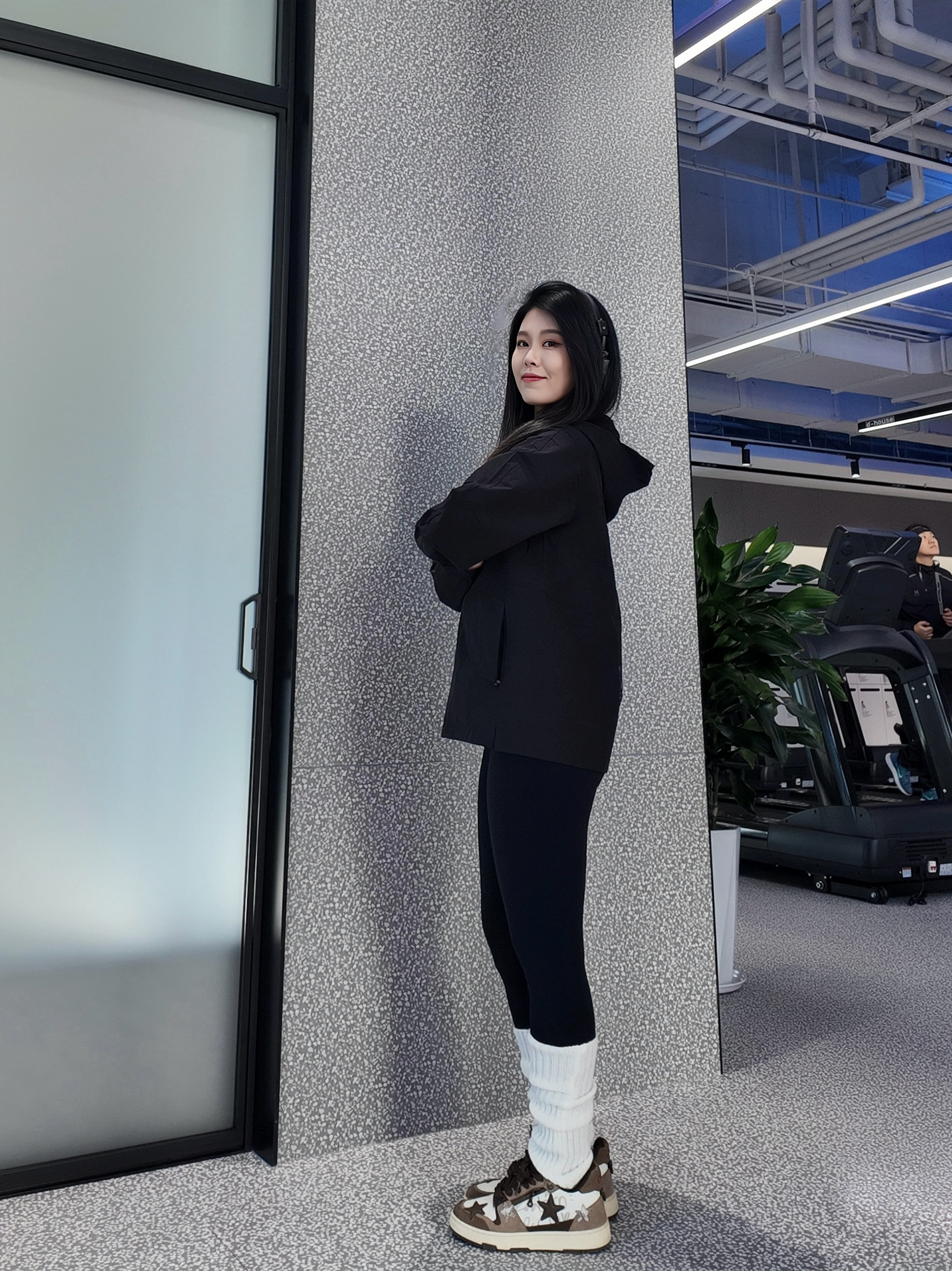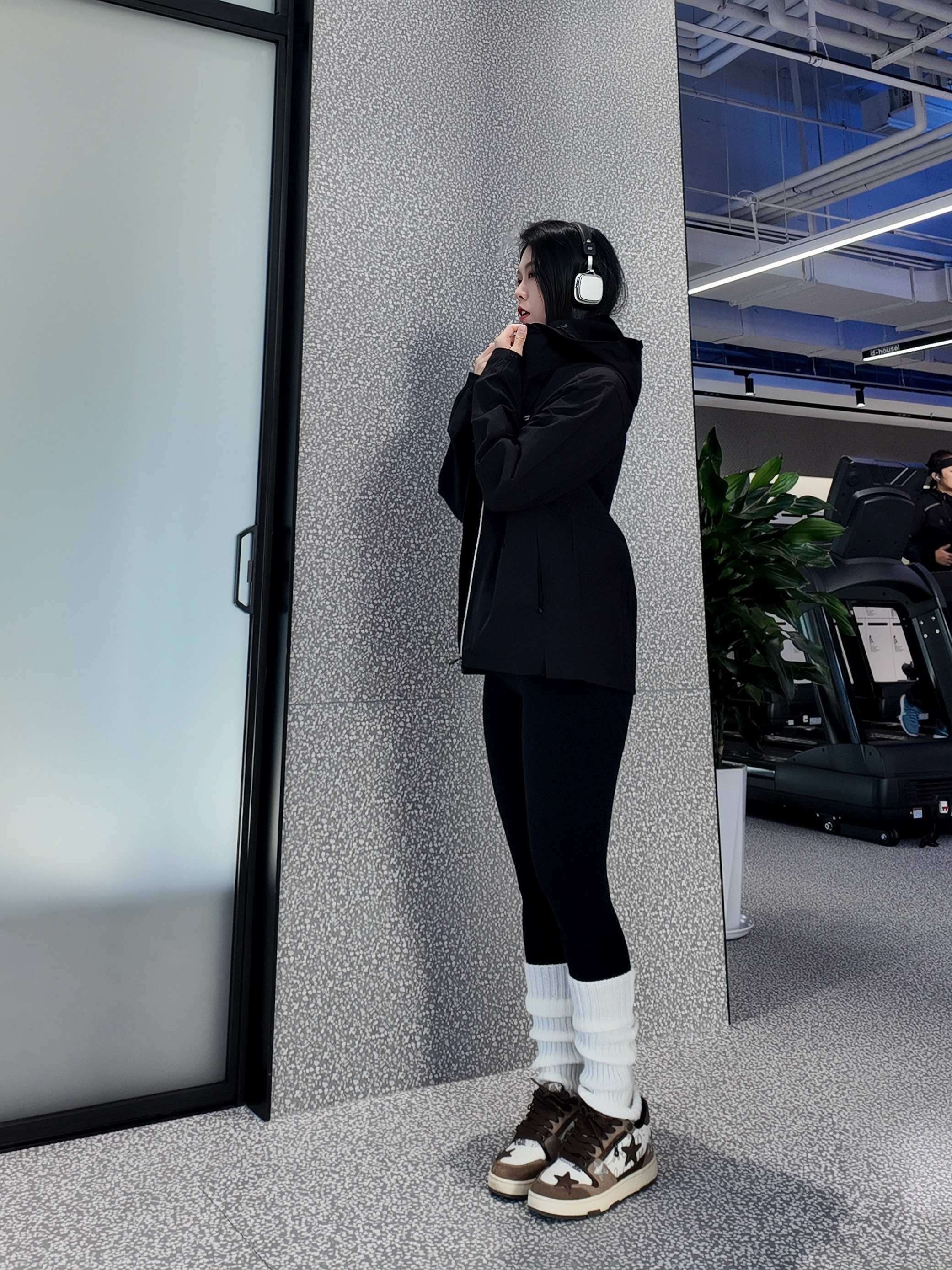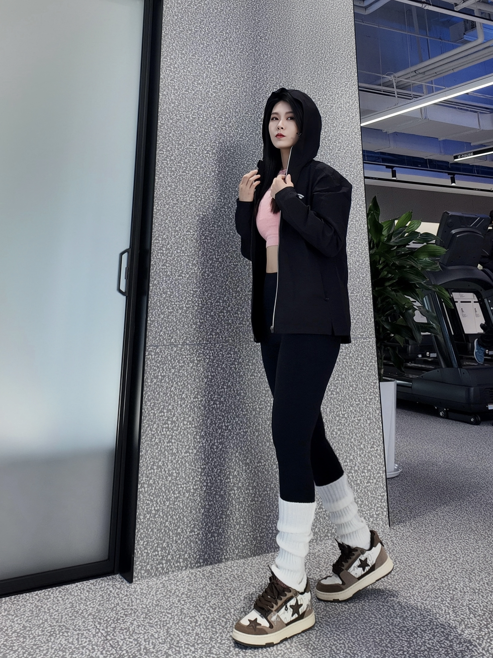 今天的All black太帅啦 沃兰迪的软壳夹克 搭配黑色打底裤 懒人冬季百搭万能的穿法 连帽超大 大头冬季也不怕吹冷风了 面料速干透气 日常运动都能穿背后反光Logo 夜间运动很安全呢~ SIZE:170/125 上身L码