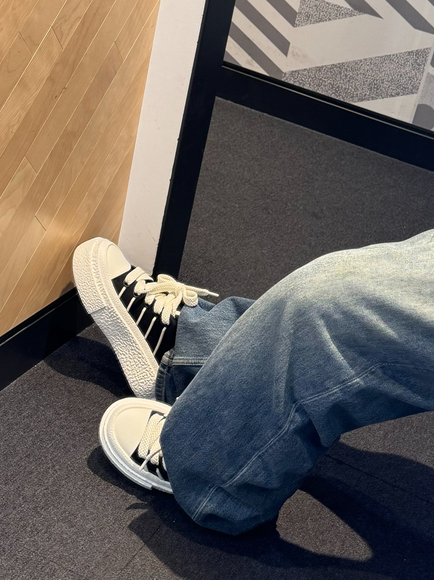 今天的下半身搭配简单帅气~ 直筒牛仔裤可搭配万物 宽松版型超显松弛 绝绝子 脚上穿服厚底板鞋 搭配宽松的裤子很合适 自带增高 秒变大穿起来也很轻便 黑白色真的爱 超百搭 #秋冬鞋柜大焕新 #最近很喜欢的鞋 #入冬主场鞋 #这双鞋我穿了很久 #我最百搭的单品 #这鞋细节太加分 #穿这双才显高显瘦 #过冬保暖术 #一脚踏入冬 #人人都是鞋类博主