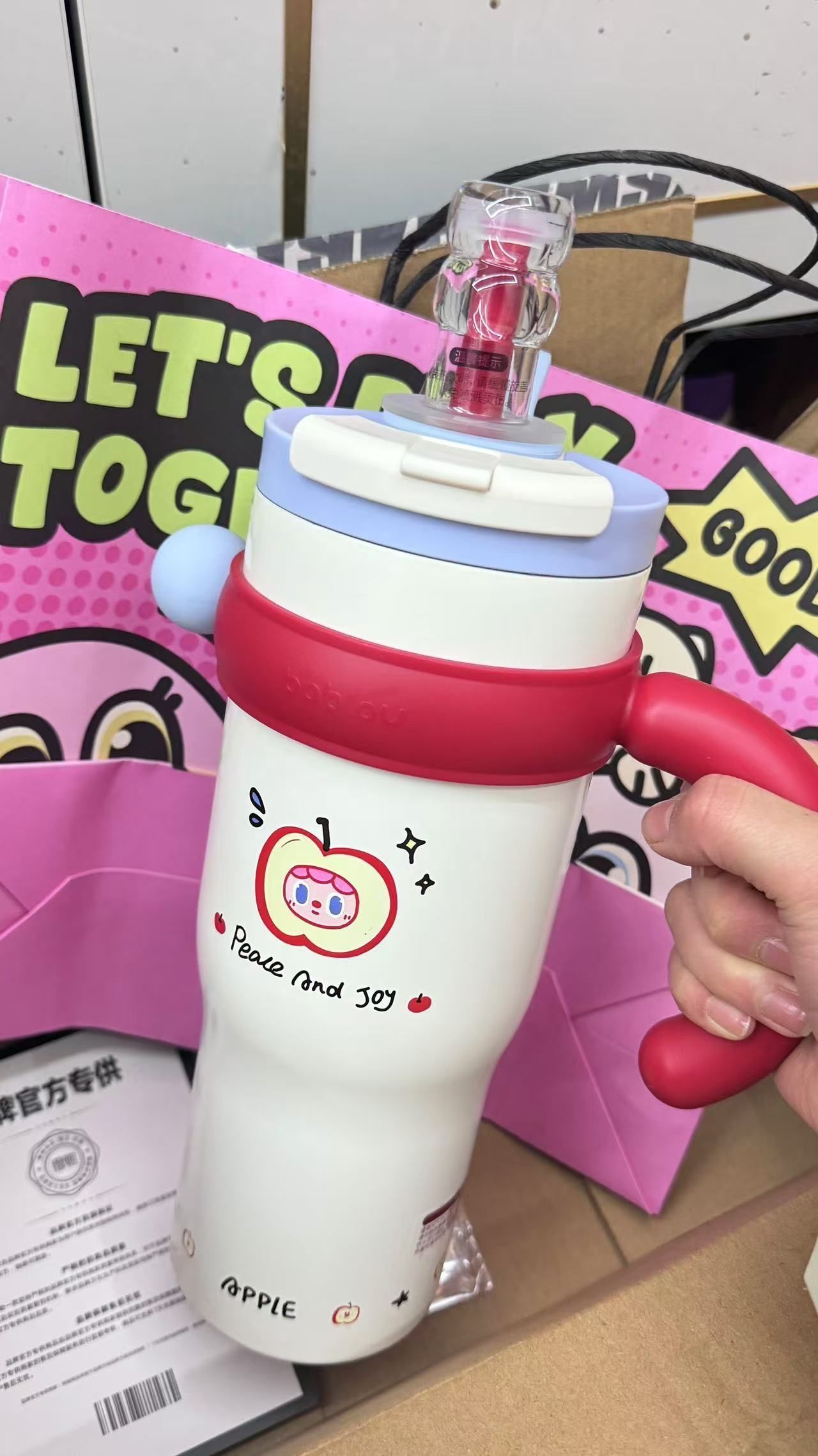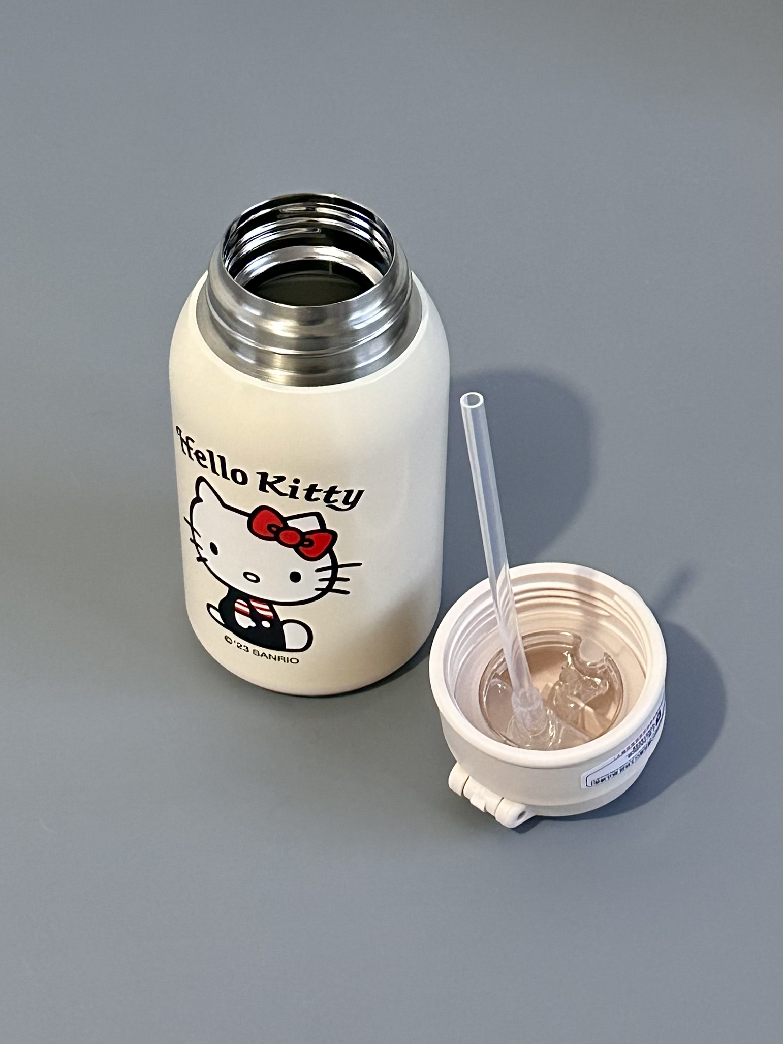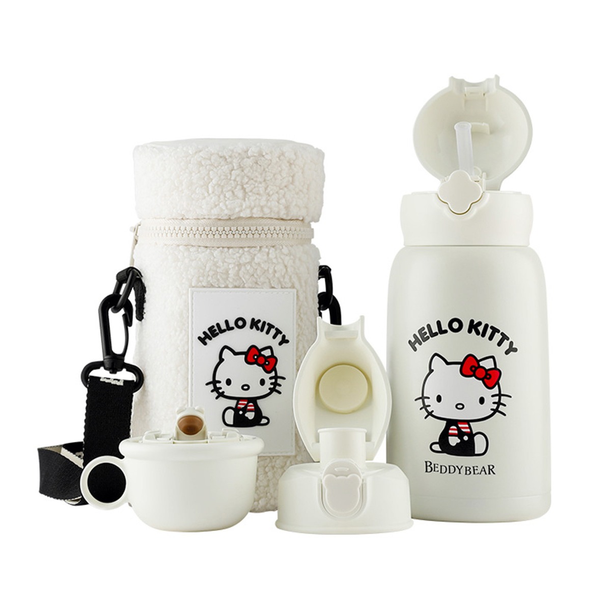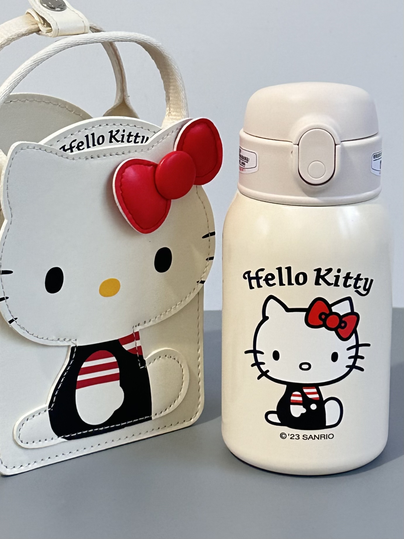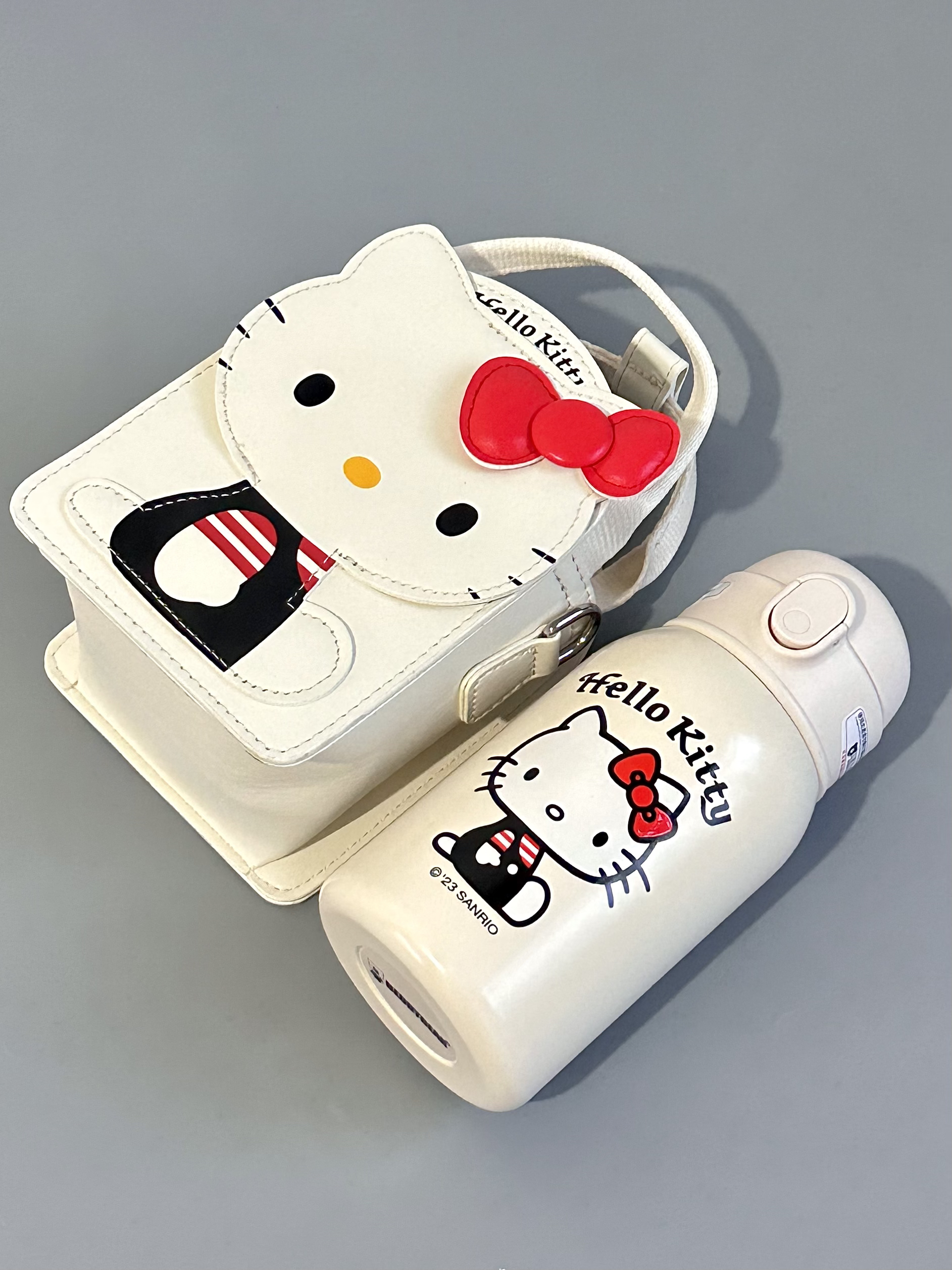 是Hello kitty 耶~ 杯具熊你是懂女孩子喜欢什么的 Kitty 的保温杯用来喝水好幸福 吸管杯+两个盖子 还有配套的小包包 可以斜挎也可以手提 拿来当圣诞礼物真蛮不错的