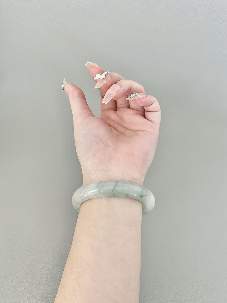 戴了很久的玉镯 真的太喜欢了 色清透淡雅,像山间清泉 而且质地温润细腻,摸起来特别舒服。上手超显白 日常搭配衣服超绝,随便一戴就感觉气质拉满,爱了爱了