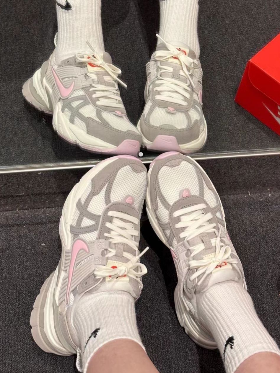 去年上半年推出的 Nike V2K Run 鞋款设计上借鉴了千禧年间运动鞋的造型风格,鞋身采用大面积网眼材料制作,辅以 3M 反光材质点缀细节,散发出浓郁复古气质。宽大的网眼鞋面和厚实的充气鞋底融入了Y2K时代的美学,低帮装饰现在注入了春天的亮粉色。整体还是蛮有亮点的,且脚感舒适!