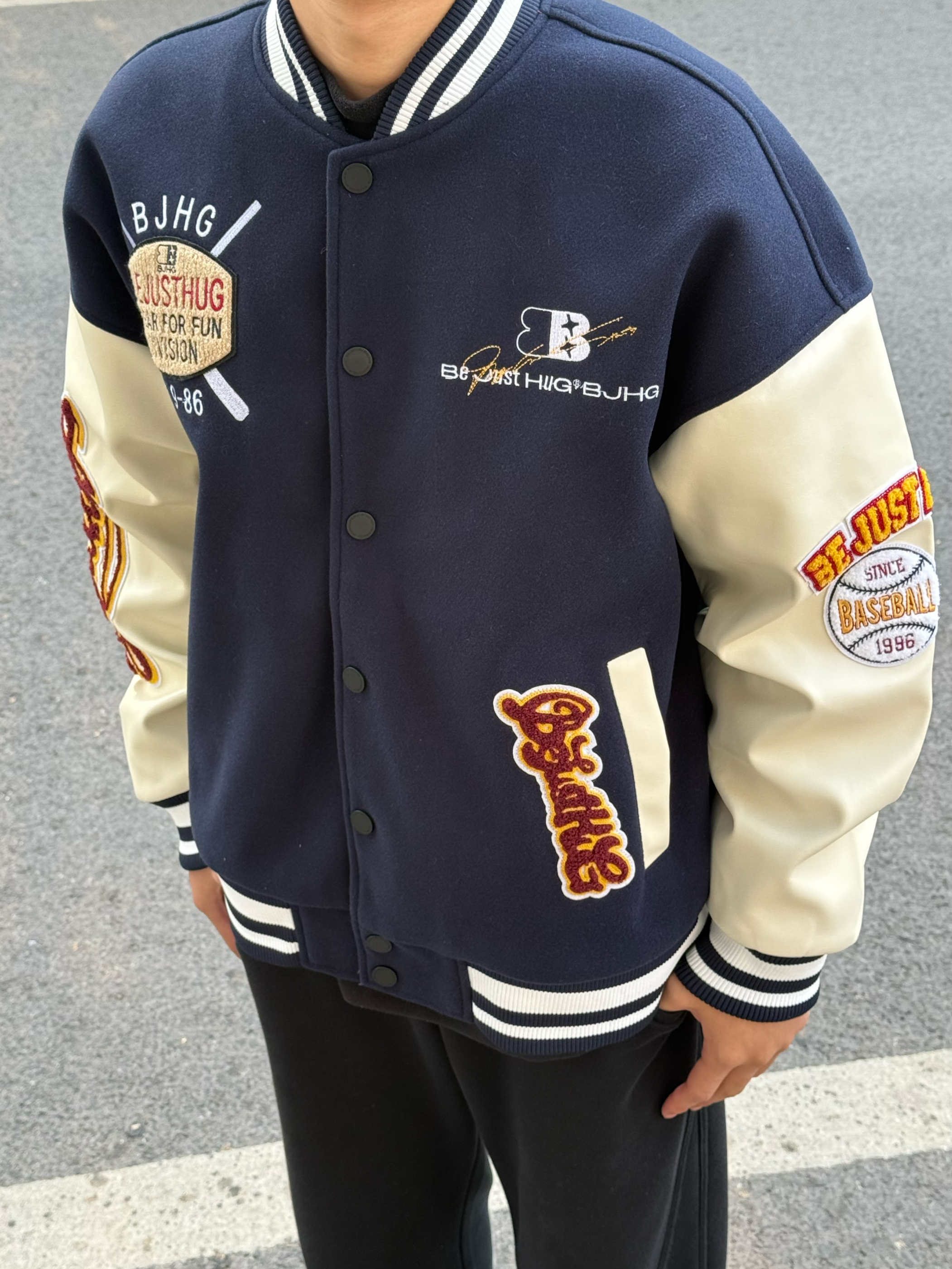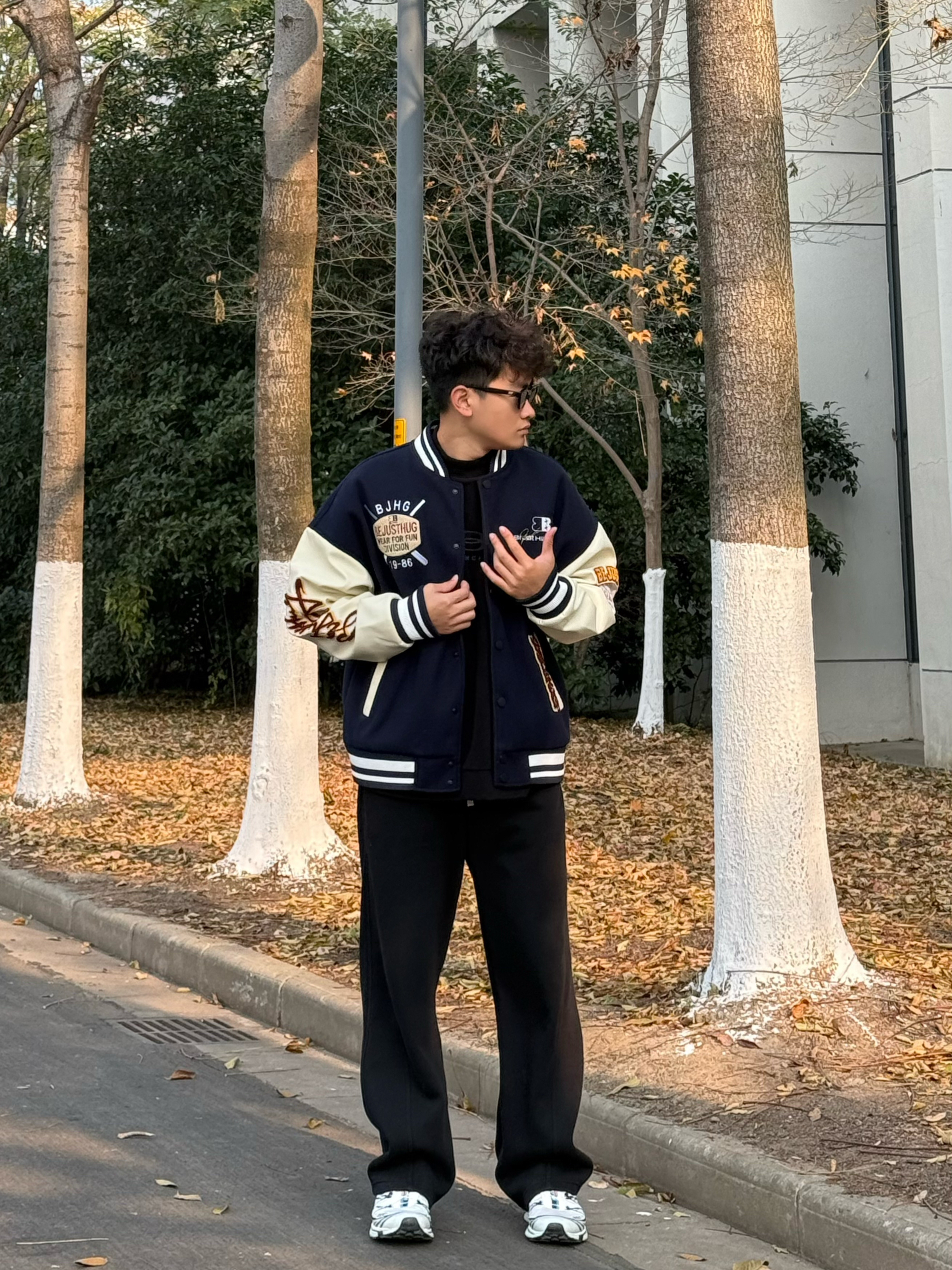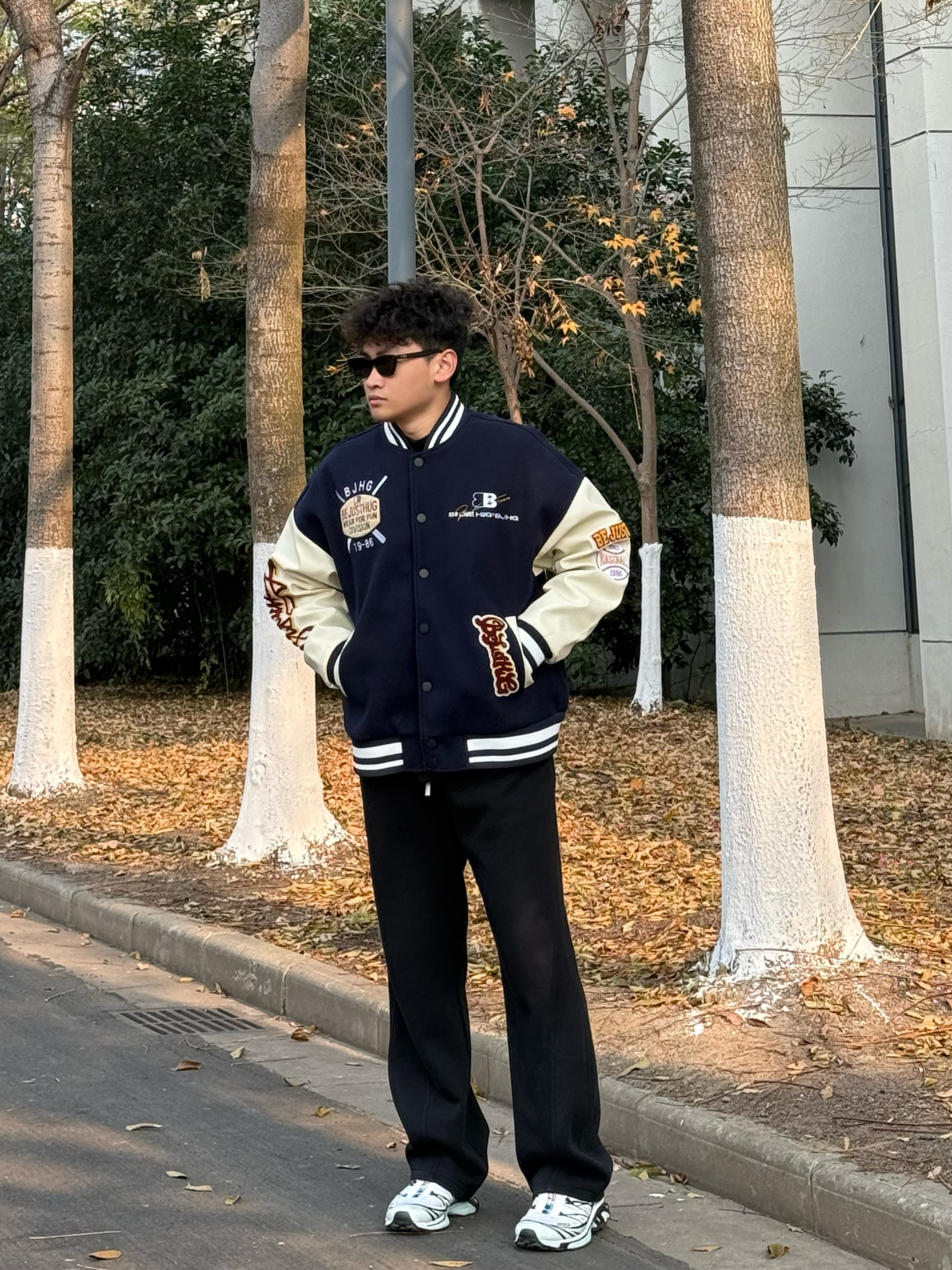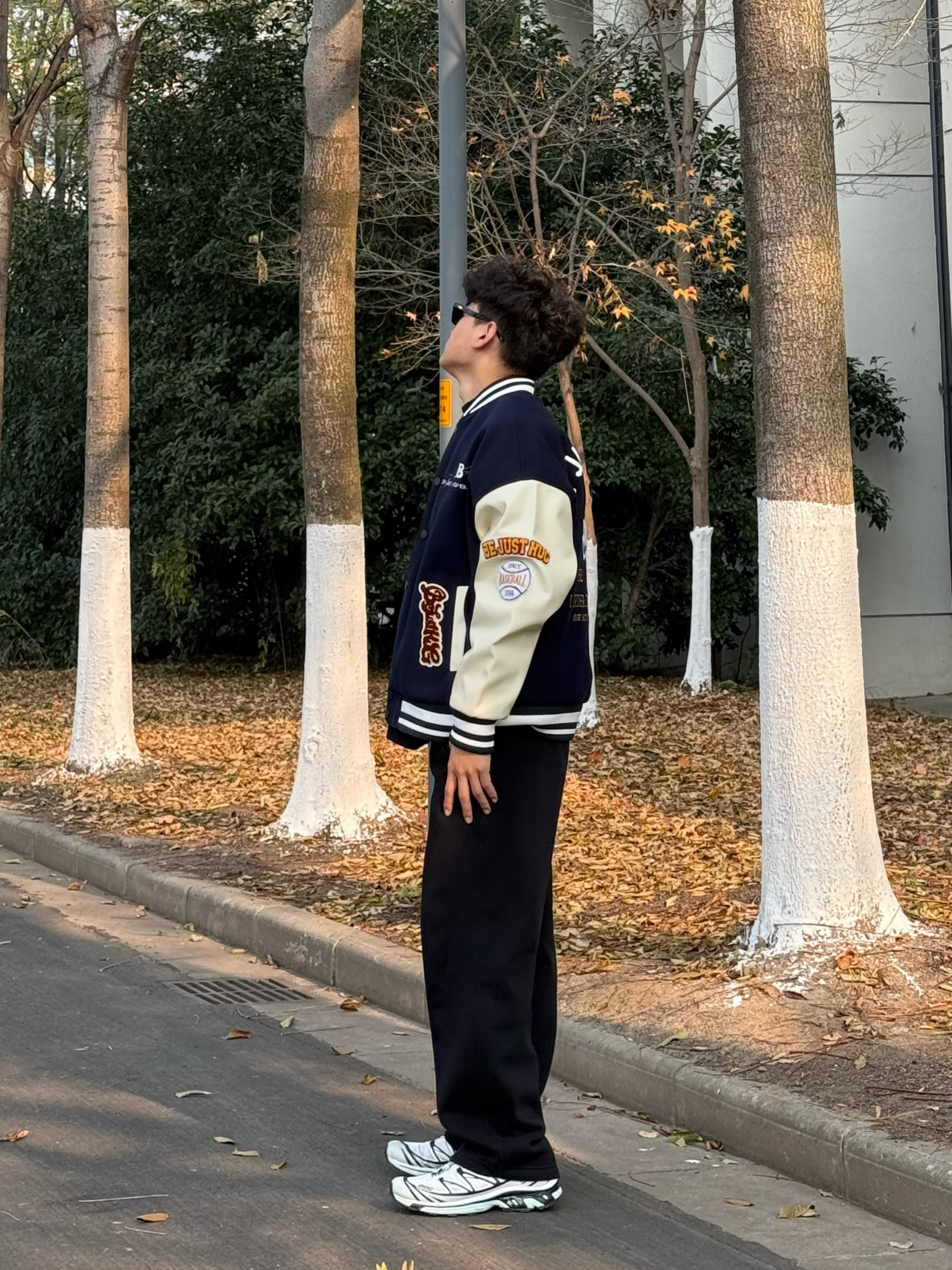 马上要去约会了好紧张 纠结了半天不知道怎么穿 来帮我看看👀这套怎么样 上衣一件藏青色白色的撞色棒球服 裤子一条黑色的直筒卫裤 鞋子是salomon xt6 这一套怎么样呢❓❓❓