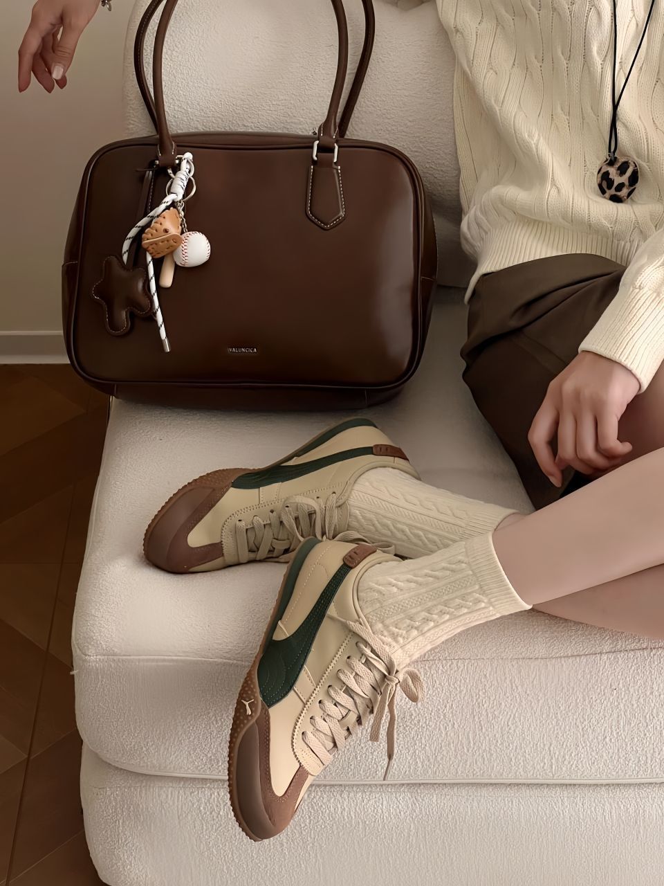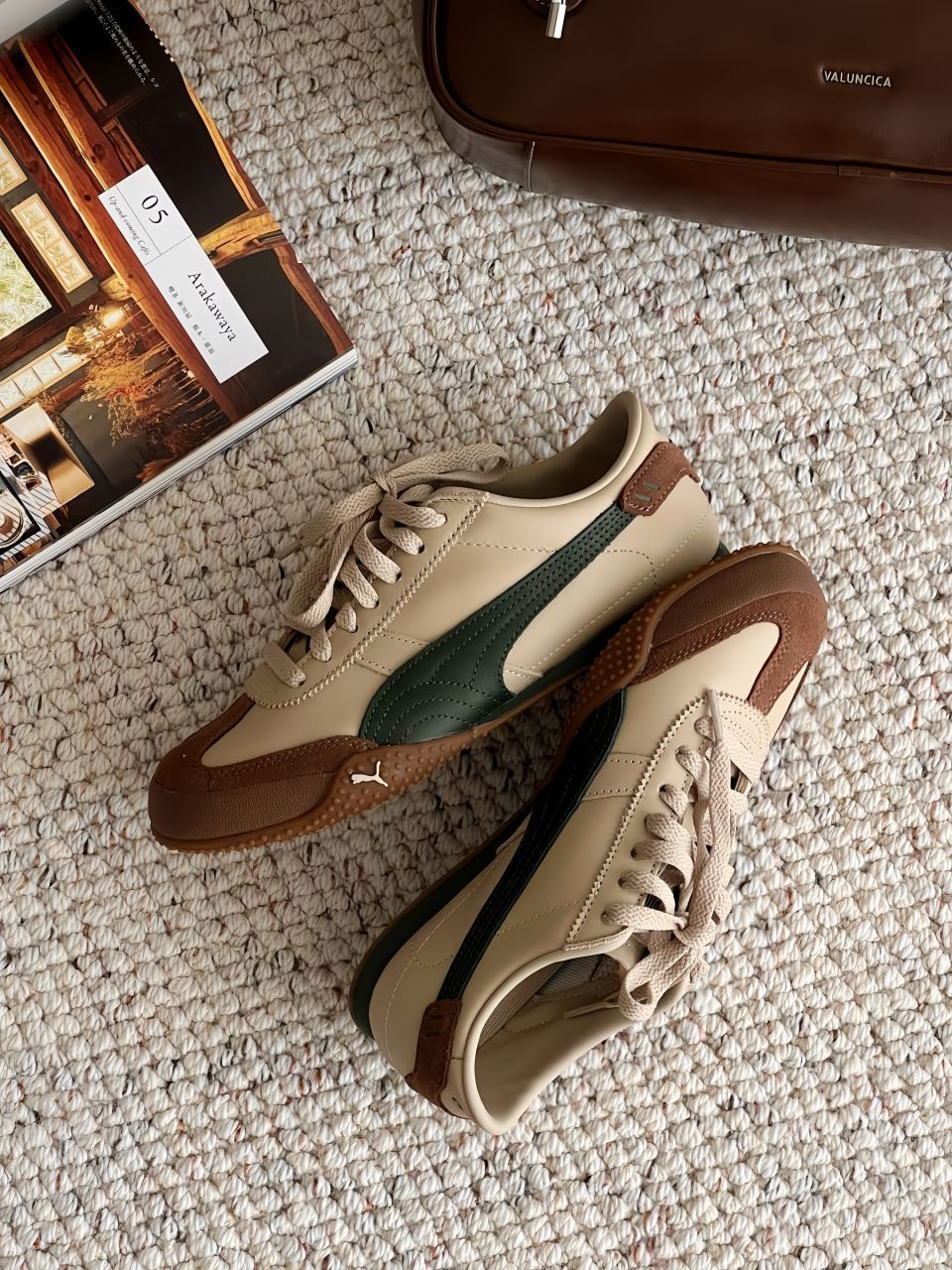 Puma Bella小绿棕 兼具复古气质与现代时髦元素 鞋侧的金属彪马小logo 既时尚又不失俏皮 大底结构+凹凸颗粒增加了防滑性和抓地力 下雪也不怕滑倒啦 Hpuma Hpumabella