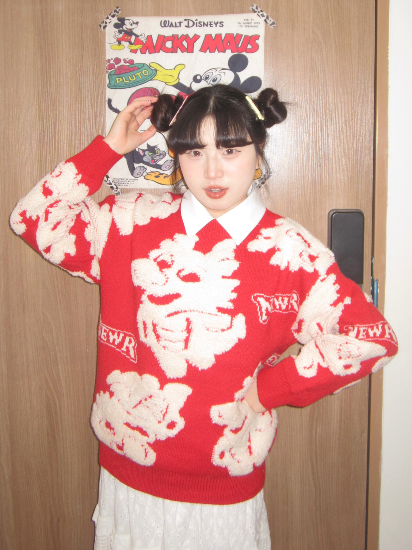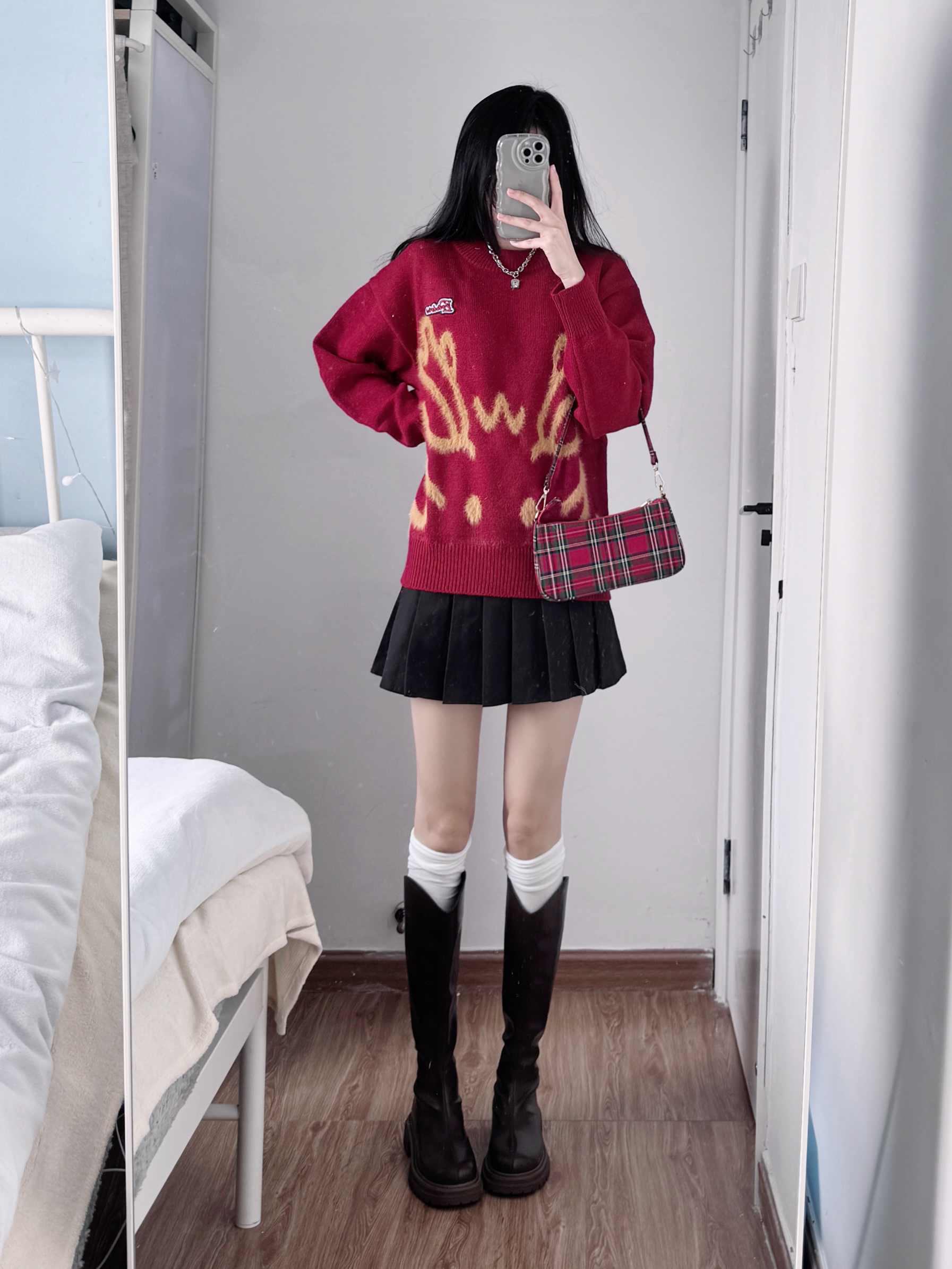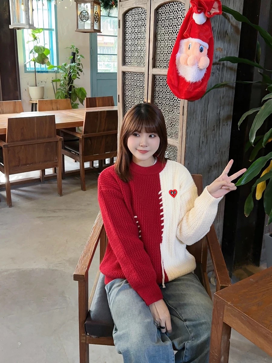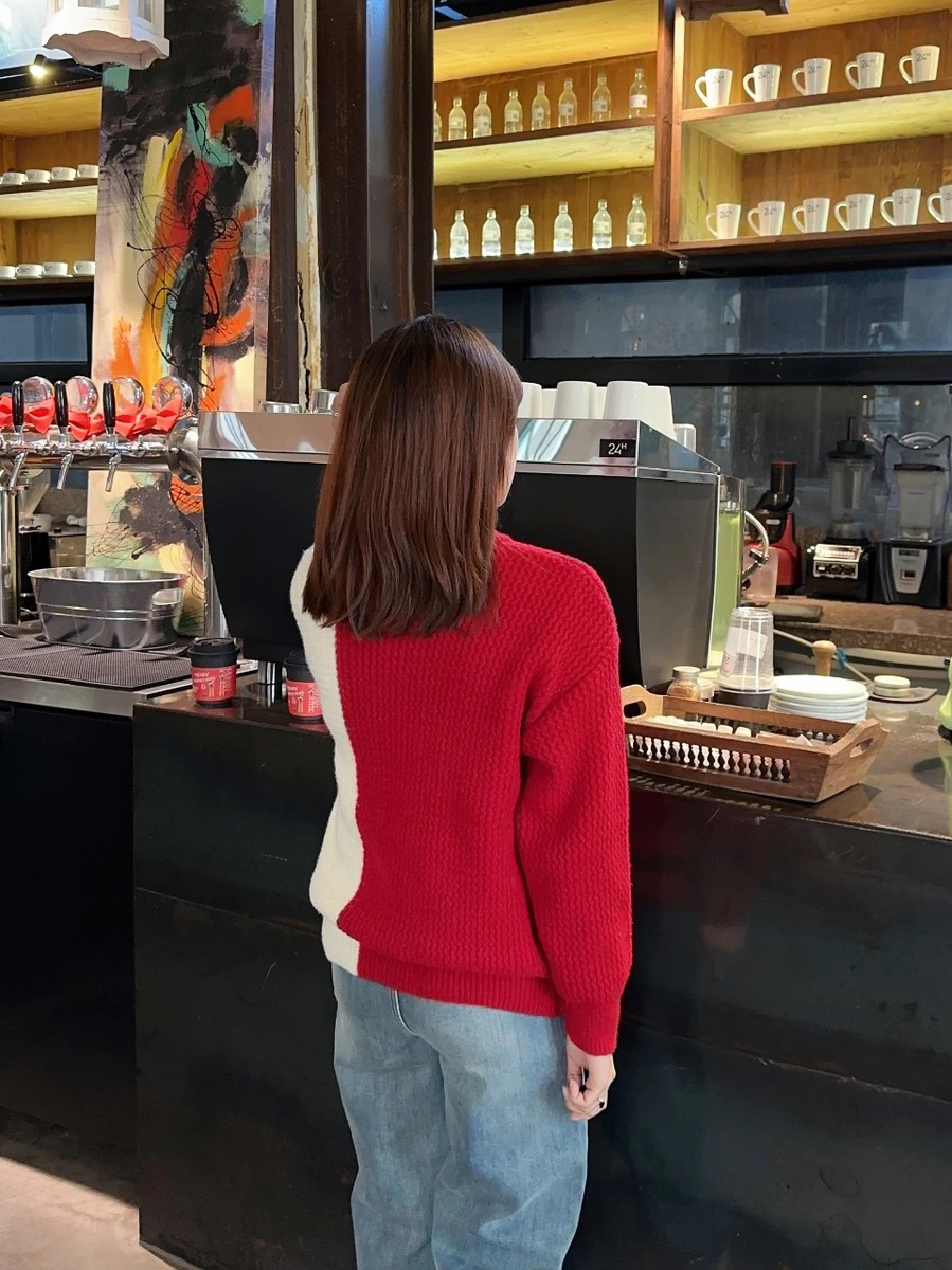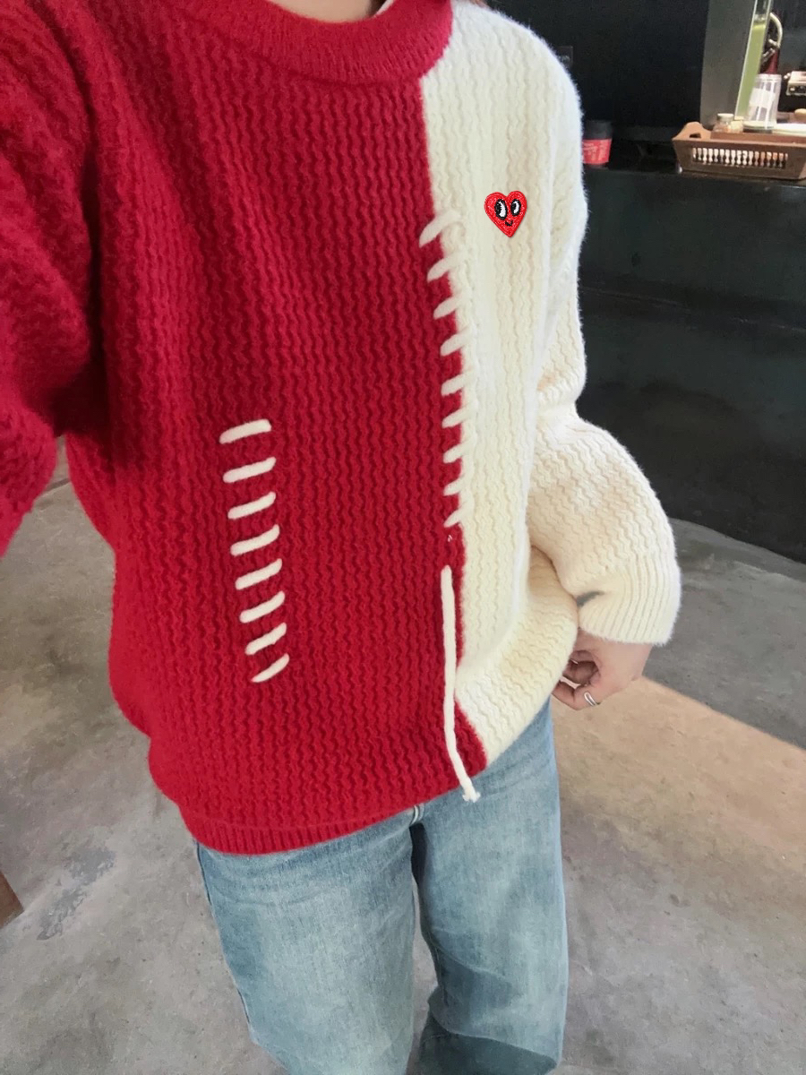 新年还得是穿红色的啦,喜庆好彩头!我上身的是查尔斯桃心撞色圆领毛衣,面料很舒适,软软糯糯的,红色调又很提气色,自带暖冬的氛围,拍照也很出片,我已经在期待新年啦!