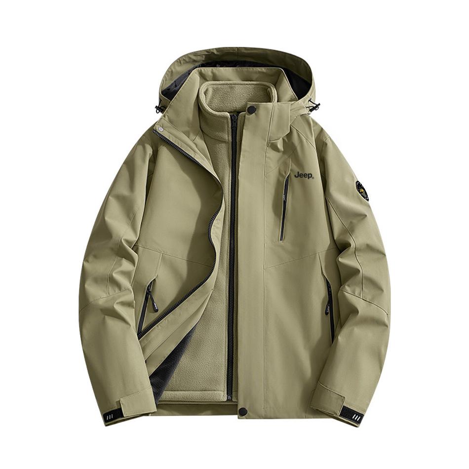 本篇笔记关联了Jeep/吉普 三合一摇粒绒可拆卸抓绒内胆防寒防风防泼水拼接连帽加绒风壳冲锋衣 P843MWJ2082 军绿等商品,为用户提供真实的使用体验和购买参考。