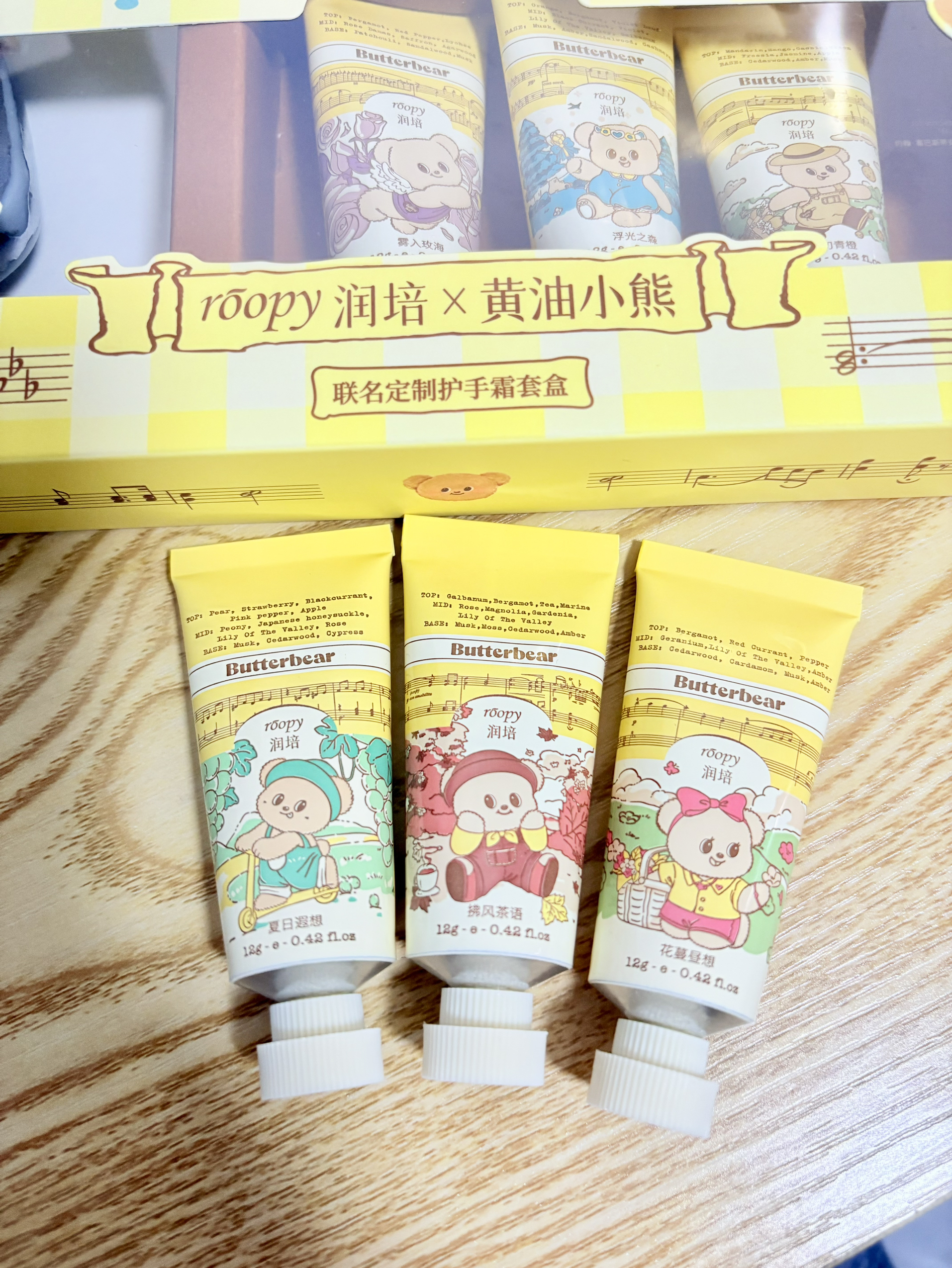 本篇笔记关联了【黄油小熊联名】roopy/润培 护手霜限定礼盒 香氛保湿防裂滋润舒缓持久留香 乐境系列联名12g*6等商品,为用户提供真实的使用体验和购买参考。