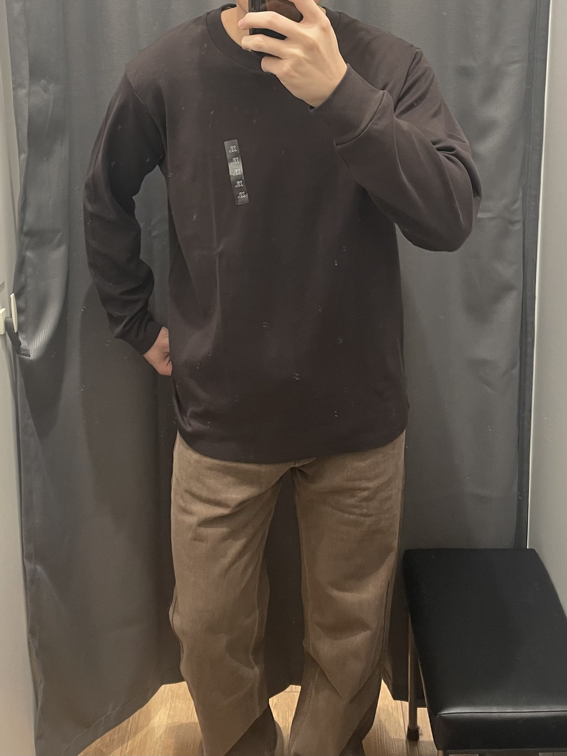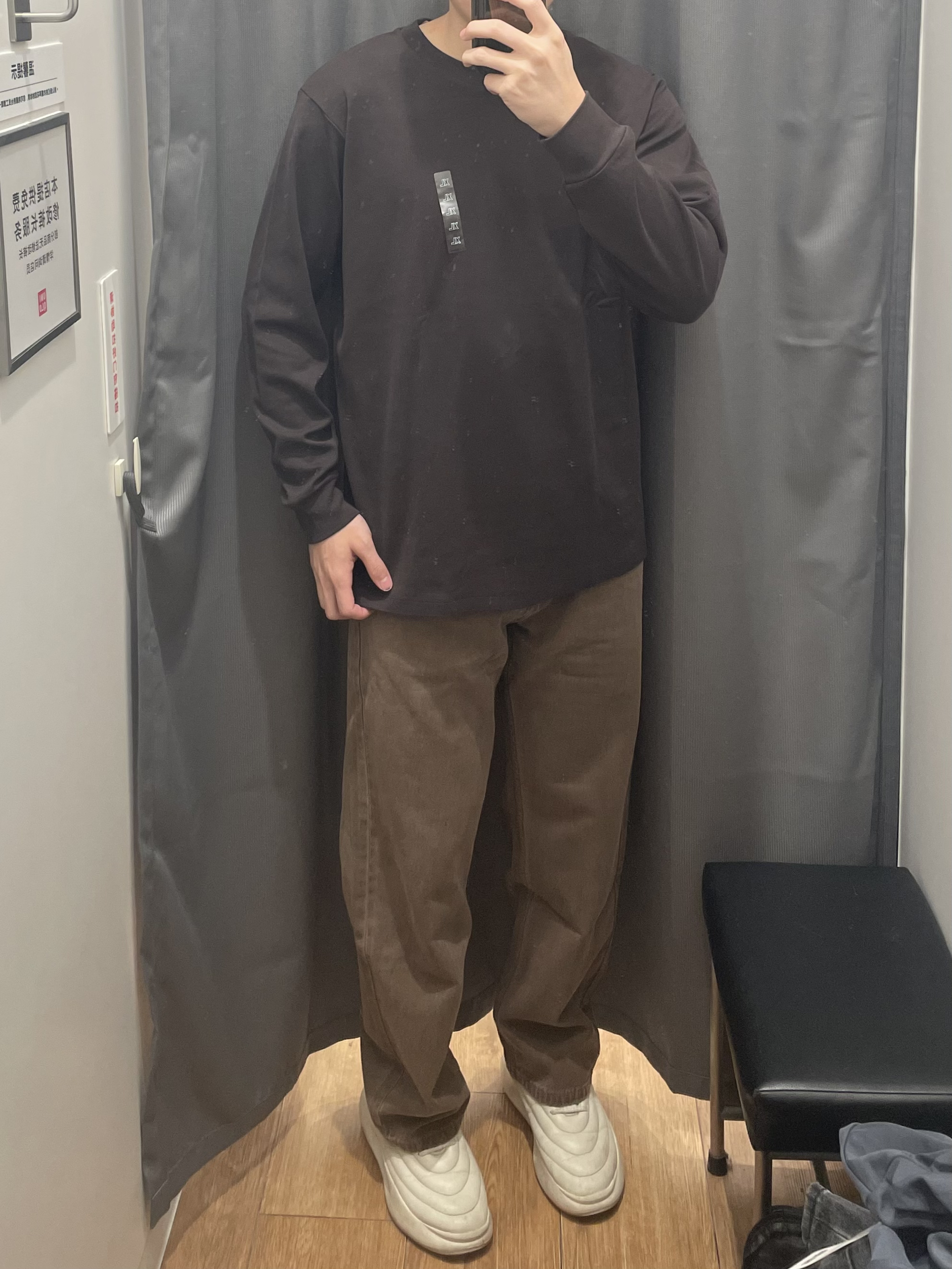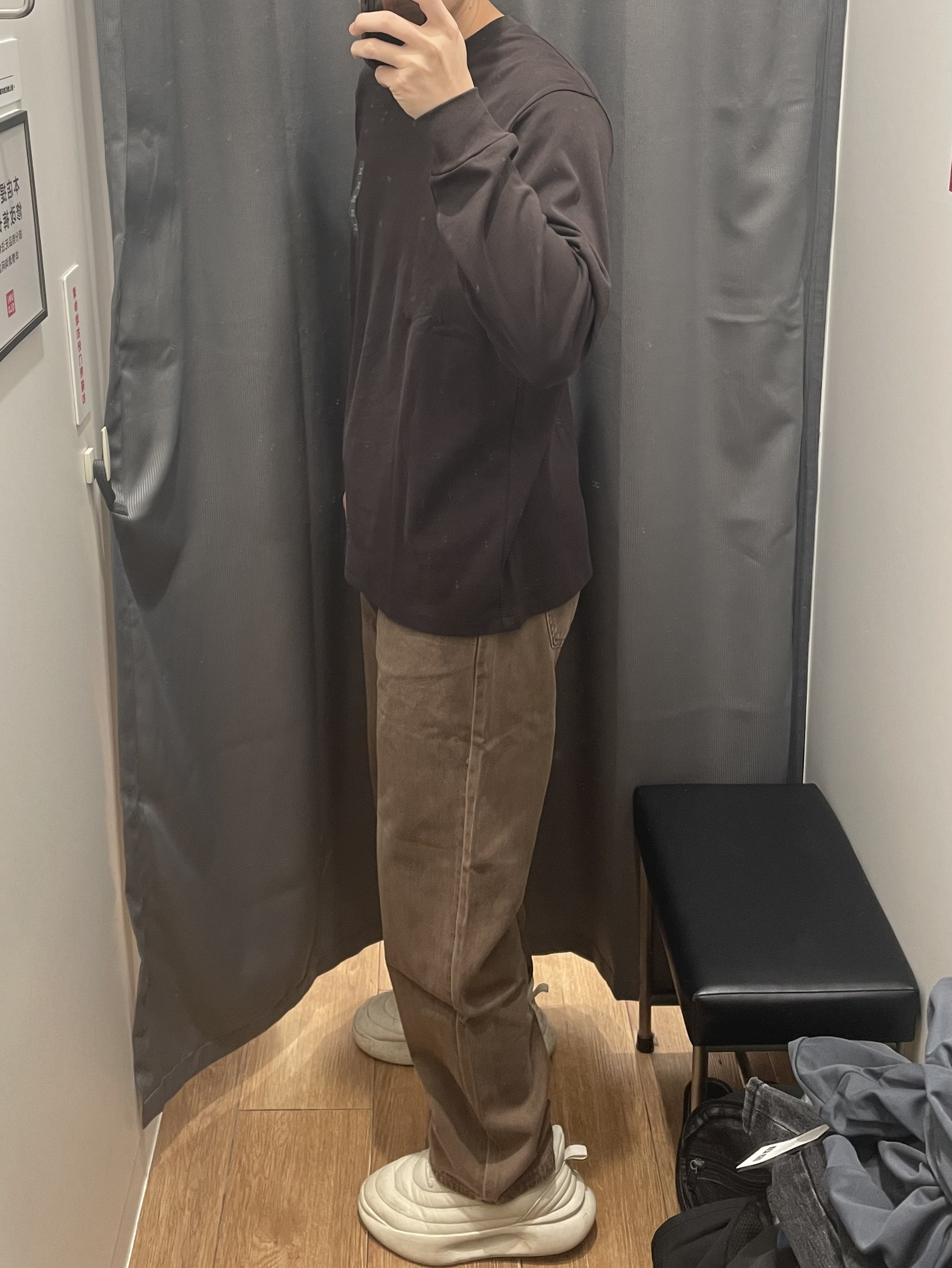 优衣库同色系穿搭怎么能不好看呀!! 深卡其牛仔裤 复古系!校园风满满‼️ 搭配优衣库的深棕色长袖!同色系公式穿搭真的好可!!