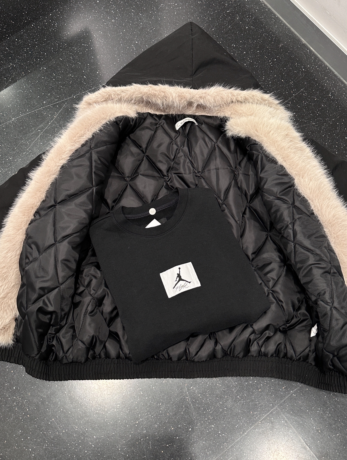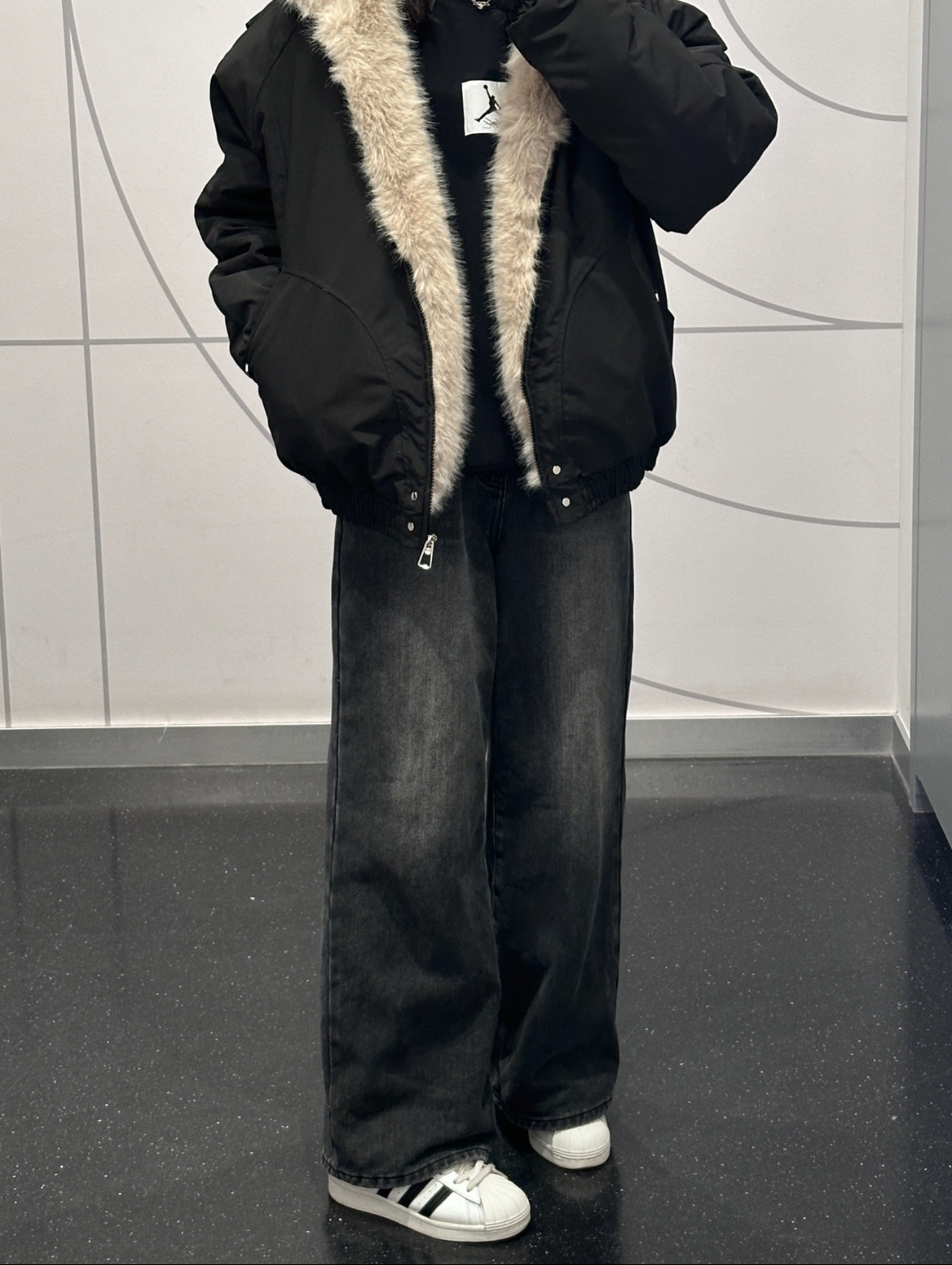 入冬也要All Black! 今年秋冬很多人穿的座山雕毛绒外套我也来试试! DCORNILOT 这一款还不错滴,上身很确实帅! 大毛领和和毛绒帽子好有秋冬氛围感呀厚实的加棉款式,复古又保暖~ 里面搭件aj简约复古卫衣就很有美式复古酷飒那味啦!是我喜欢的