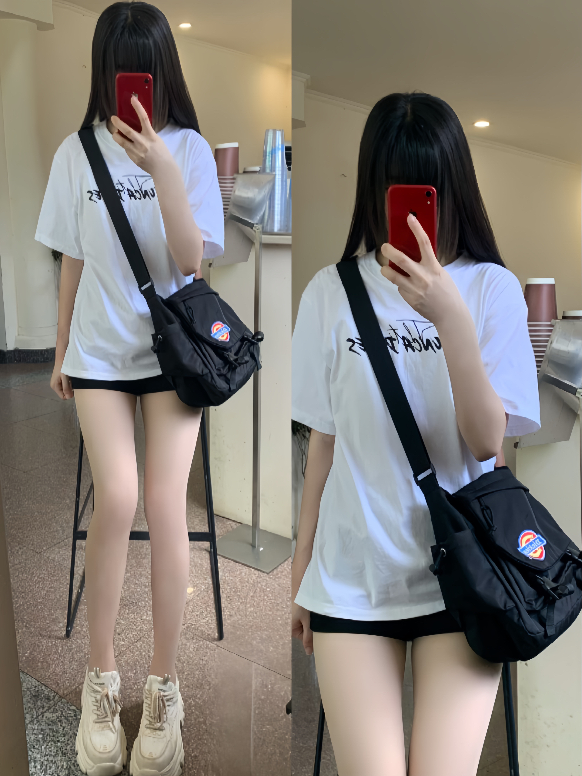 今日份拍照📷ootd 黑色长款羽绒服🧥➕短裤➕黑色贝壳板鞋🐚 介款羽绒服上身噂嘟很暖和 内搭随便穿敲省事 搭配同色系的贝壳🐚板鞋 上jio软乎乎嘟 日常敲百搭 什么风格都可以驾驭👌 整体穿搭都是男女同款的喔 还可以当情侣装👫