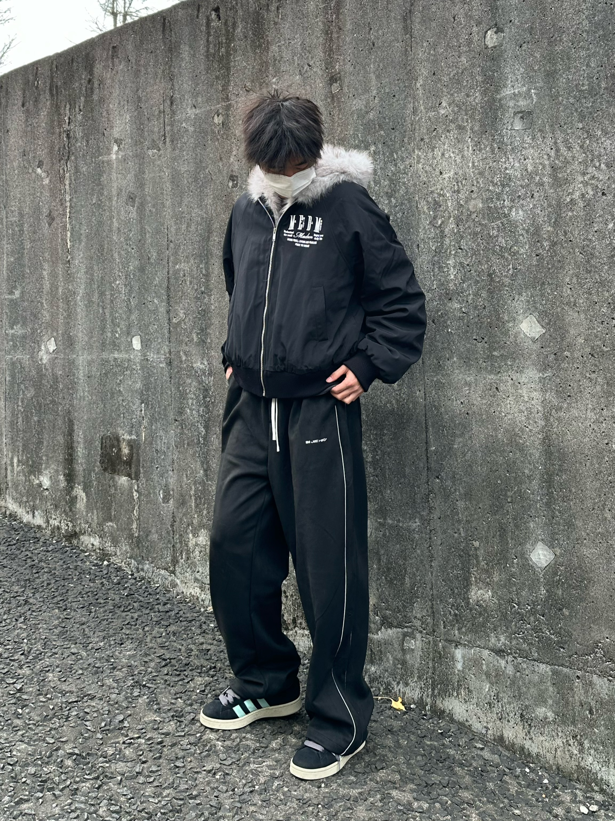 👔 MEDM FW24 座山雕加绒美式连帽棉服 座山雕这个版型不好都不行 短宽真能显高多毛绒绒的特舒服 这件主打简约但是胸前字母是真帅 而且面料也不错冬天离不开它了 👖 BJHG 休闲长裤 👟 Adidas Campus 本人 185/75 👔 xl 👖 xl
