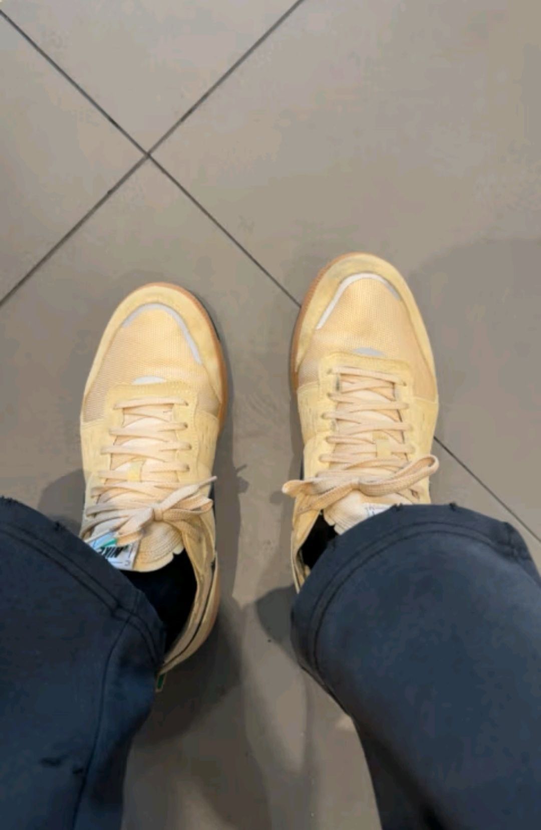 👟✨【时尚先锋必备的宝藏鞋款】✨👟 宝子们,今天要给你们分享一双让我一眼就心动的鞋子!💕 🌟【外观设计】 这双鞋的设计风格独特且充满时尚感。整体以米黄色为主色调,给人一种温暖又复古的感觉。鞋面材质看起来质感十足,搭配黑色的经典品牌logo,显得格外醒目。鞋底边缘采用了橙色的设计,与米黄色鞋面形成鲜明对比,增加了视觉上的层次感。鞋帮处还有绿色的小细节点缀,如同画龙点睛一般,让整双鞋在简约中透...