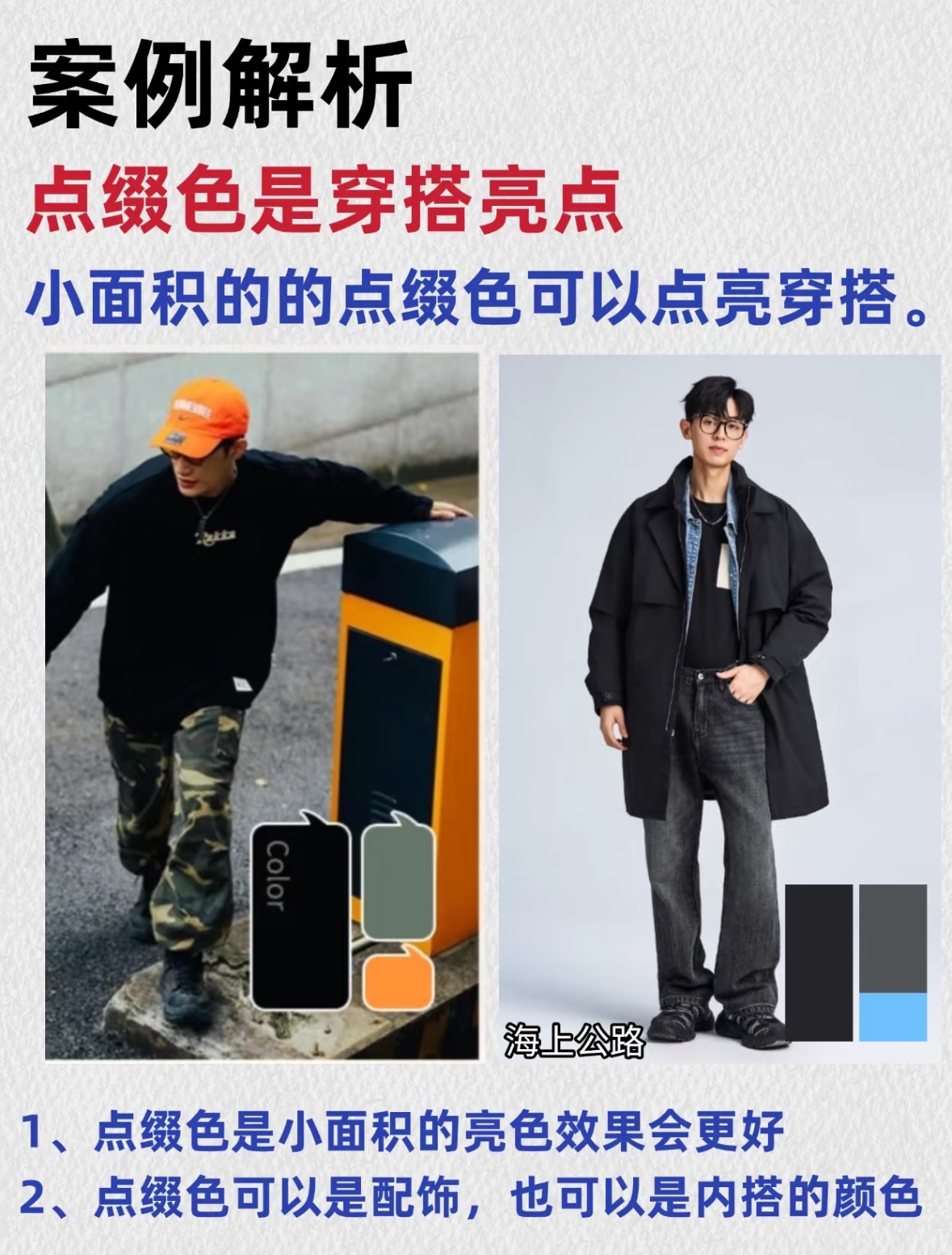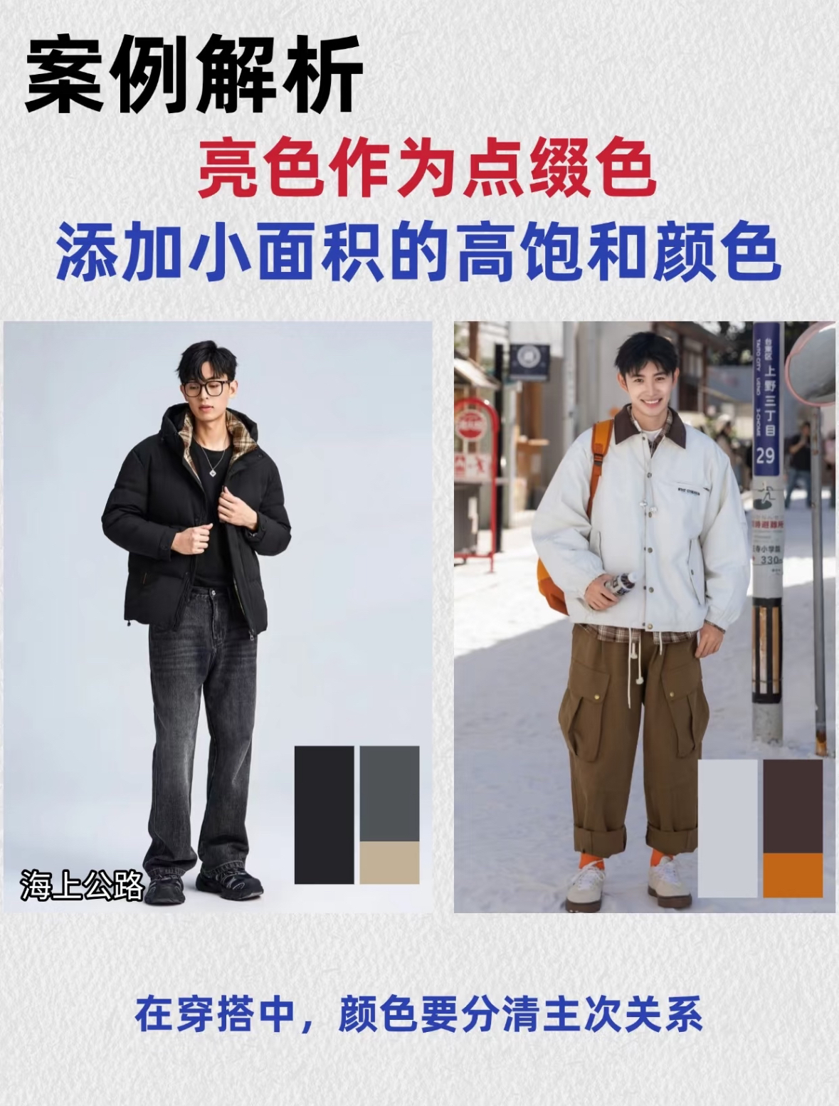 宝子们,今天来给各位帅气的小哥哥们分享超实用的 361 黄金配色法,让你轻松变身时尚焦点! . 💥什么是 361 黄金配色法呢?其实很简单,就是将全身穿搭的颜色比例大致分为 3 份主色调、6 份辅助色和 1 份点缀色。 . 这样的搭配组合,既不会过于花哨,又能彰显出独特的时尚品味。😎 . 🤩学会了 361 黄金配色法,再也不用担心穿搭出错!!