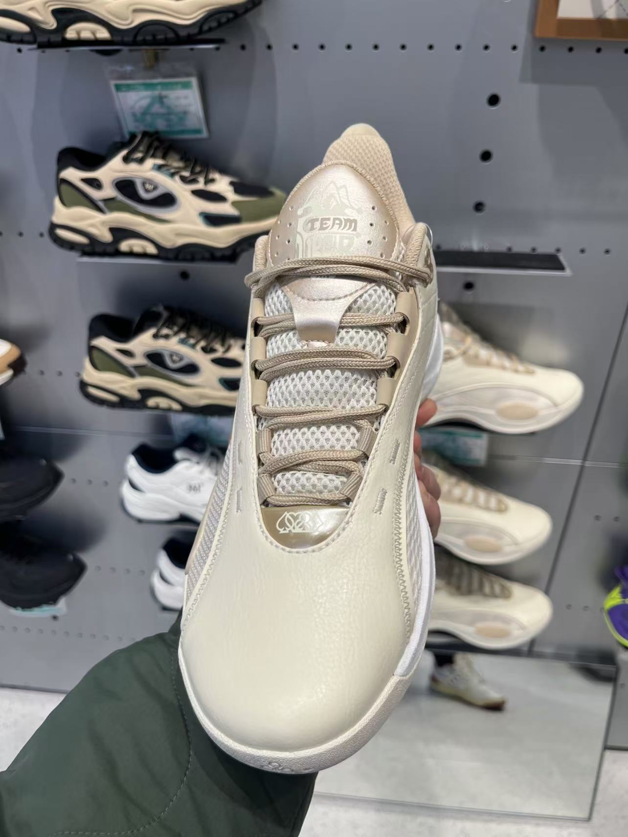 约基奇签约361后第一代签名团队鞋叫TeamJoker,鞋型设计得很圆润流畅,从鞋头上弧线一直到鞋帮,鞋跟处大块TPU,约基奇的l0go印在上面、香槟配色显得优雅高级,好像篮球场上的步伐,官方定价699,价格降到300+,考虑入手一双。😁