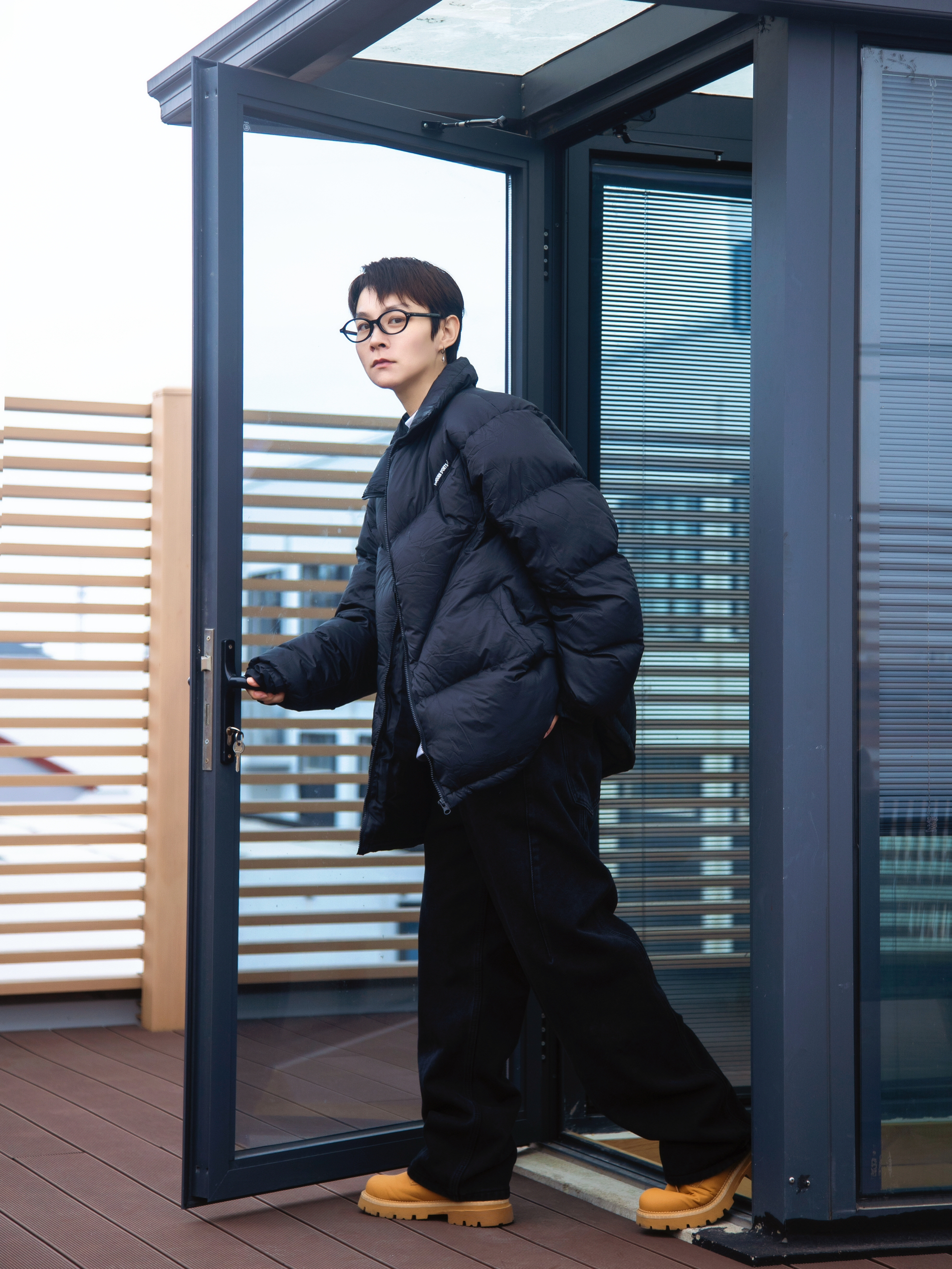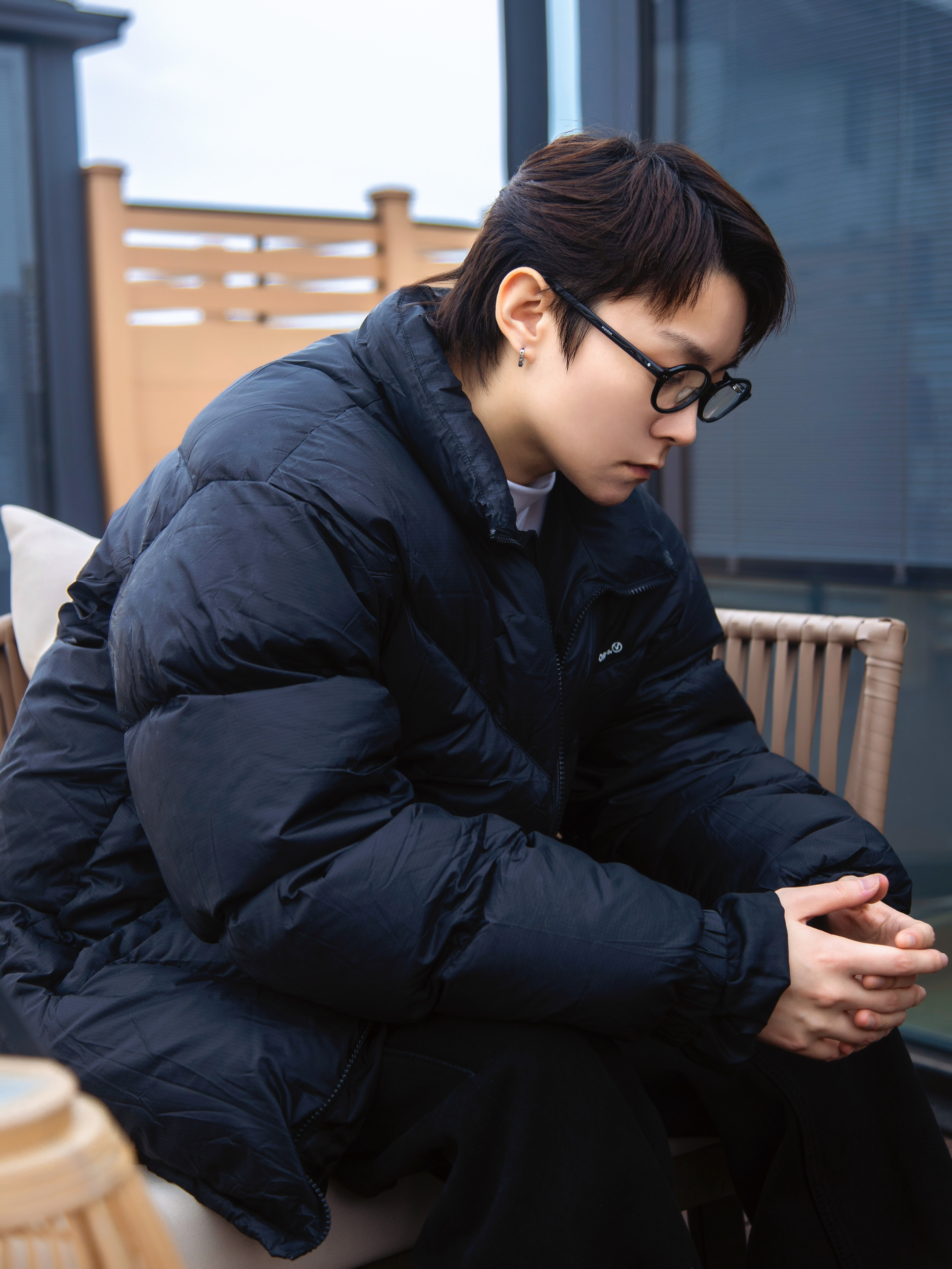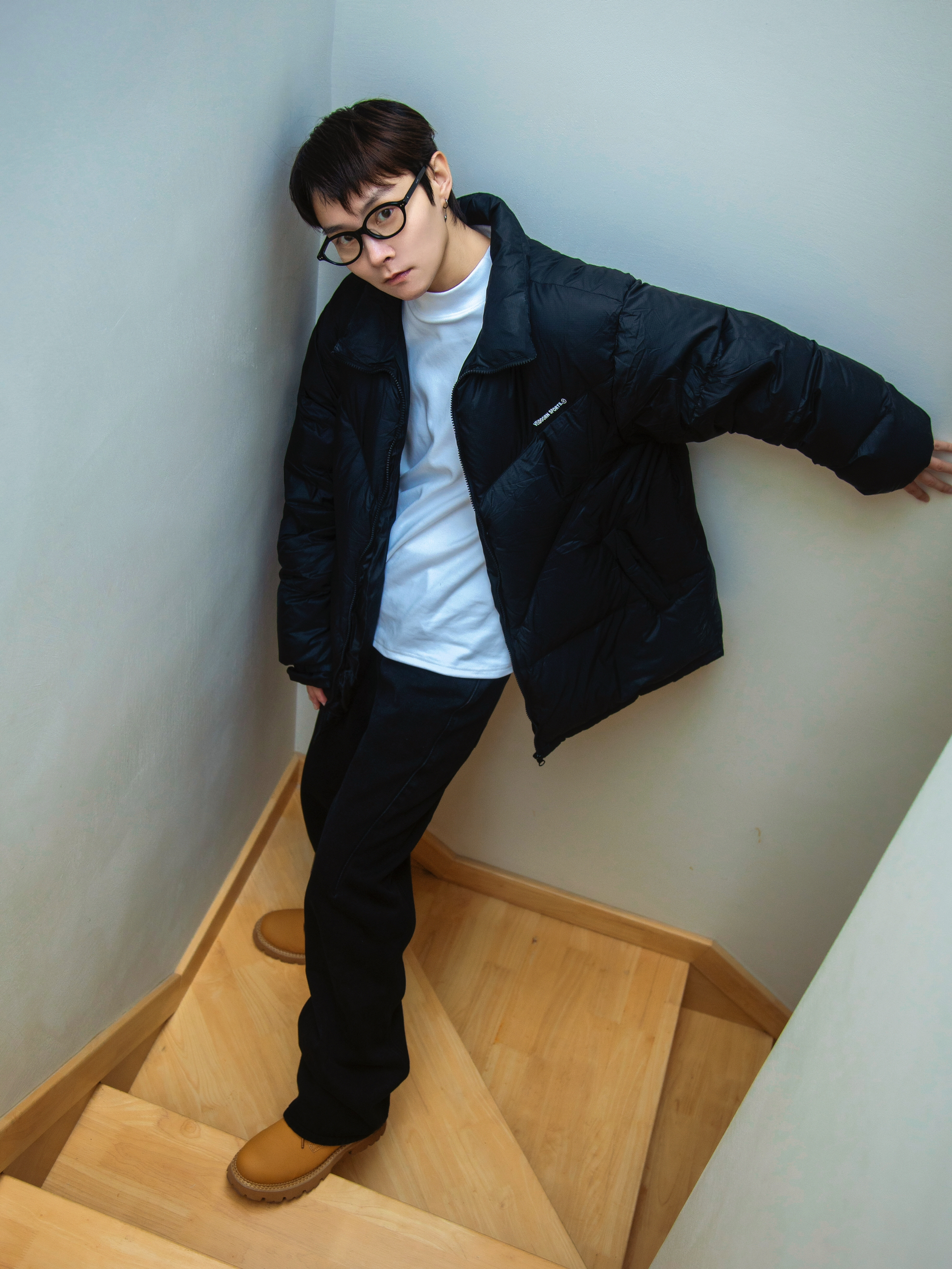 时髦上班族的穿搭 基础色不会错 白色德绒T恤打底暖和又不臃肿 外搭一件黑色羽绒服 oversize一点的版型更显街头感 搭一条黑色宽松牛仔裤 有垂感的弯刀裤腿设计显高级 摆脱打掉那就加点配饰 配一副斯文的黑框眼镜 复古小框修饰脸型提升气质 蛮轻巧的戴起来不累耳朵 点缀一下 从书呆子变身韩系 这一套搭配好看不费力 适合时髦的早八人