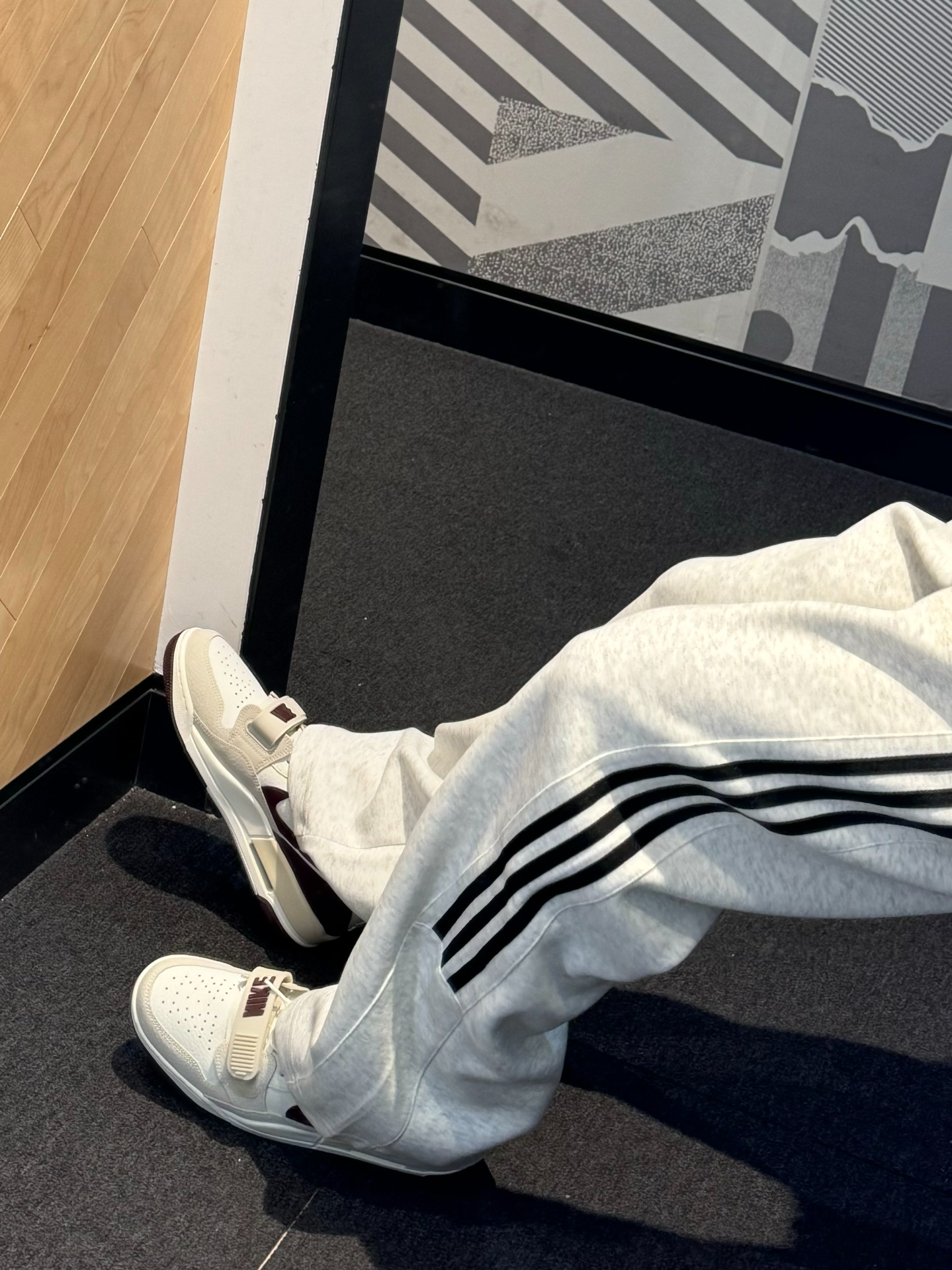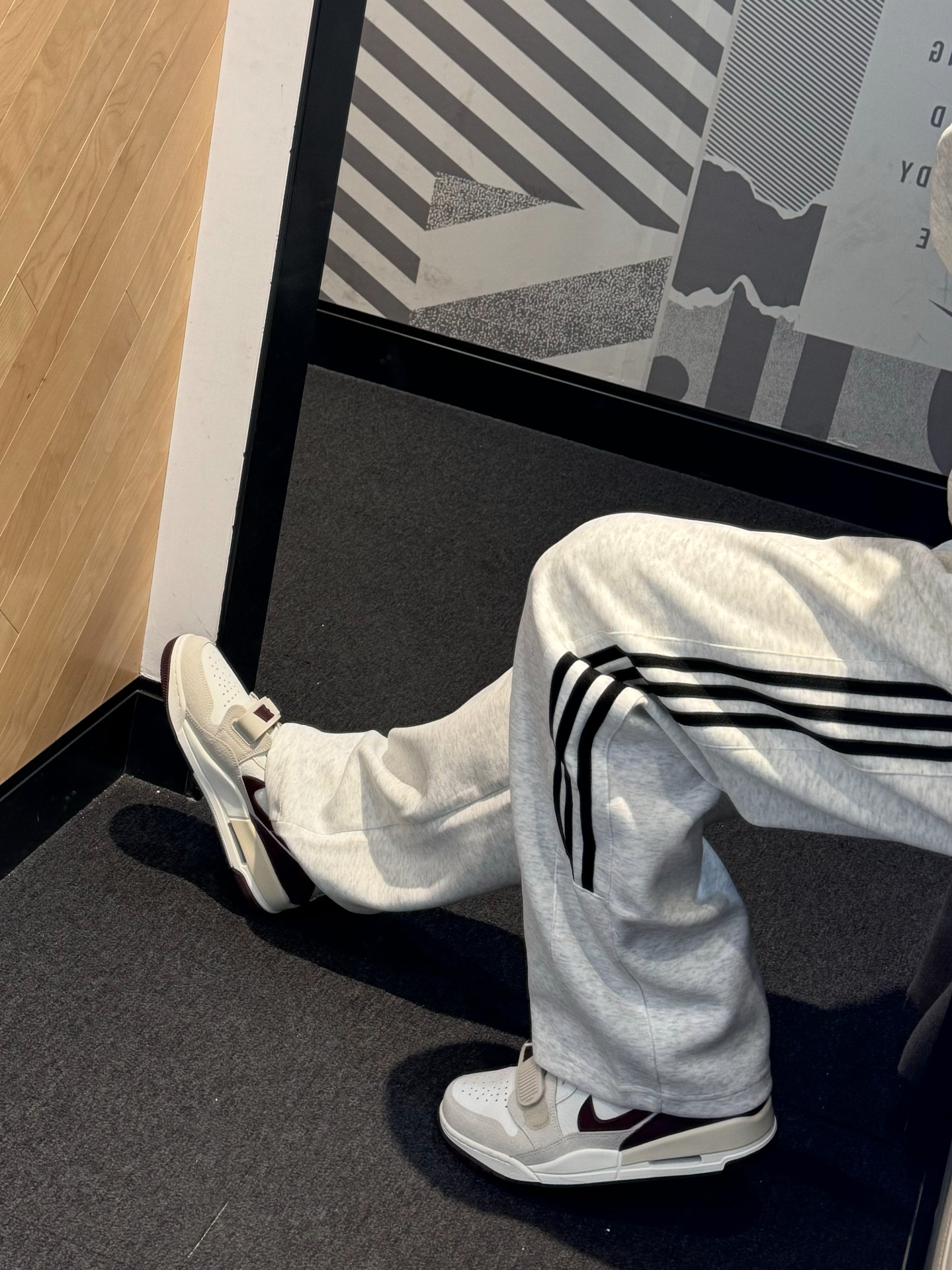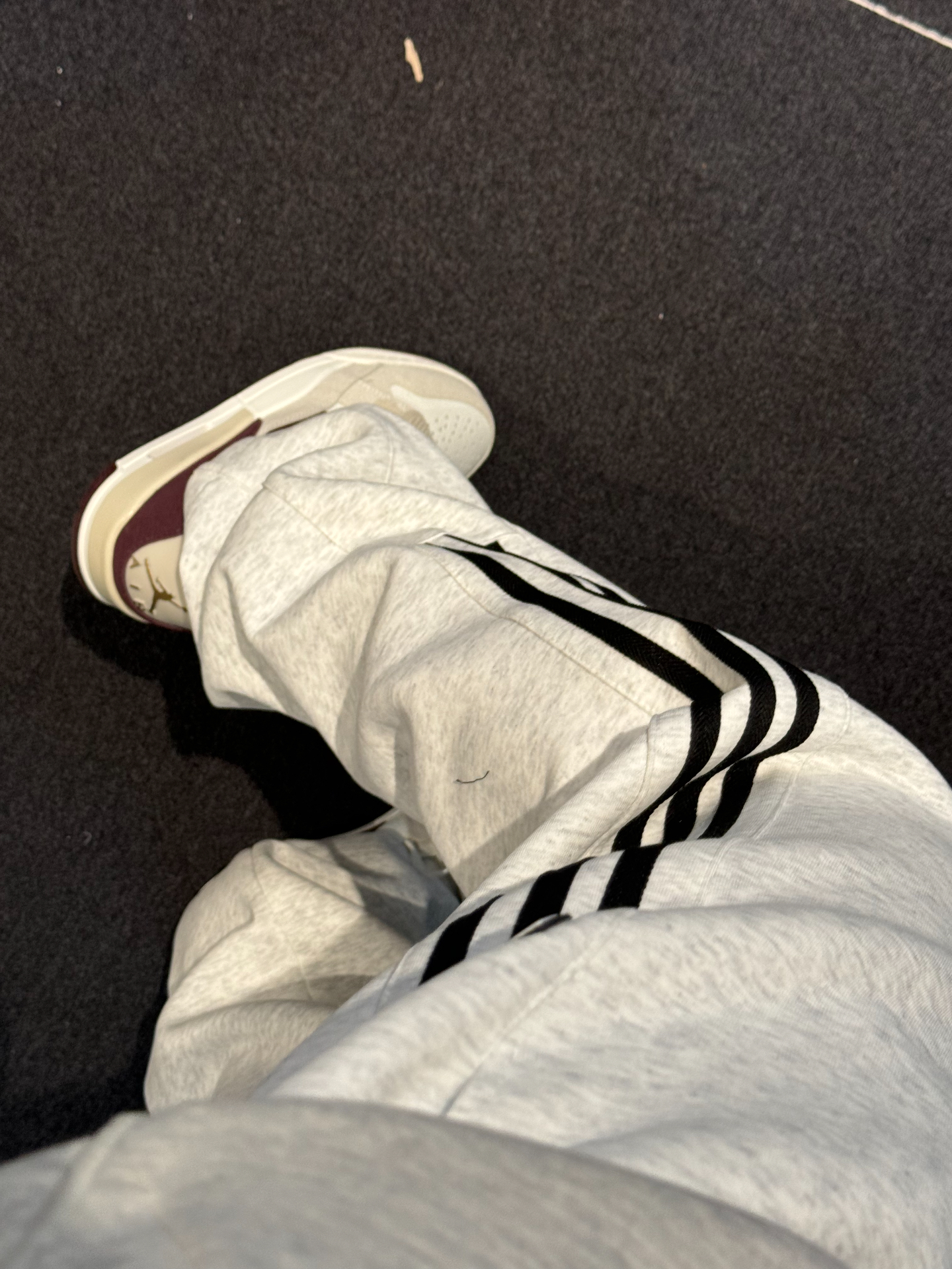 直筒三条杠卫裤是我的第二次推荐啦~ 没错我黑色我也有 直筒版型我真的爱穿 搭配每一双球鞋都很帅 灰色宽松版 自带松弛感 超显干净的 今天搭配的是蛇年限定aj312 真的酷✌️ #酷飒男生宝藏针织运动裤 #街头风卫裤分享 #宝藏运动裤分享 #酷飒男生宝藏运动裤 #来晒晒你的宝藏运动长裤 #我的宝藏运动裤 #秋日宝藏休闲运动裤 #分享你的体育生男友穿搭 #分享你得冬季男友穿搭