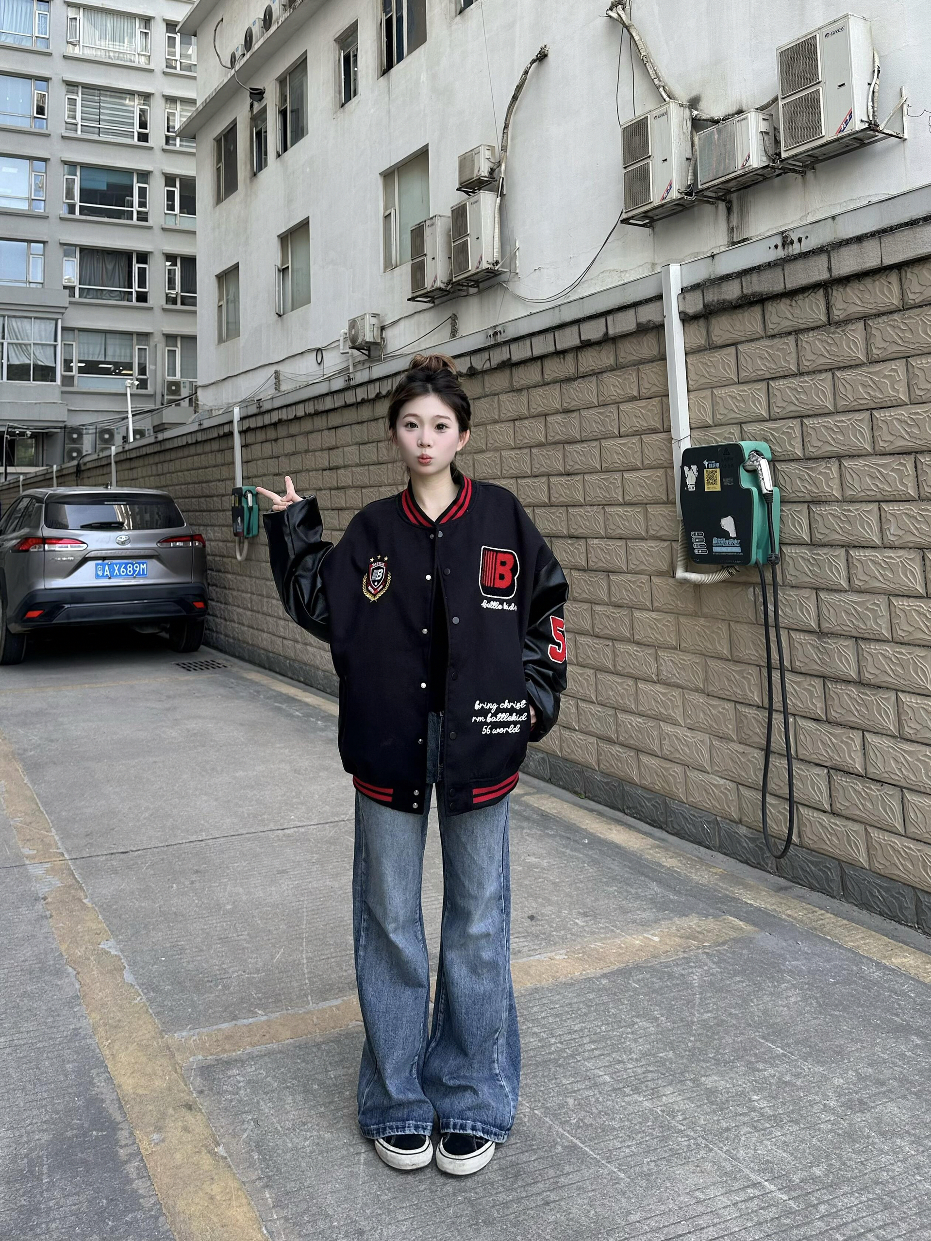 穿这件安踏的棒球服真的很酷!美式宽松的版型 复古字母刺绣logo,整体质感超棒,上手沉甸甸的很有份量 ,面料很厚实整体的设计简约又有小细节,下半身搭配同色系牛仔裤 ,直筒宽松版型一身黑氛围感拿捏住了~ 图片来源于@鹤鸣