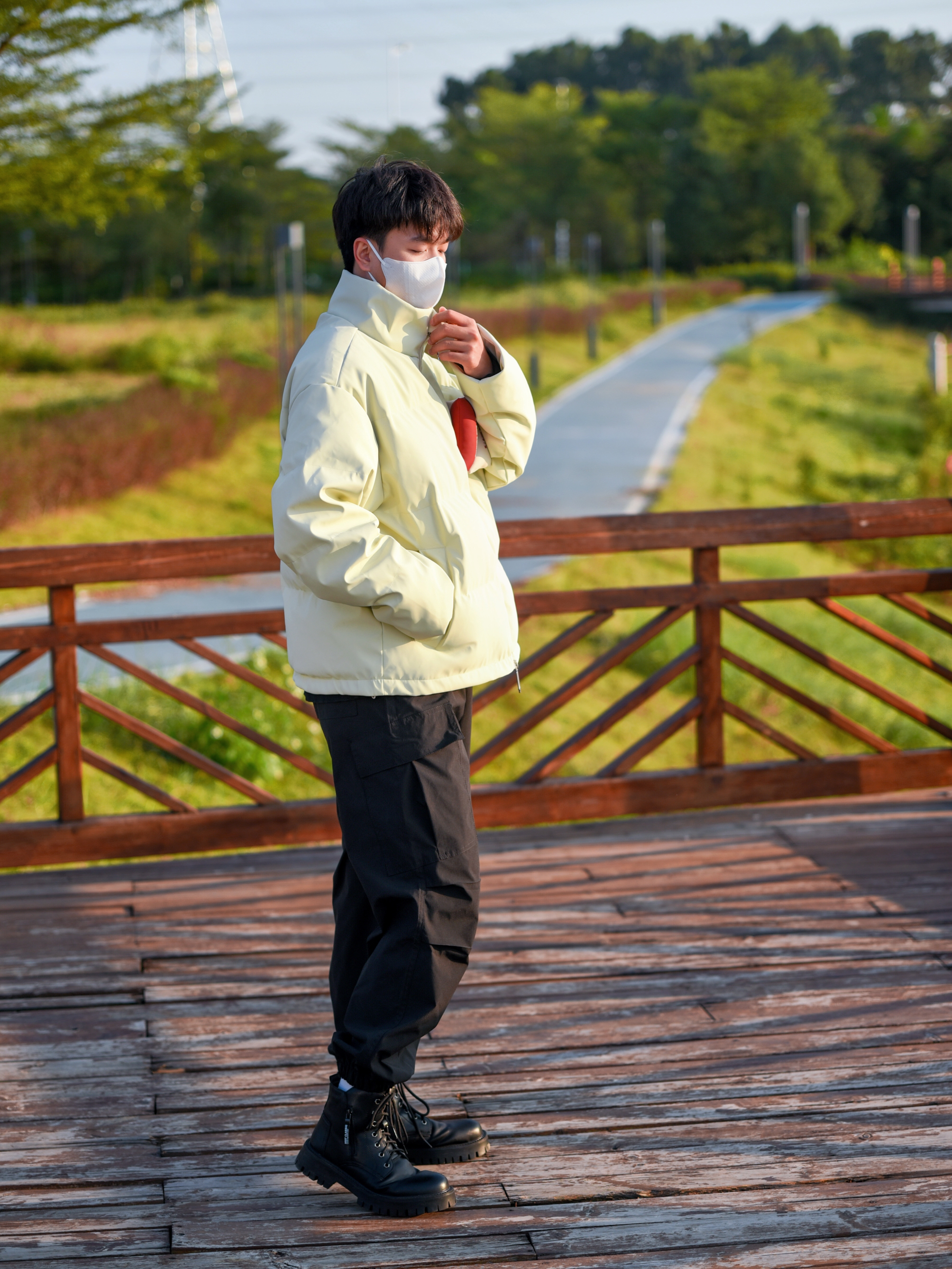 今日份分享一套秋冬羽绒服穿搭! 上身穿的是BJHG家的奶白色羽绒服,上身软软的好舒服,白色还是比较百搭的。 下身搭配一条黑色的冲锋裤,直筒版型修饰腿型。 再搭配上一双黑色马丁靴,为整体造型增添时尚感。 这套穿搭简单舒适,很有秋冬氛围感,适合秋冬的日常出行。喜欢的小伙伴们可以试试哦!😉
