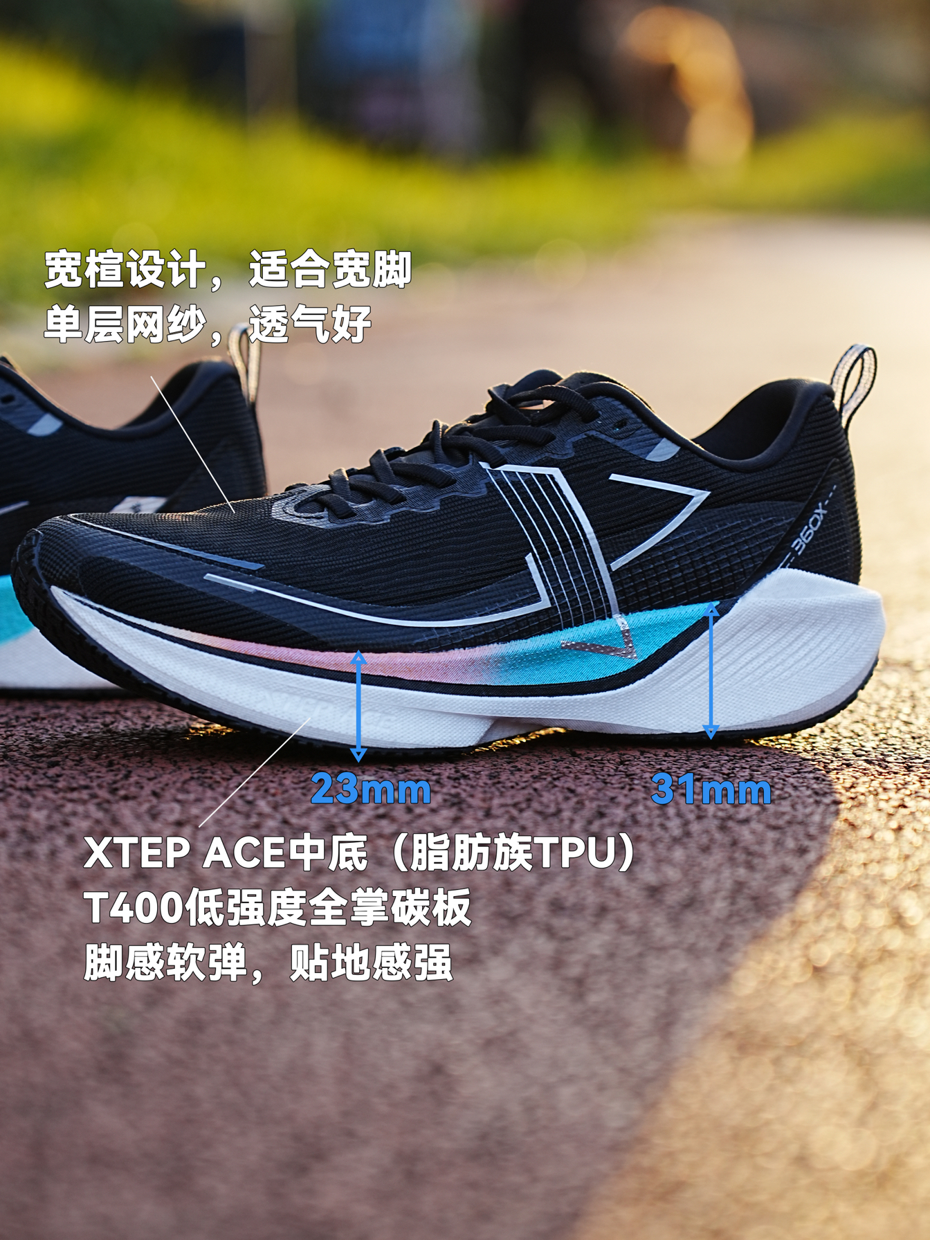 360X作为特步家入门碳板跑鞋,满足了大部分跑者日常训练场景,凭借较低的门槛和不错的耐用性从上市就备受关注。我也累计穿360X跑了30多公里,说说我的穿后感。 尺码选择:标准 适用人群:正常足弓、高足弓、宽足,前、中、后掌落地跑者均可,不建议外翻跑者 适用场景:5分配以外训练,不建议日常、竞速比赛穿 优点:鞋面透气,中底耐用性不错,碳板提供额外推进力,性价比高 缺点:湿地抓地力稍弱,湿地5分配...