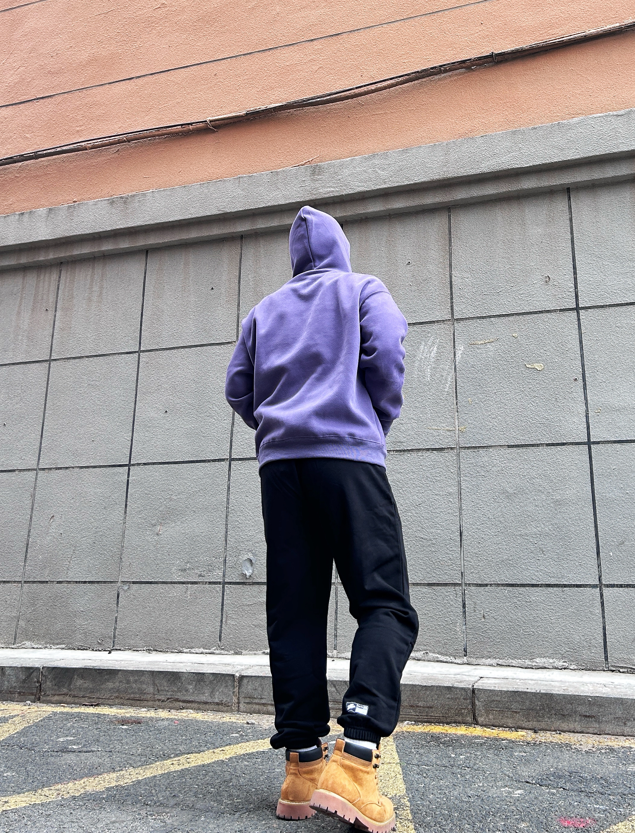 出街的潮搭运动卫裤 有志者UZIS 2XL 上面搭一件绝绝紫的卫衣 下面这个卫裤是束脚口的设计 而且整体的面料是透气舒适的 平时运动打篮球都可以穿 作为日常通勤出街 上脚一双大黄靴,显高显瘦 提升穿搭氛围感 学生党运动潮搭